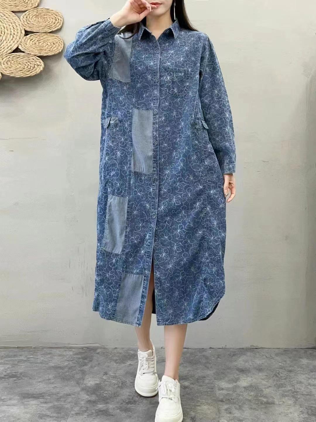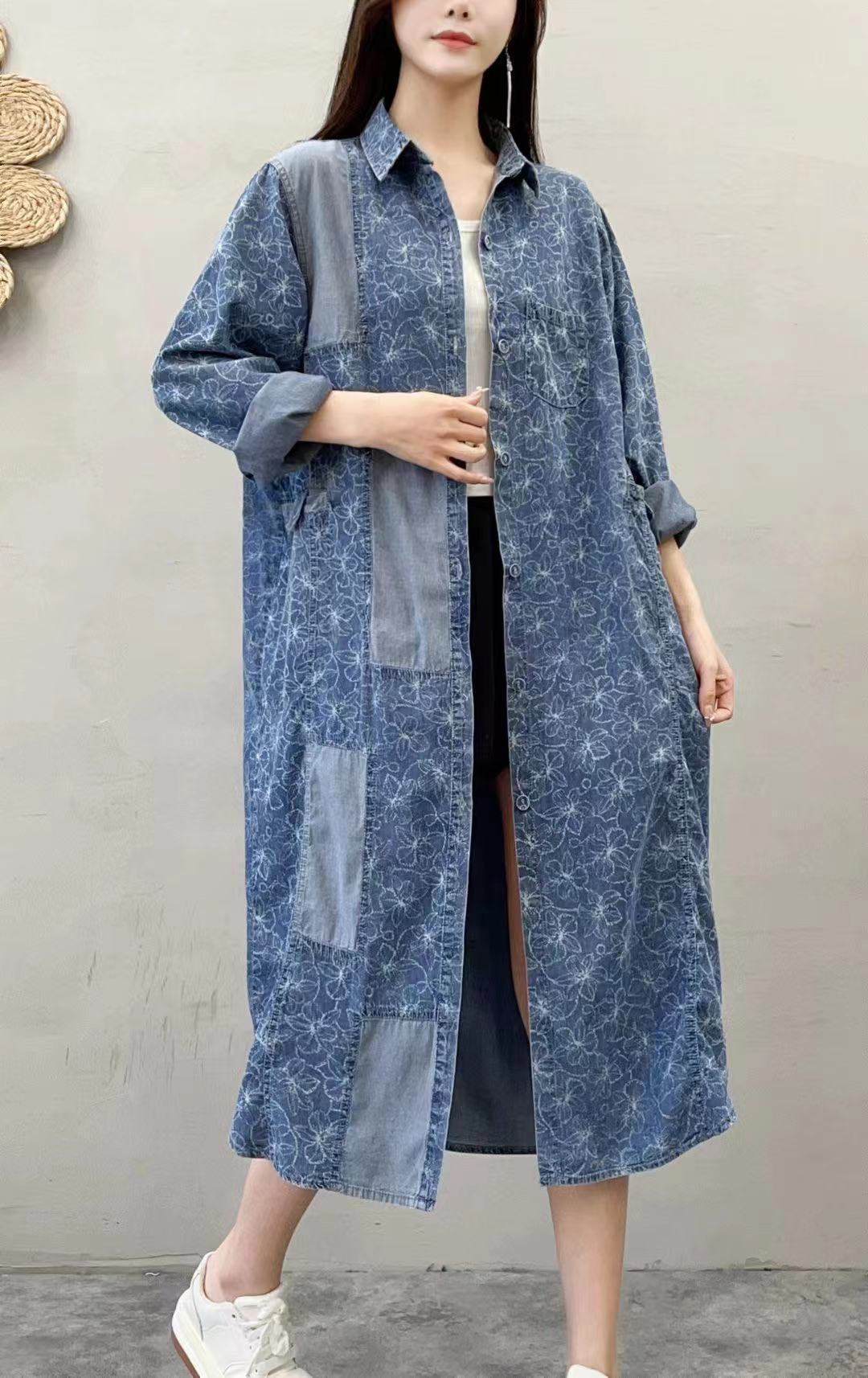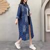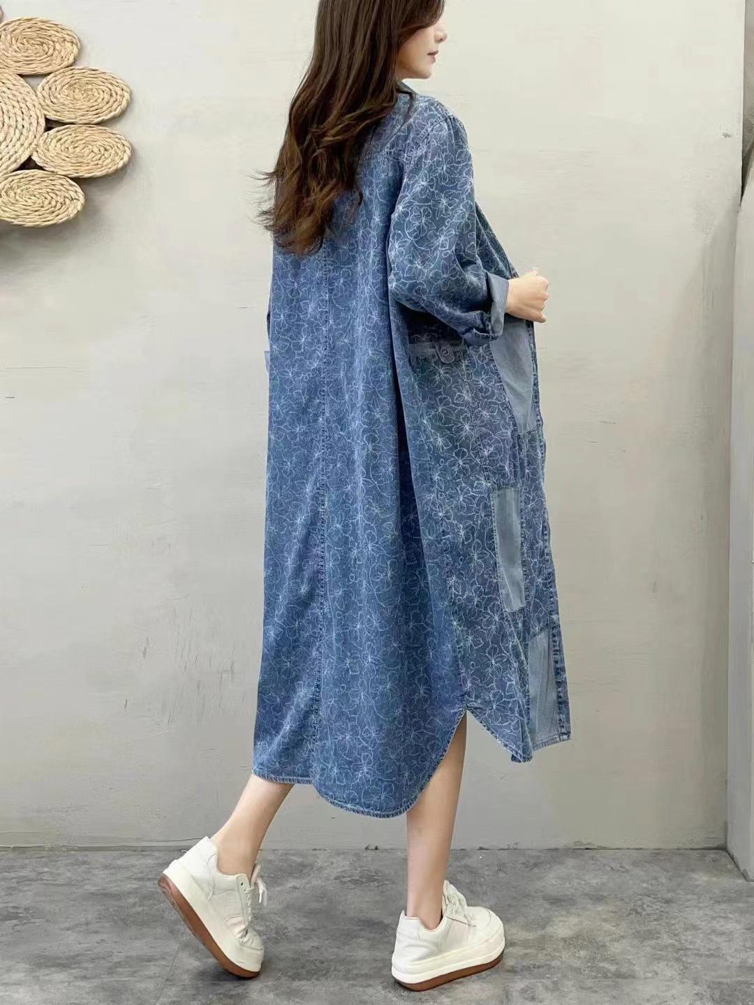 Gabardina holgada de longitud media para mujer, nueva prenda de primavera con estampado adelgazante, cárdigan de manga larga de talla grande, reductor de edad