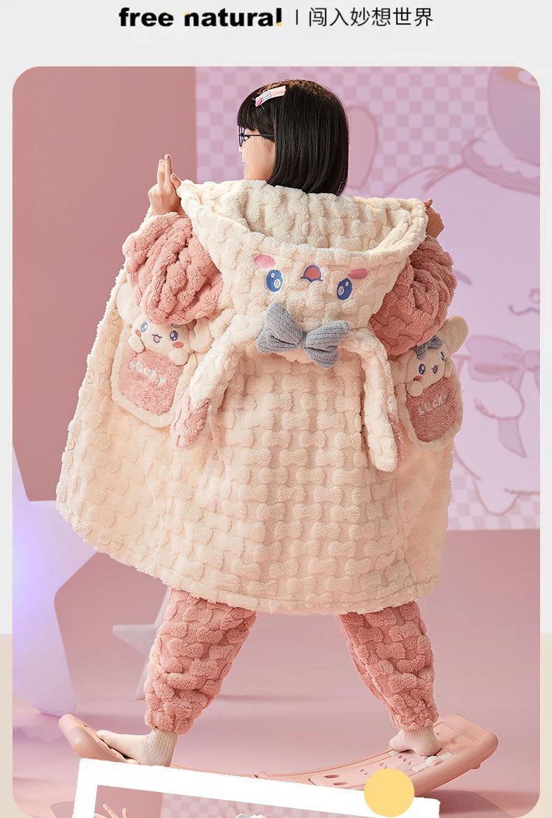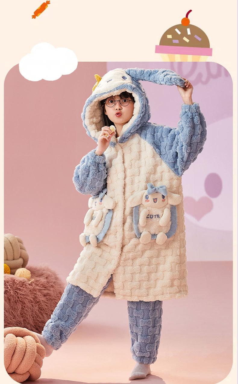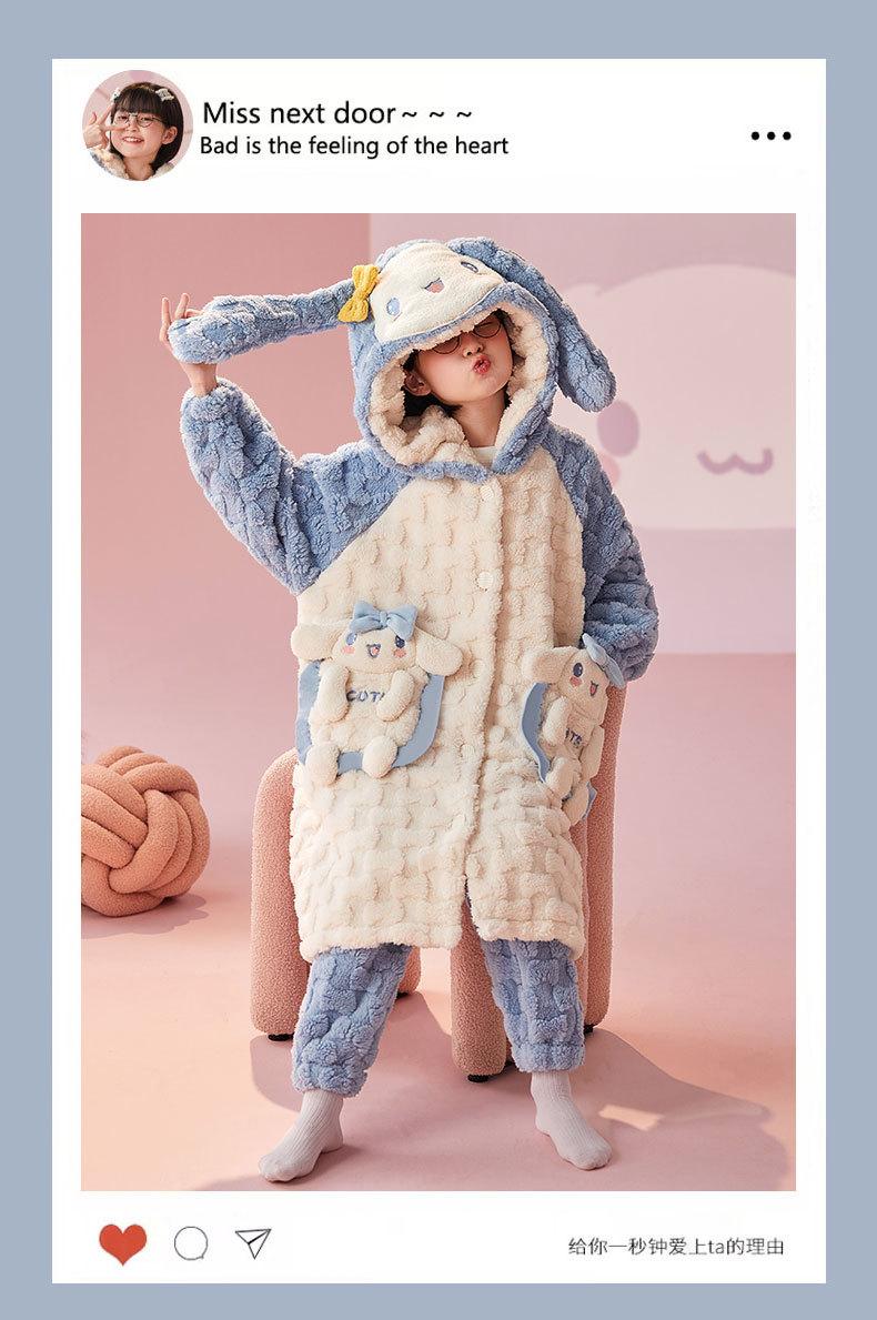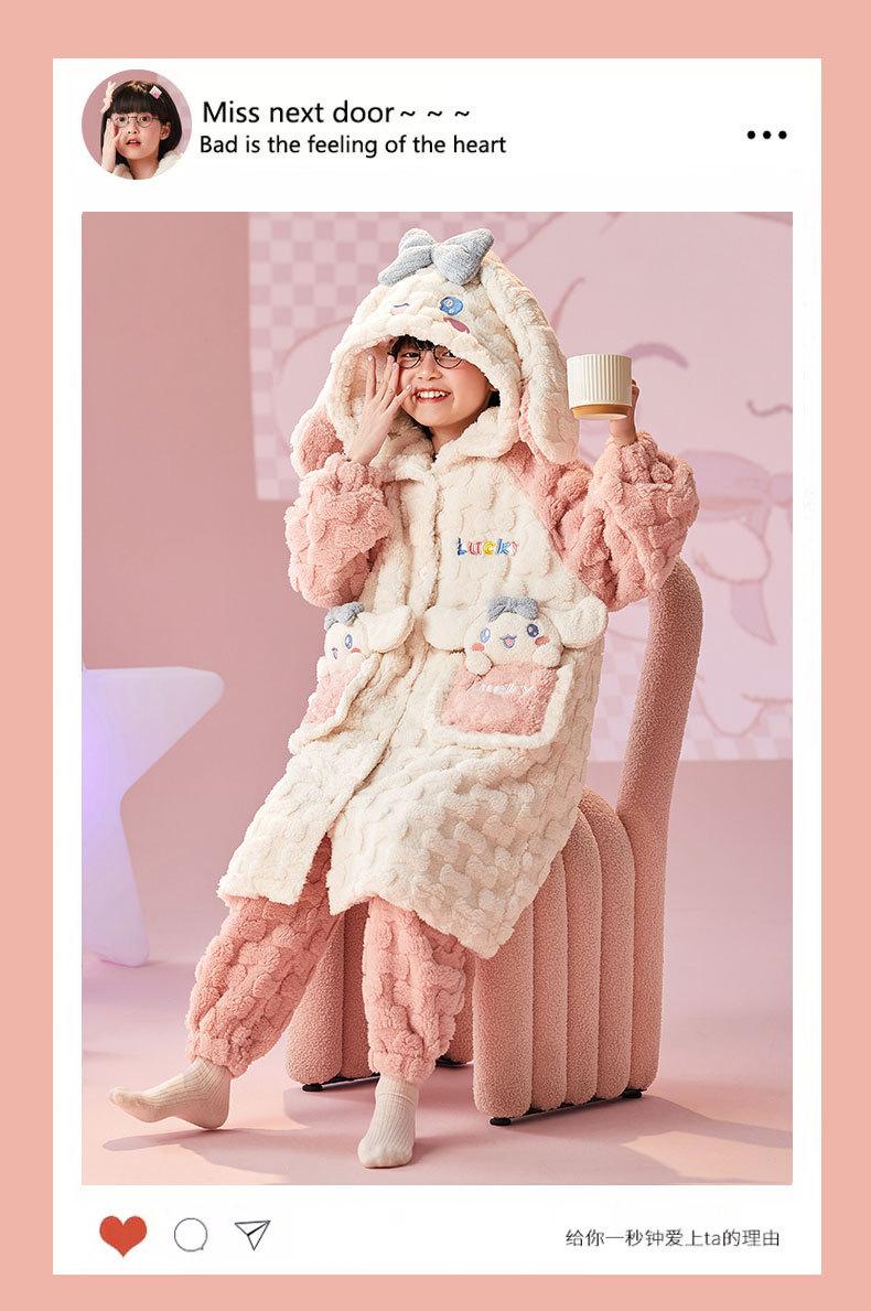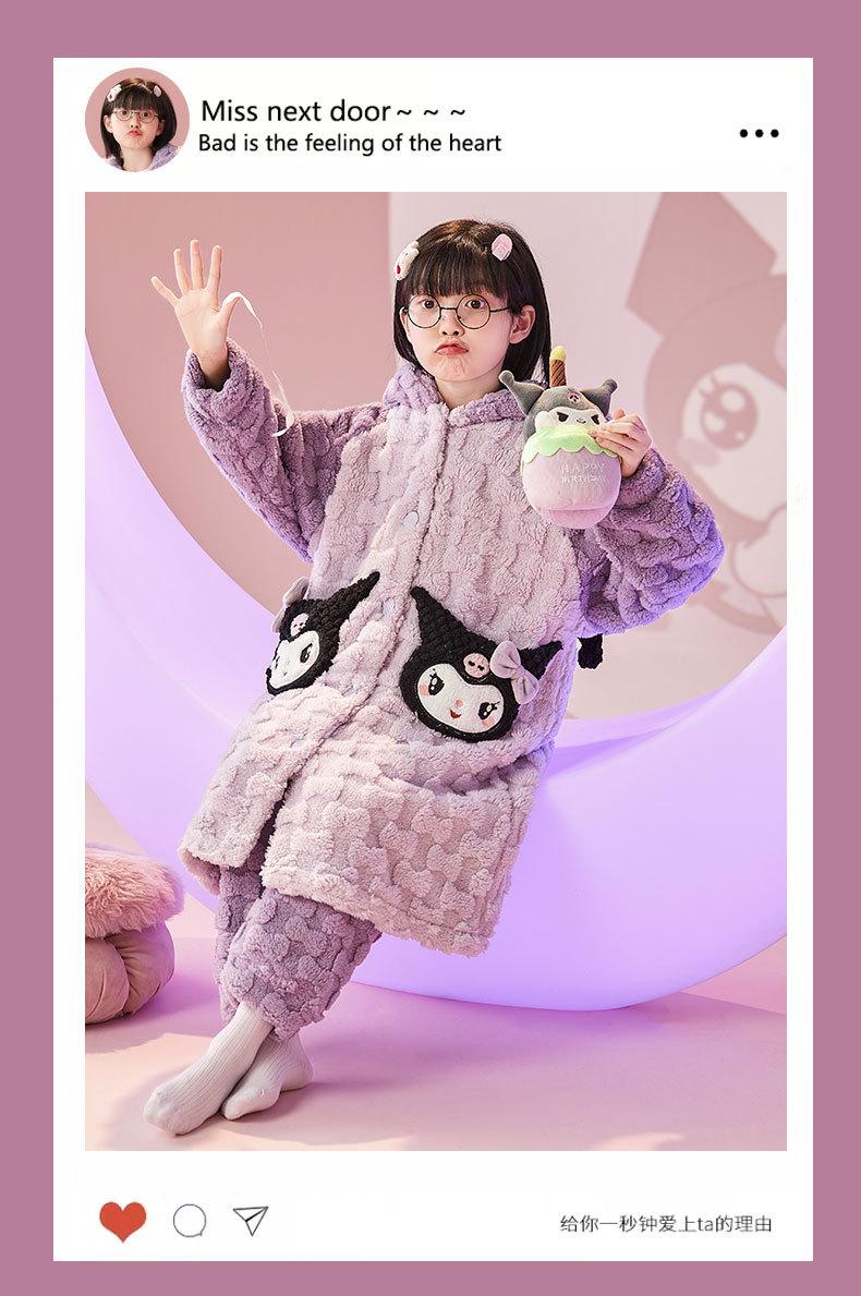Pijamas de otoño e invierno para niñas, camisón de terciopelo jacquard, cálido, forro polar, grueso, bonito, de dibujos animados, informal, Kulomi, ropa para el hogar