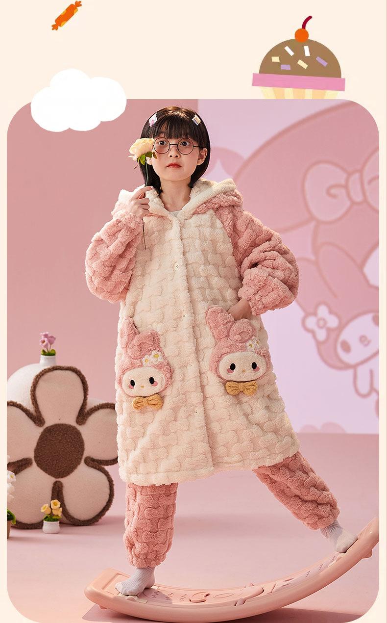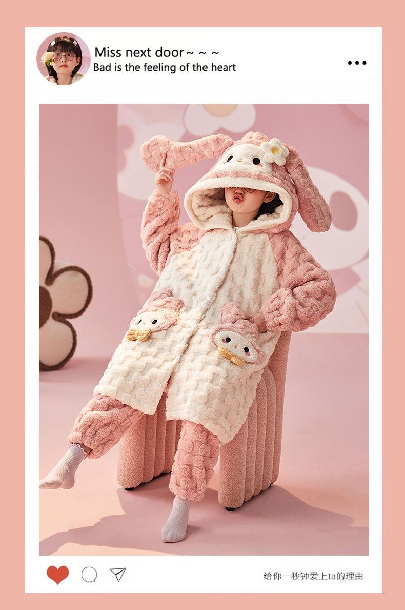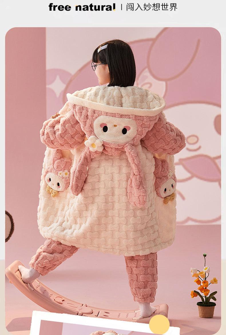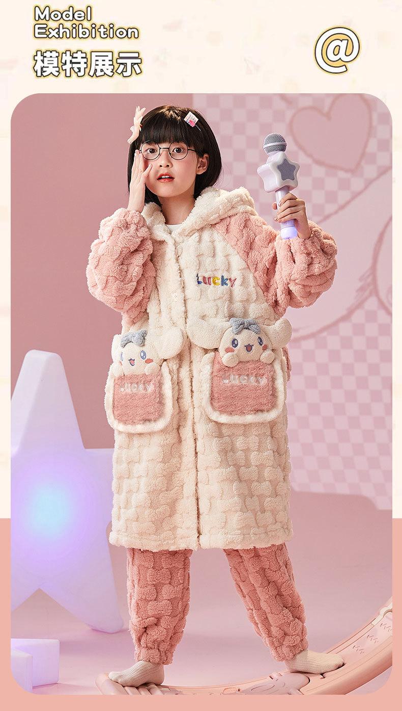 Pijamas de otoño e invierno para niñas, camisón de terciopelo jacquard, cálido, forro polar, grueso, bonito, de dibujos animados, informal, Kulomi, ropa para el hogar