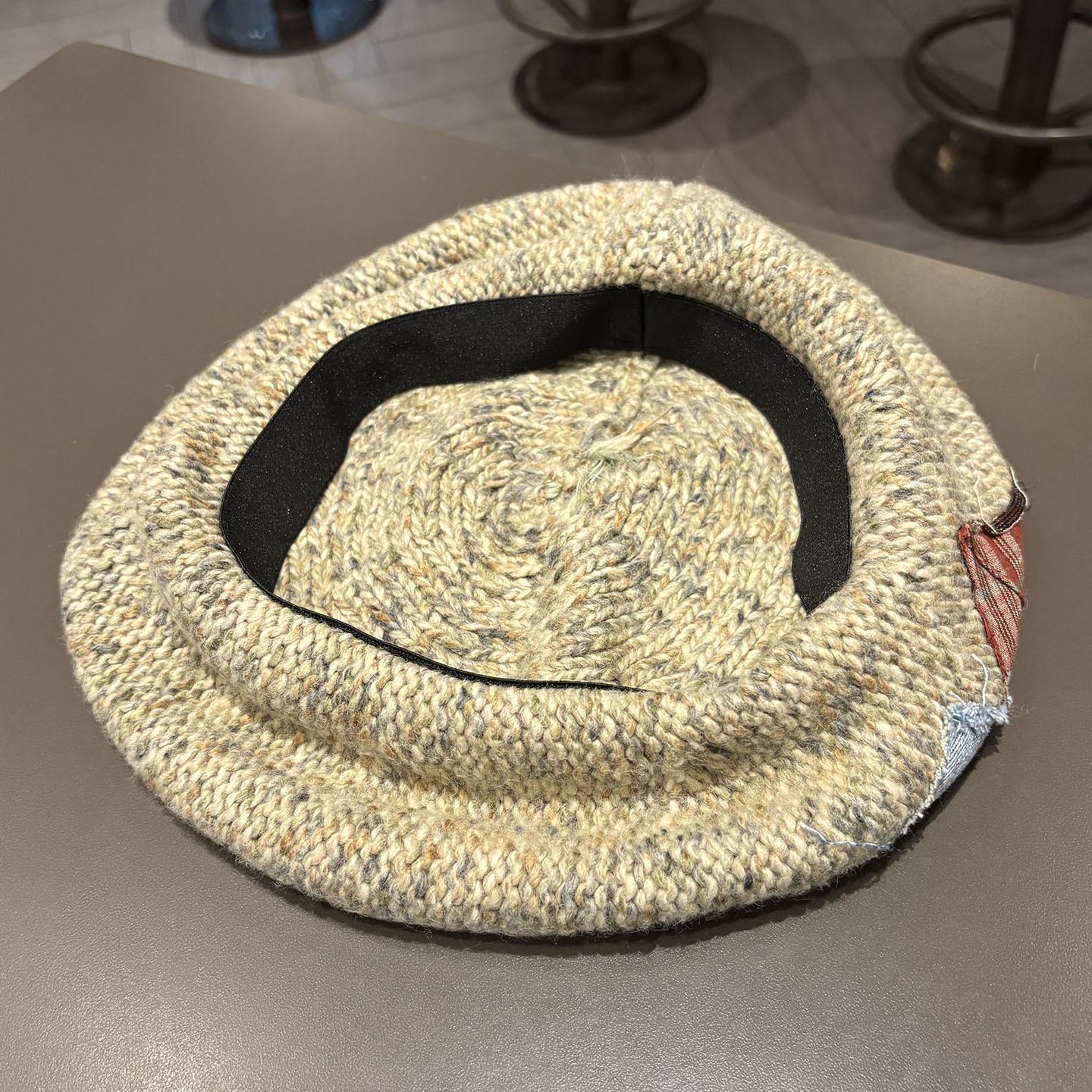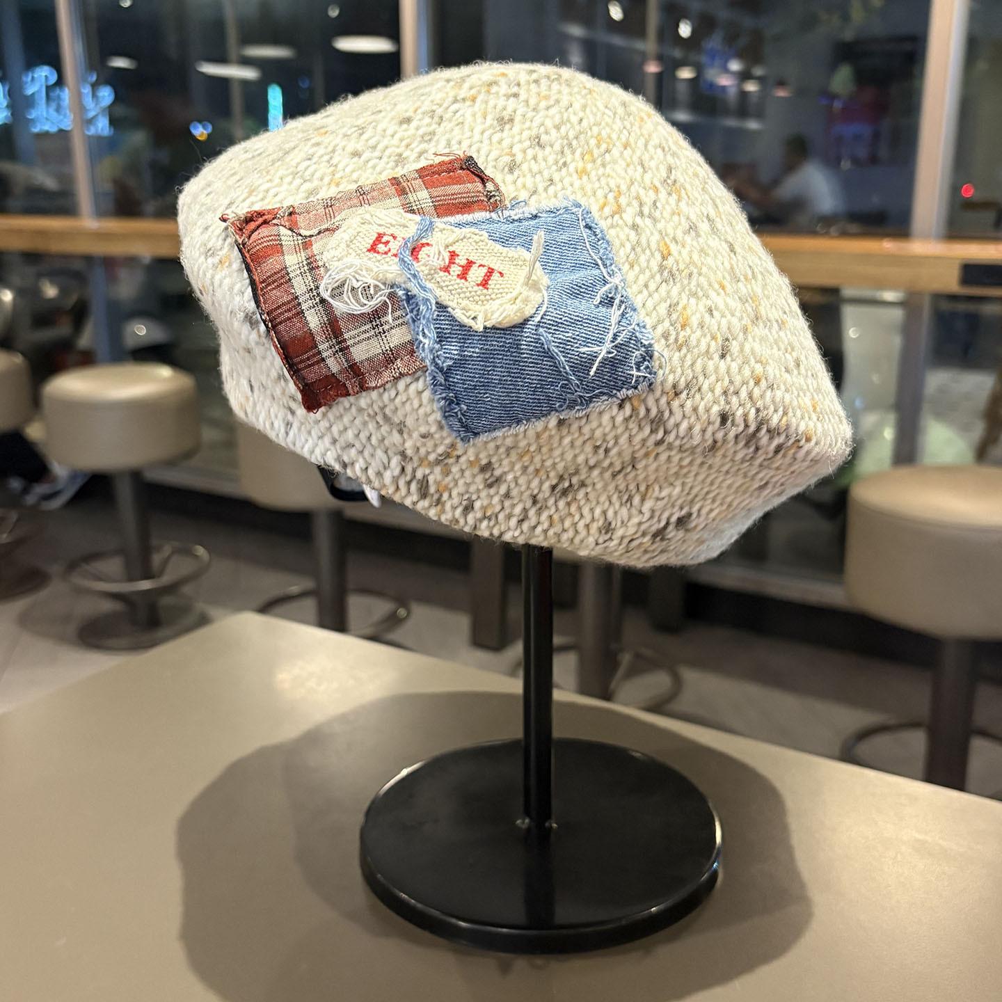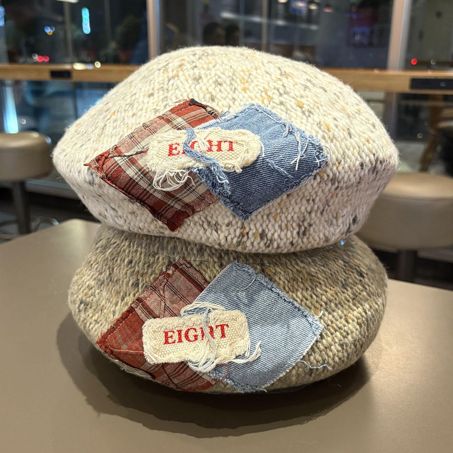 Boina de lana nueva japonesa retro de otoño e invierno, estilo artístico informal, combinable, para pintor, con parche de color.