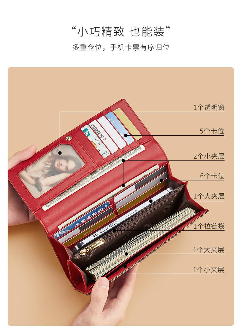 Billetera para mujer King Paul Billetera de cuero de alta gama para mujer Artículos genuinos Bolso de mano de gran capacidad Billetera larga