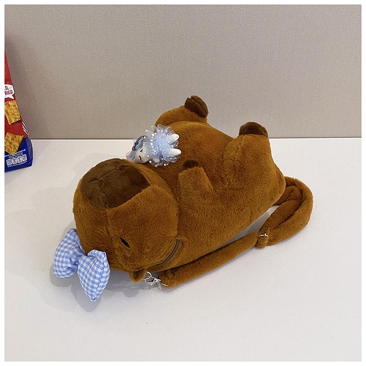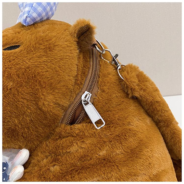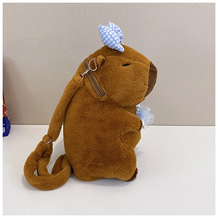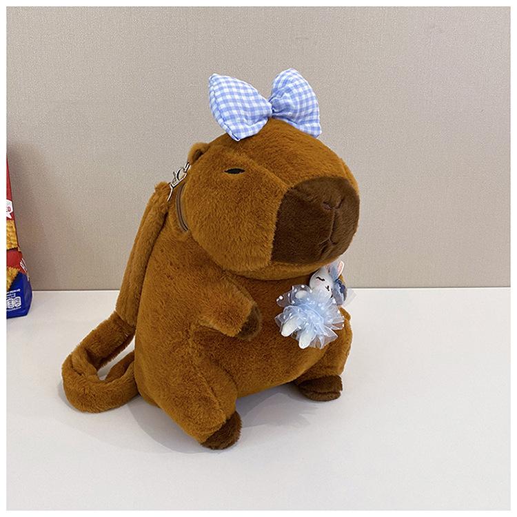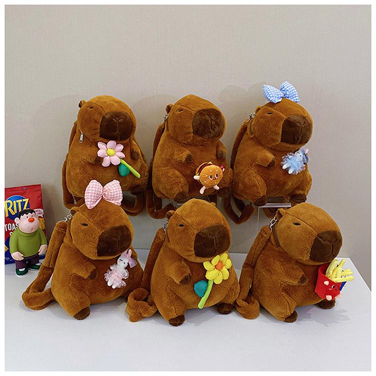 Nueva Bolsa Kapibala Mochila Linda de Peluche de Capibara Flor Naranja Hamburguesa Patatas Fritas