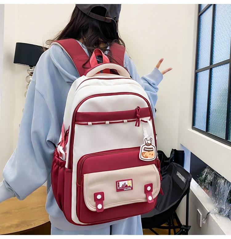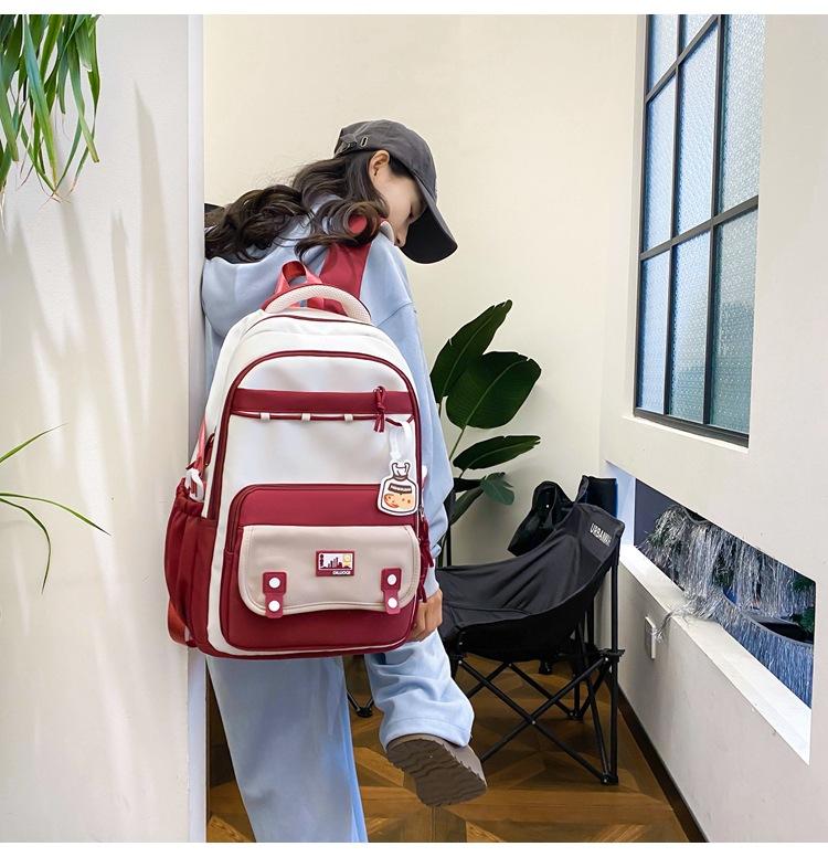 Mochila Escolar de Nuevo Estilo para Estudiantes de Secundaria Mujeres Estilo Coreano Estudiantes de Preparatoria Mochila de Gran Capacidad Mochila Casual para Estudiantes con Contraste de Color
