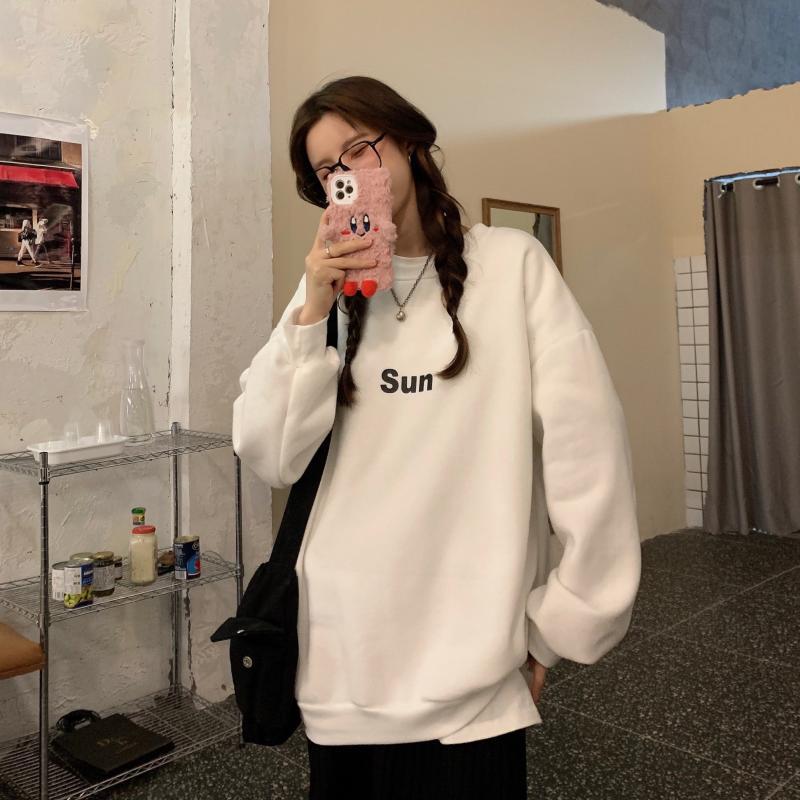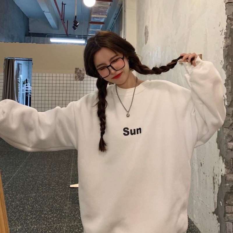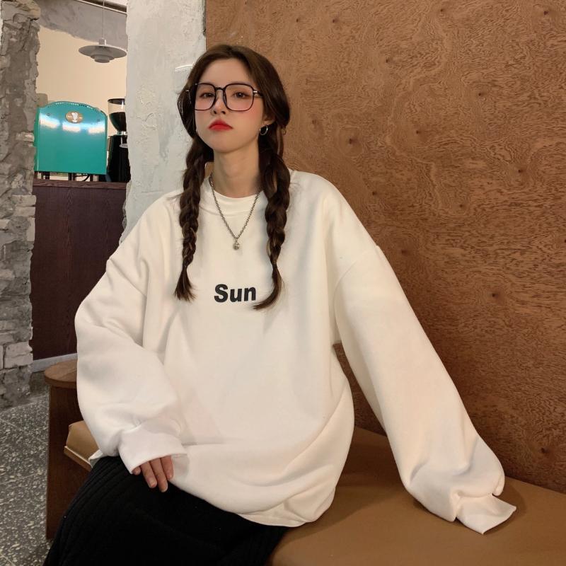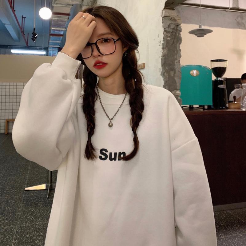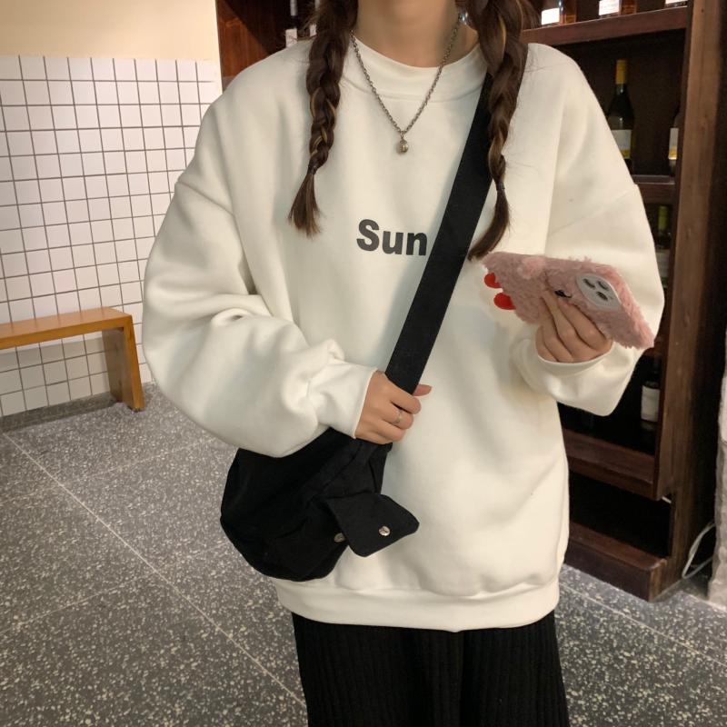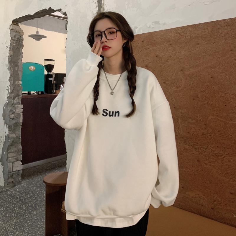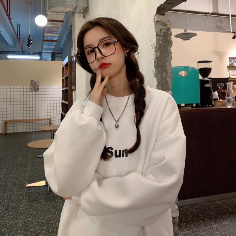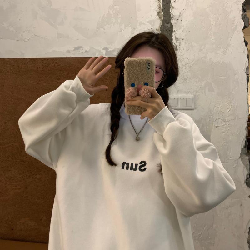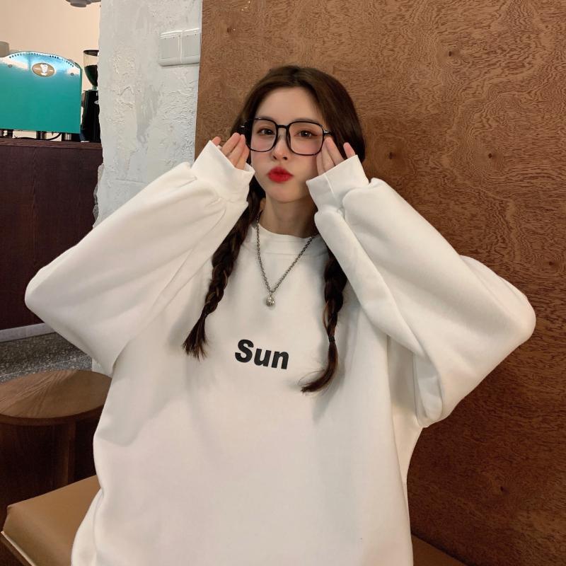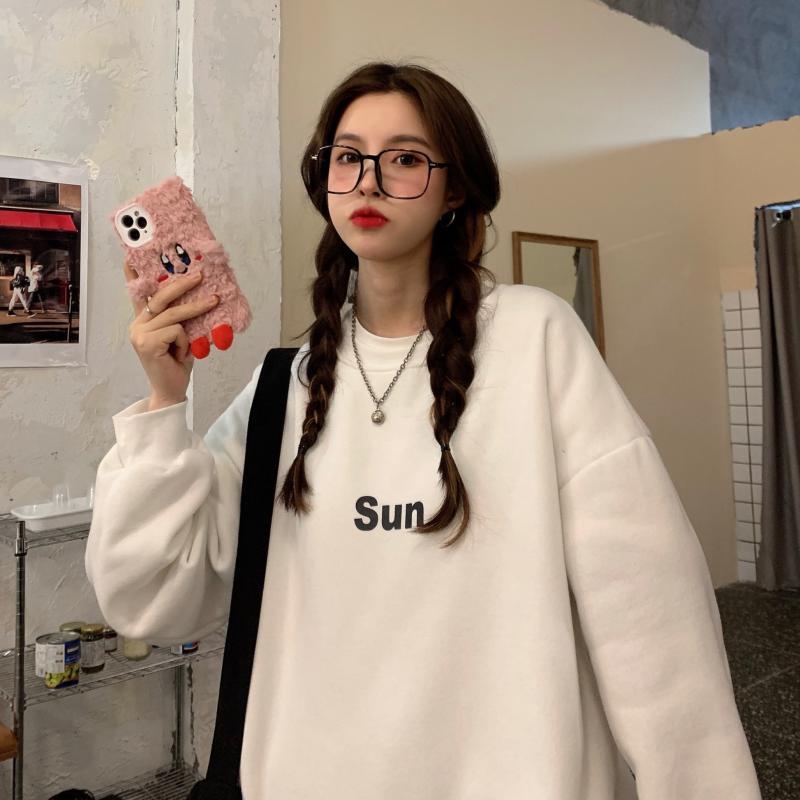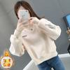 Suéter Casual de Cuello Redondo con Forro Polar para Mujer Invierno Nuevo Diseño Nicho Suelto Estudiante Letra Estampada Suéter de Terciopelo