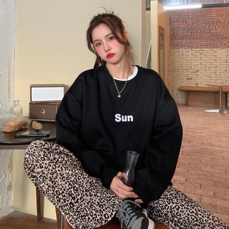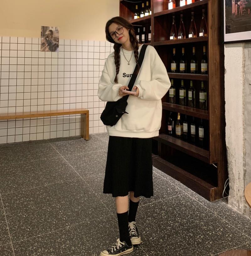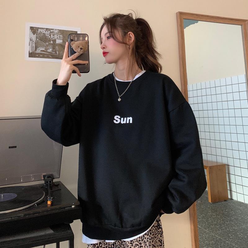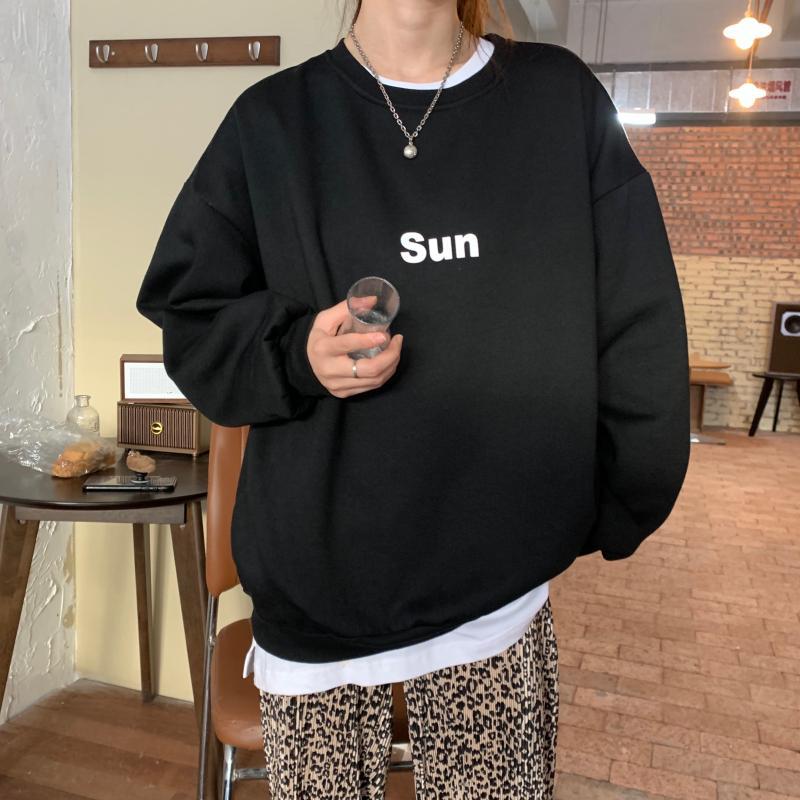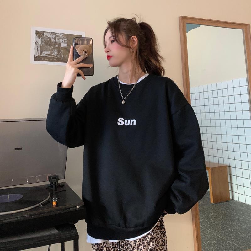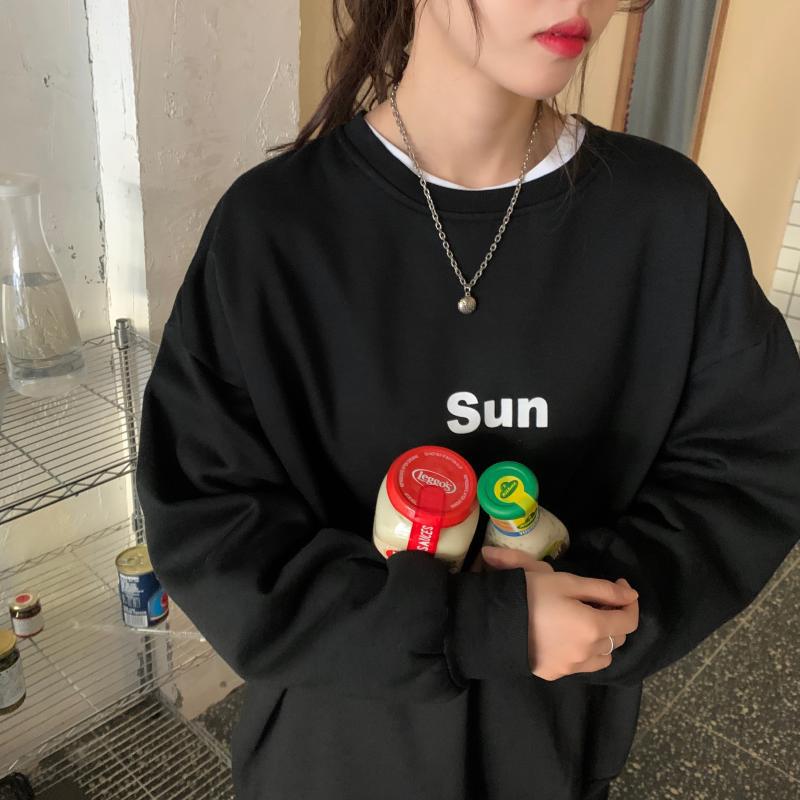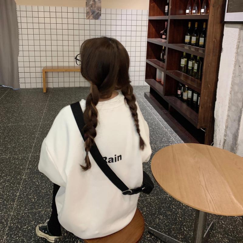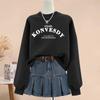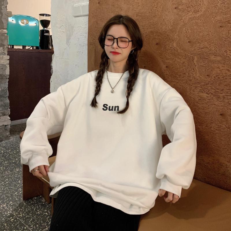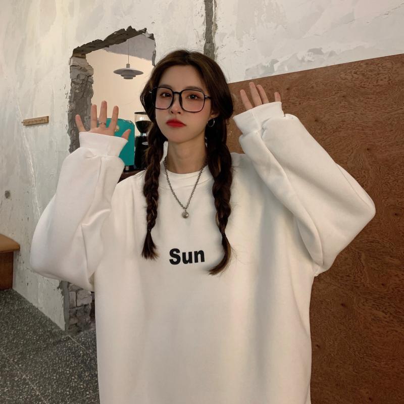 Suéter Casual de Cuello Redondo con Forro Polar para Mujer Invierno Nuevo Diseño Nicho Suelto Estudiante Letra Estampada Suéter de Terciopelo