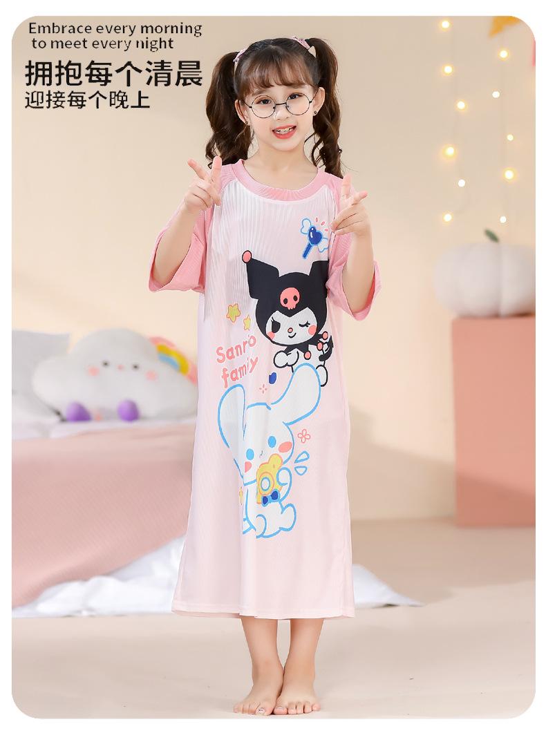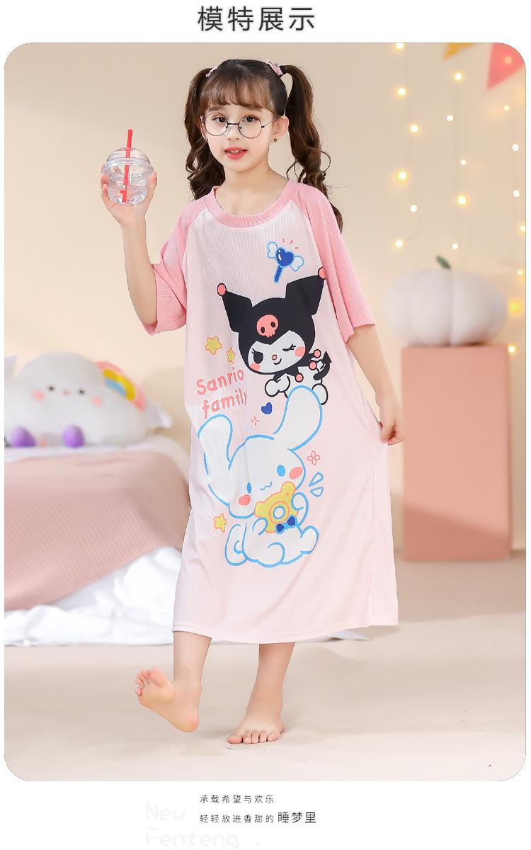 Camisón de verano para niñas, de algodón de seda fina, de manga corta, para princesas, súper lindo, para el hogar