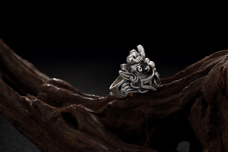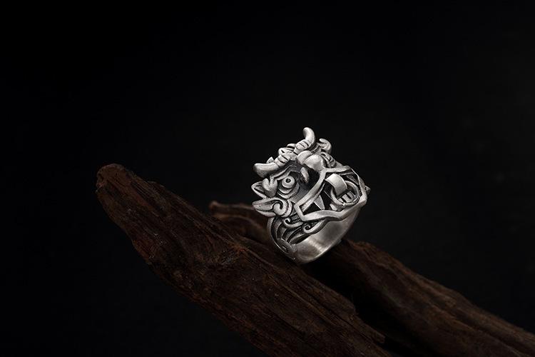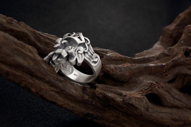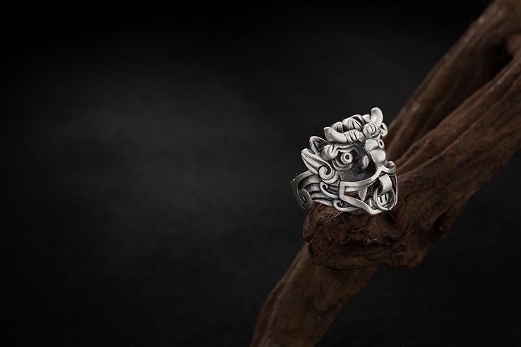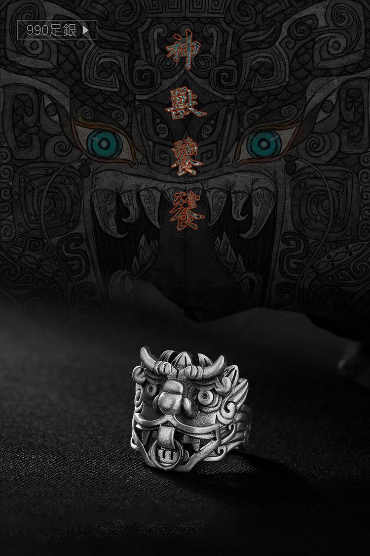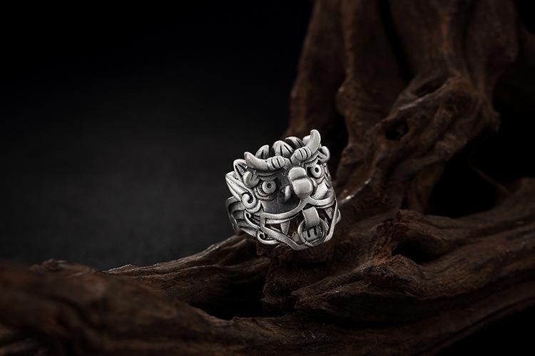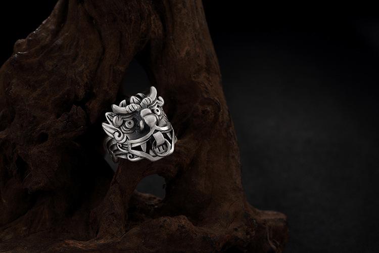Anillo glotón de estilo étnico, moda nacional retro, personalidad de moda dominante, todo fósforo, bestia divina, anillo abierto único para hombres y mujeres.