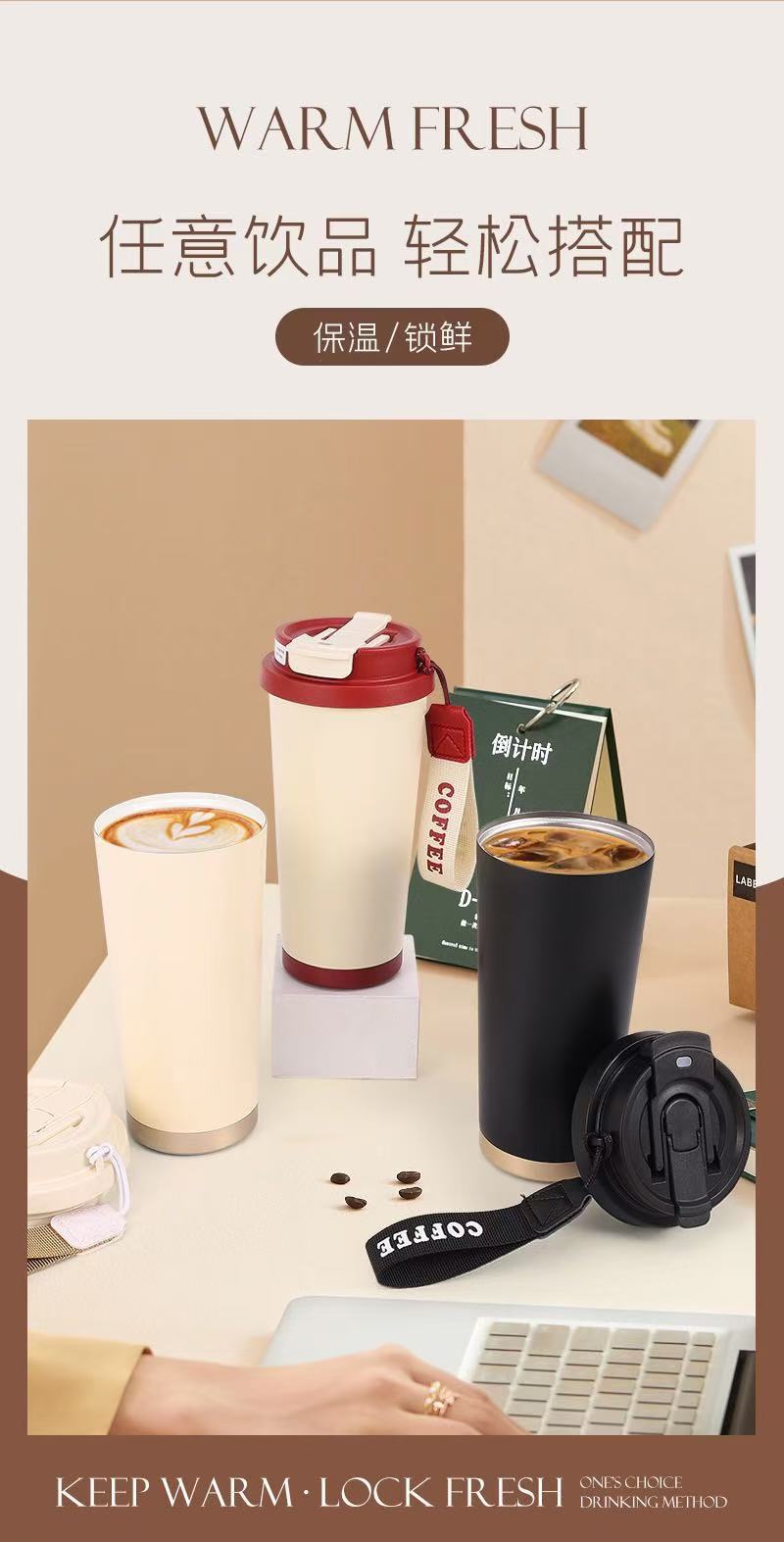 Taza de Café Nueva de Lirio de los Valles, de Aspecto Sofisticado, Vaso Termo de Gran Capacidad, Vaso de Agua de Acero Inoxidable 316, Admite Imágenes Personalizadas