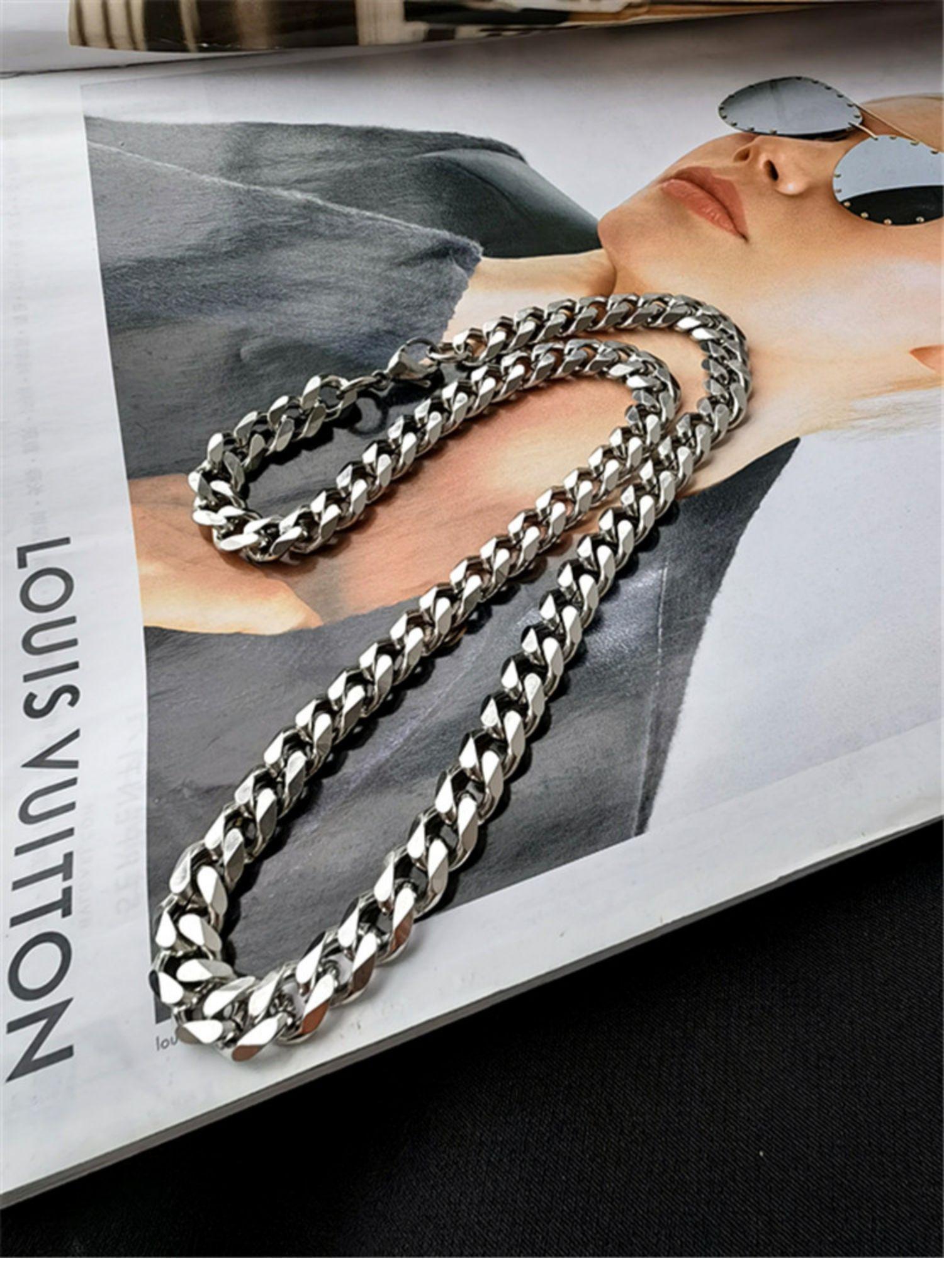 Fu Longfei Liu Xianhua Han Geng mismo collar de cadena cubana de acero fino y grueso para hombre, collar de hip hop que no se decolora, cadena de clavícula