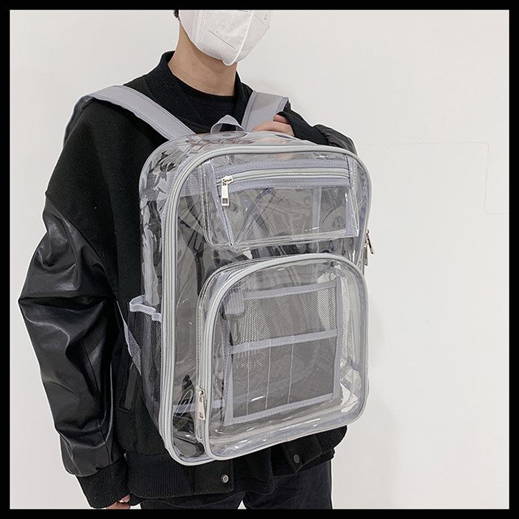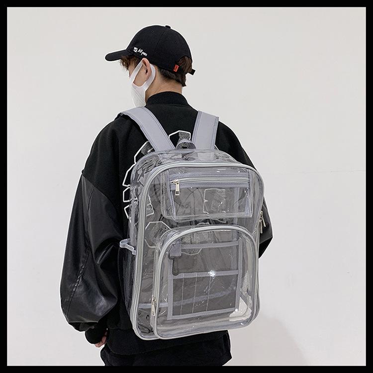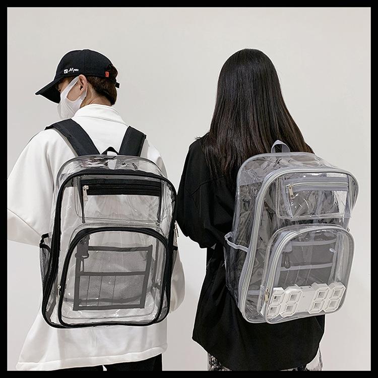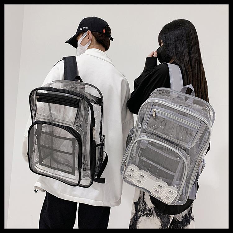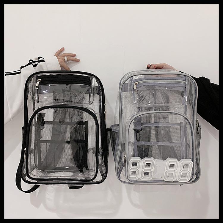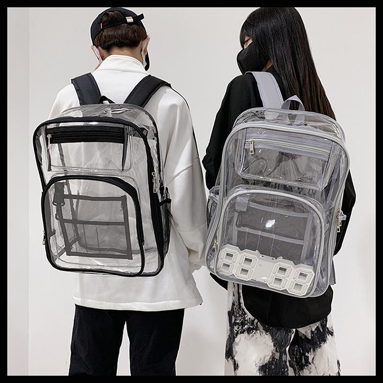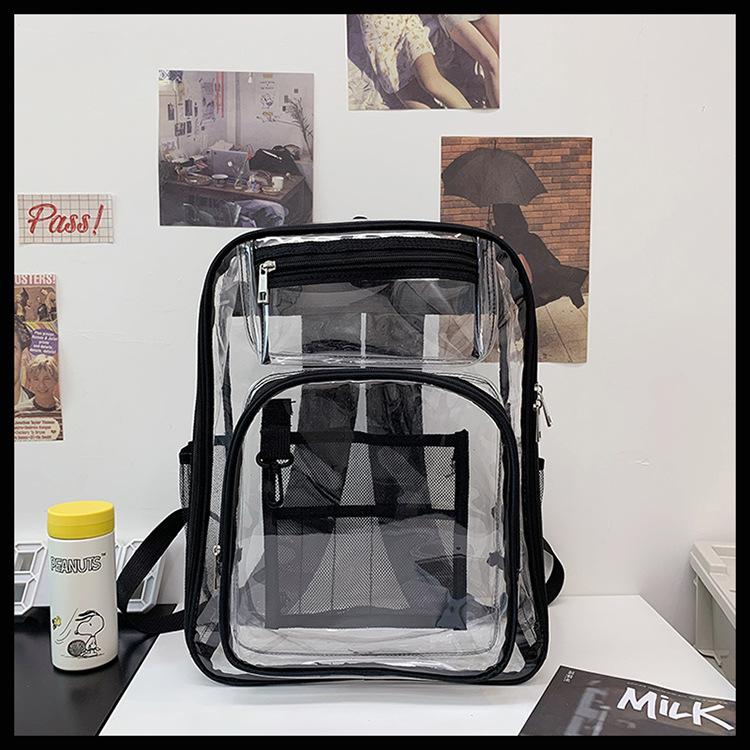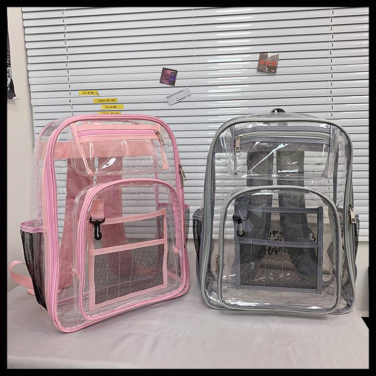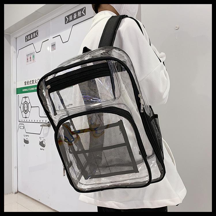 Mochila Transparente Impermeable Spot Transfronterizo Estudiantes de Secundaria Gran Capacidad Mochila Escolar Estilo K Simple Casual Mochila de PVC