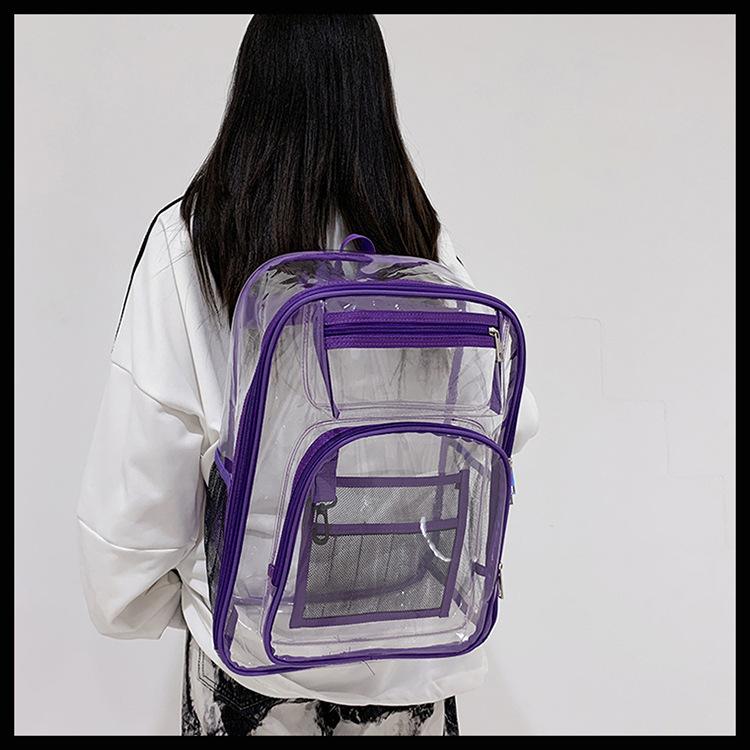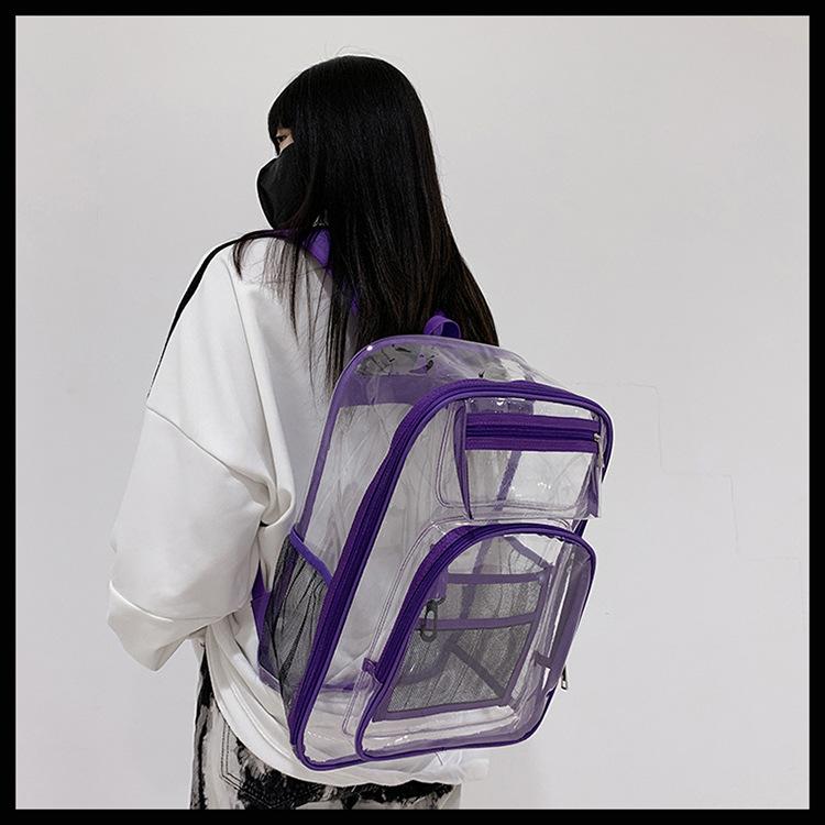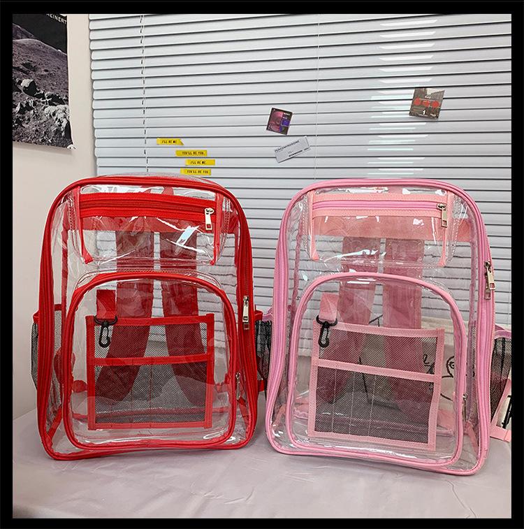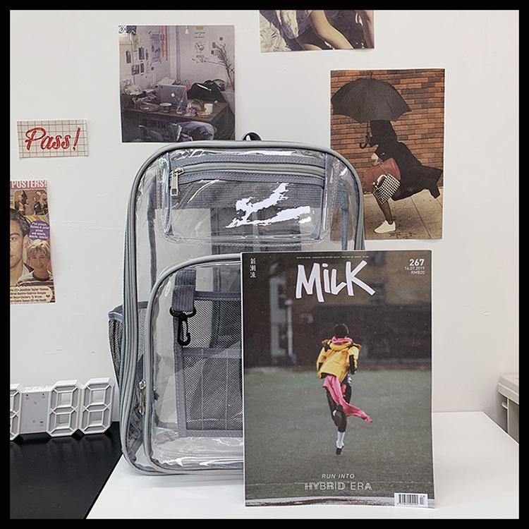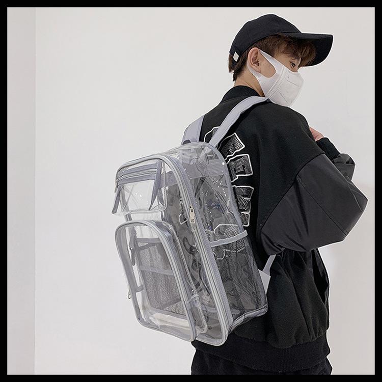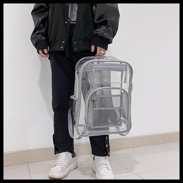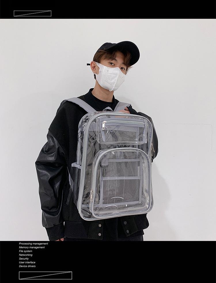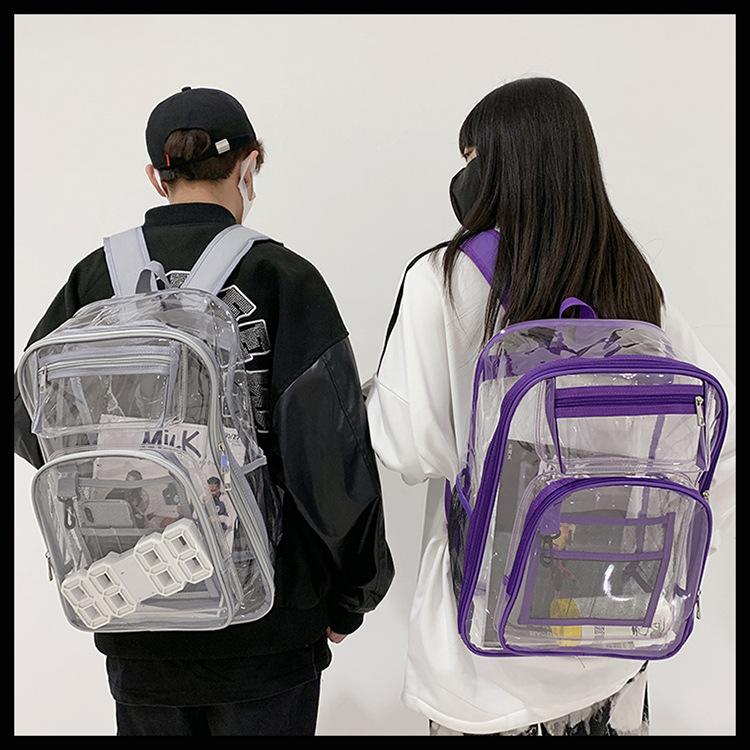 Mochila Transparente Impermeable Spot Transfronterizo Estudiantes de Secundaria Gran Capacidad Mochila Escolar Estilo K Simple Casual Mochila de PVC