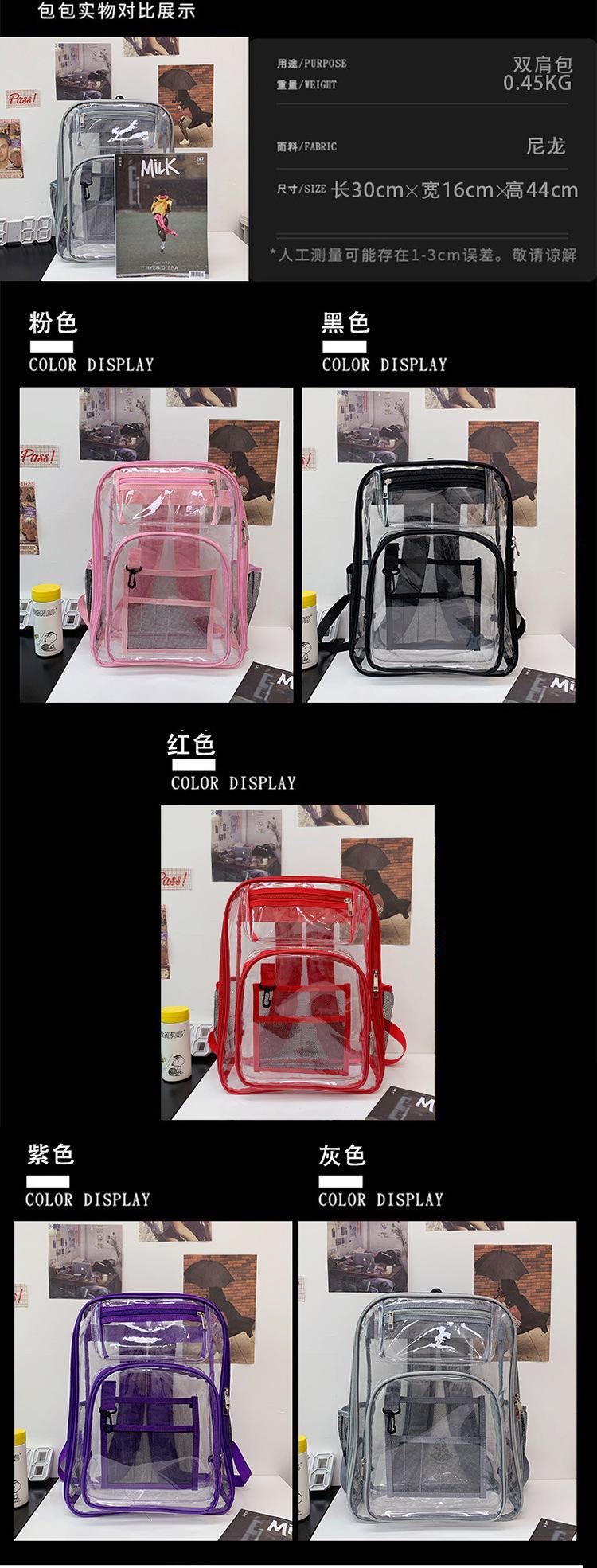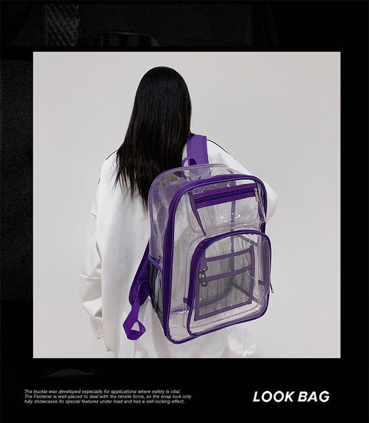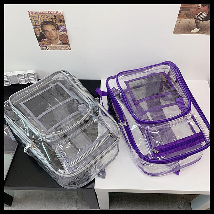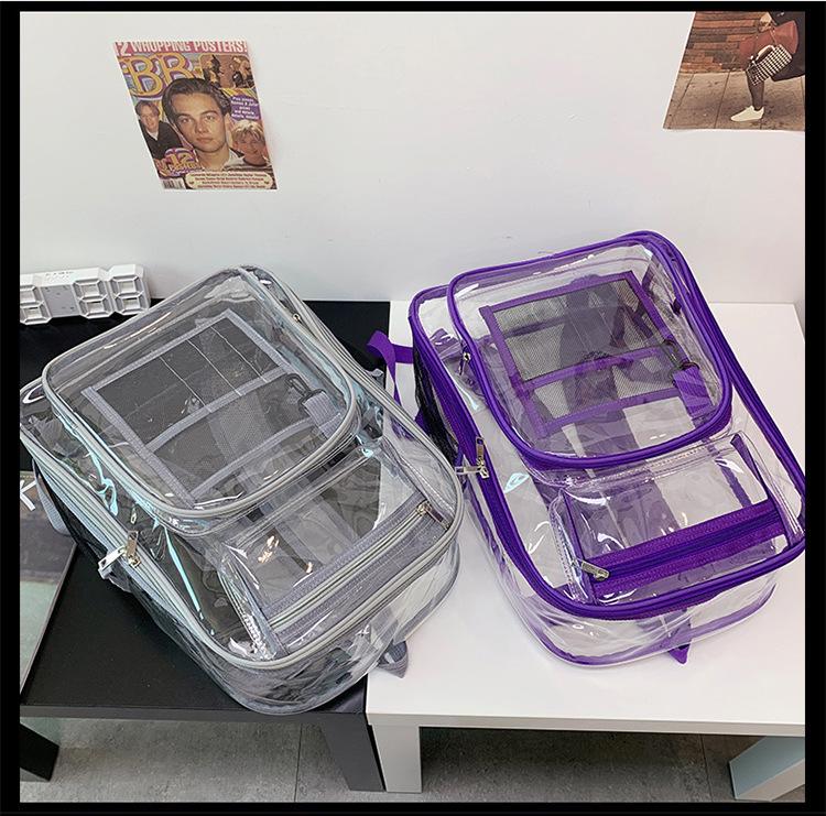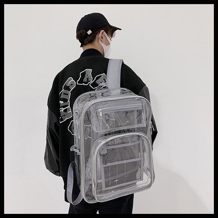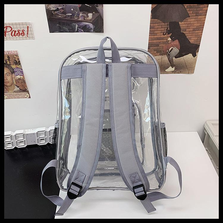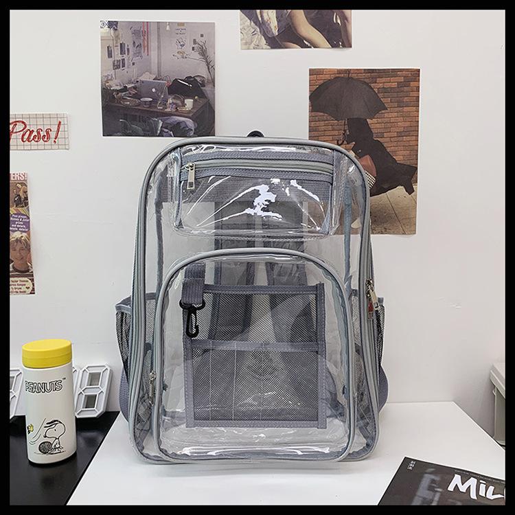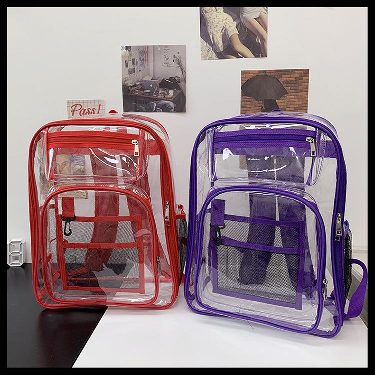 Mochila Transparente Impermeable Spot Transfronterizo Estudiantes de Secundaria Gran Capacidad Mochila Escolar Estilo K Simple Casual Mochila de PVC