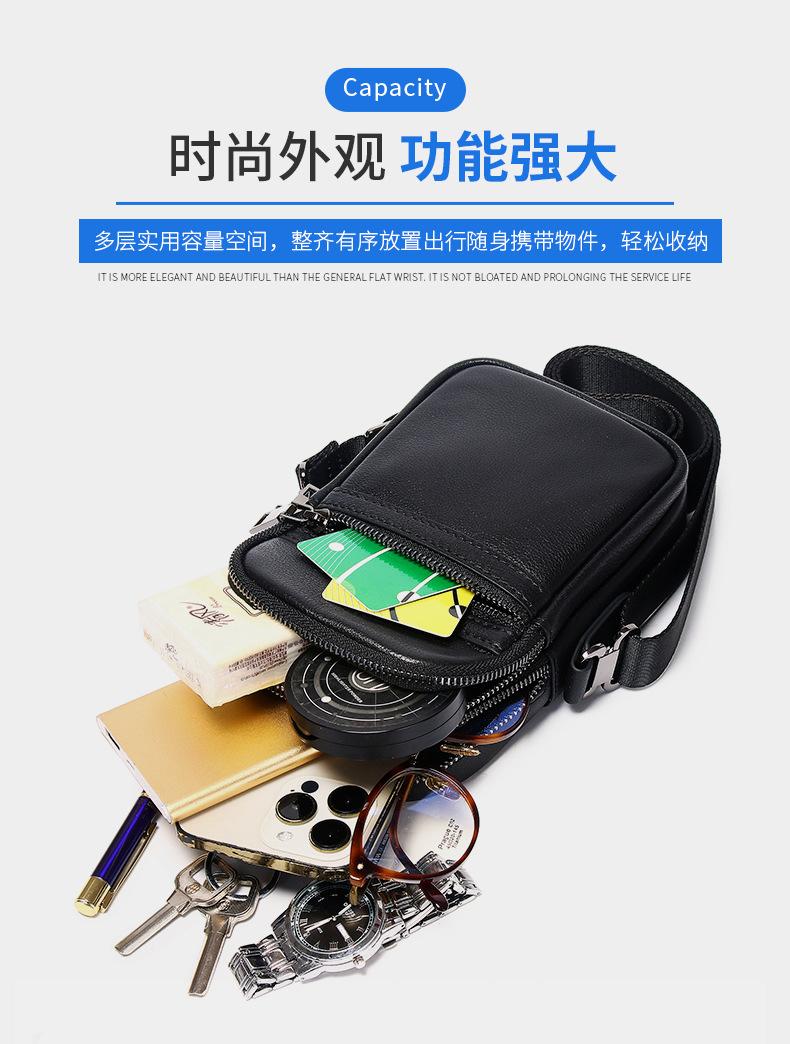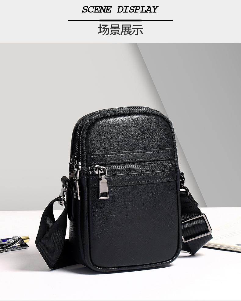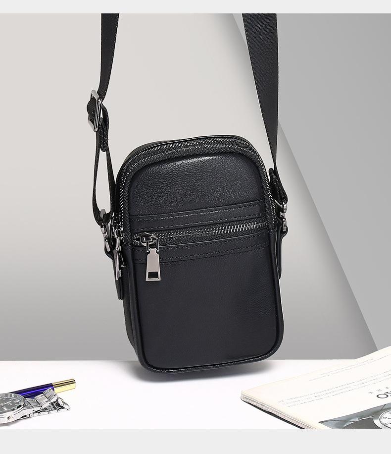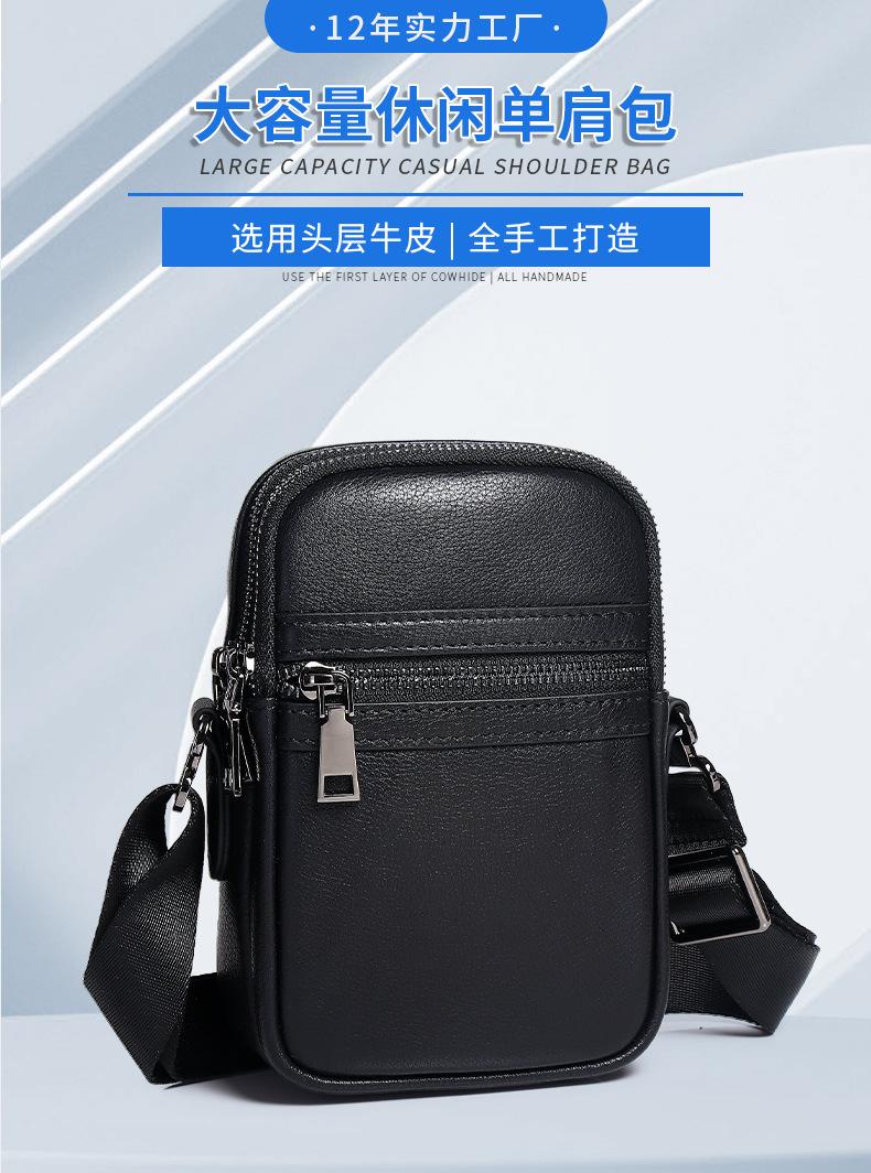 Bolsa de mensajero para hombre de cuero genuino personalizada de alta gama a la moda para ir al trabajo pequeña simple de alta gama bandolera para hombre ligera