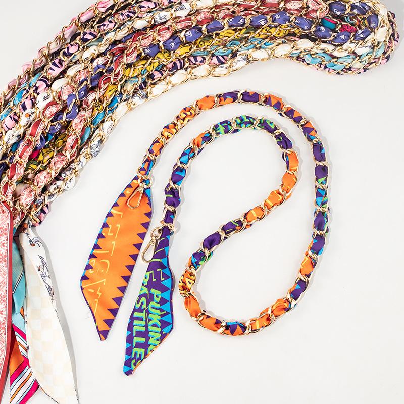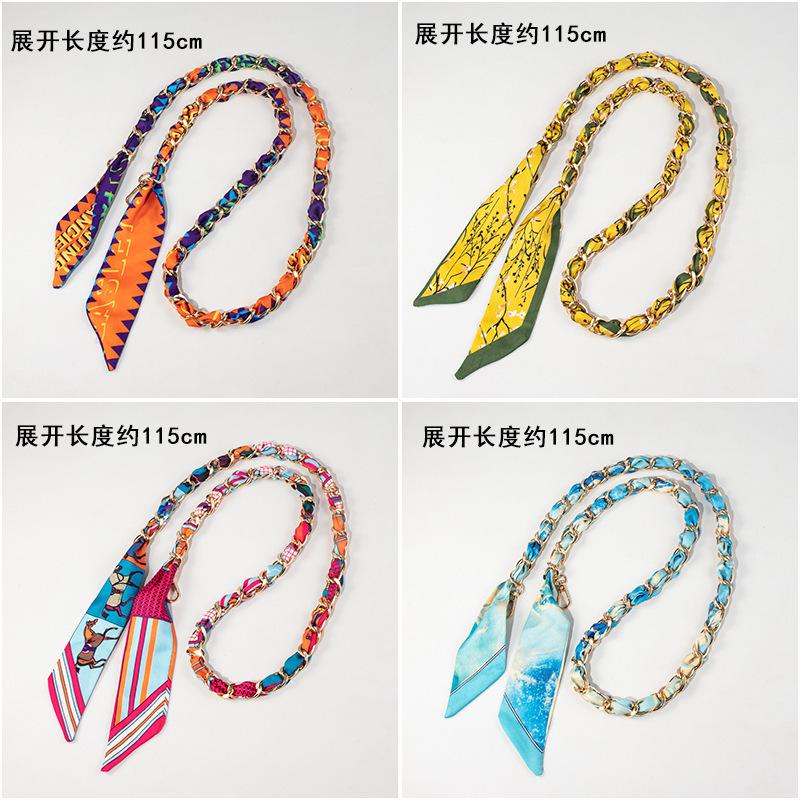 Bolso Bolso Cinturón Accesorios Cadena Cadena decorativa Correa de mujer Cadena de bolso Bufanda de seda de alta calidad Cinturón de hombro transformable Combina con todo