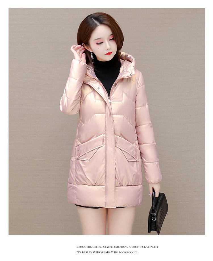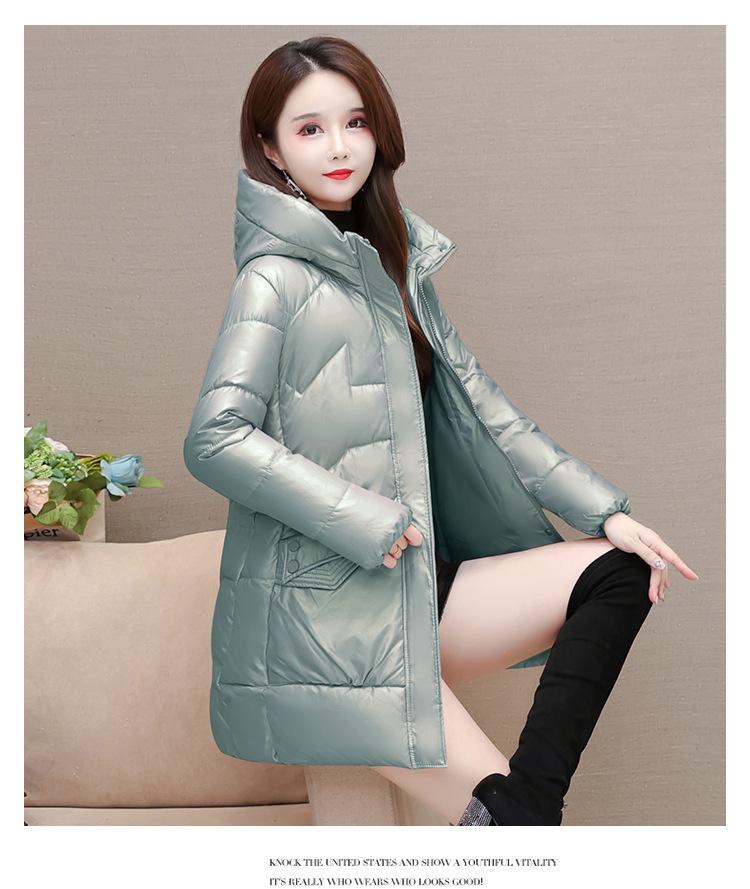 Ropa exterior de algodón juvenil, moderna y brillante, sin lavado para mujer 2023 invierno nuevo estilo coreano engrosado de longitud media, ropa exterior y chaqueta de algodón acolchado