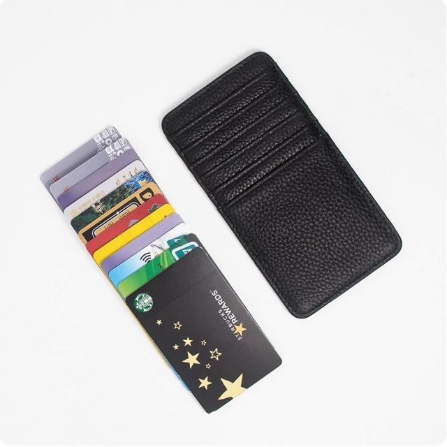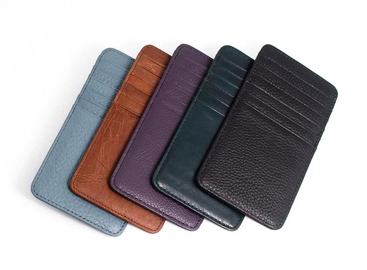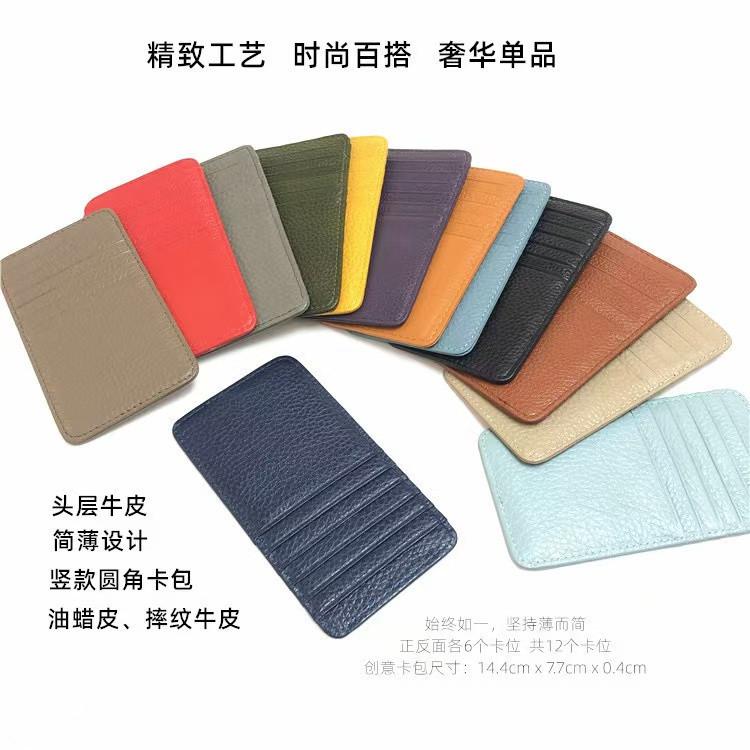 Tarjetero multitarjeta ultrafino de doble cara de cuero transfronterizo para hombre y mujer, billetera creativa vertical de piel de vaca con capa superior.