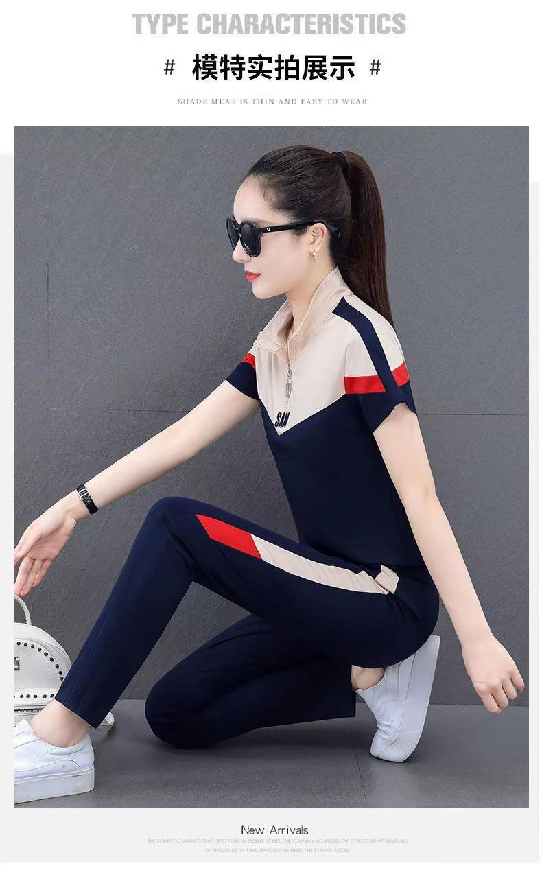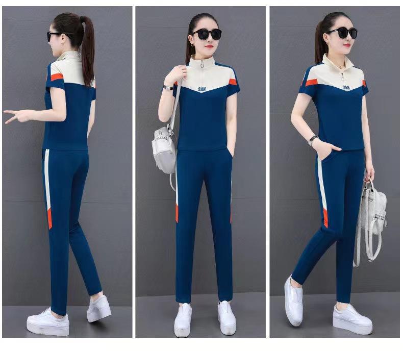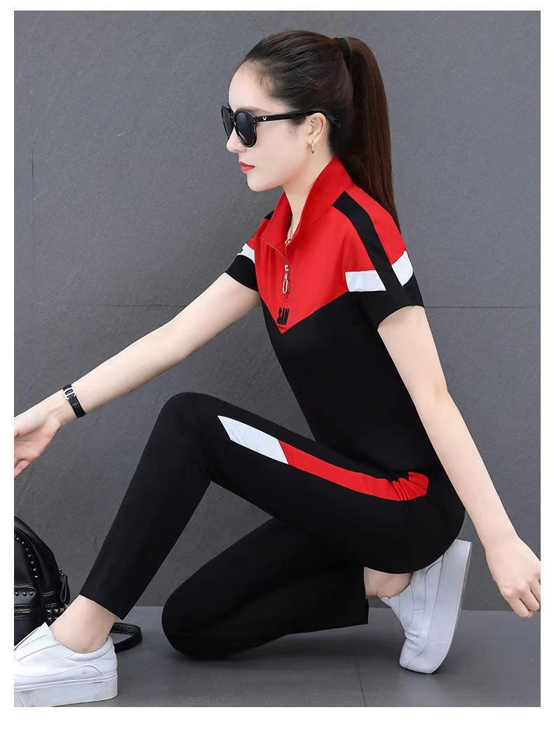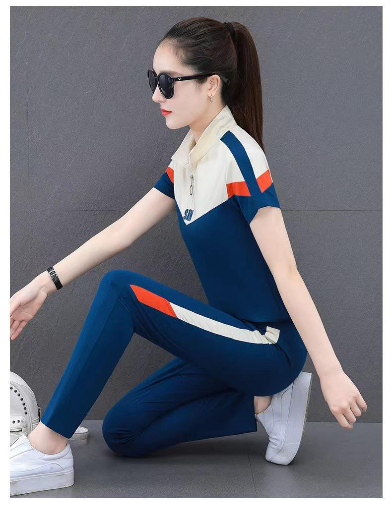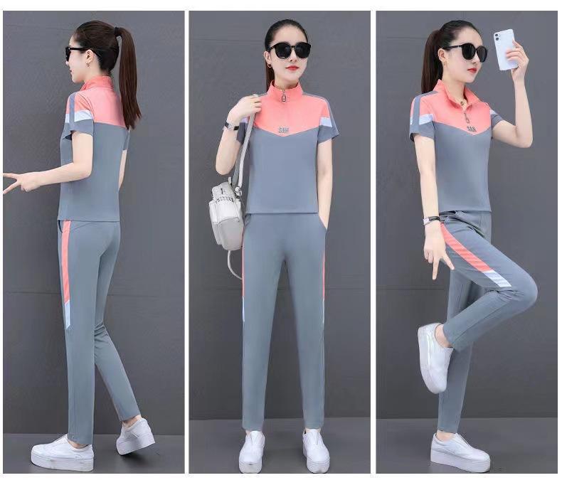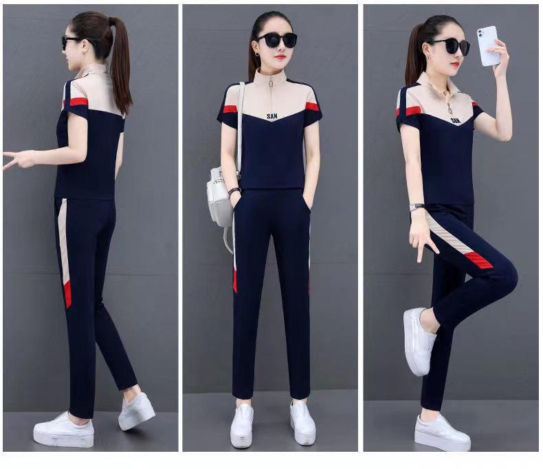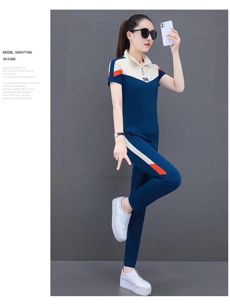 Traje deportivo de moda para mujer, verano 2023, nuevo, estilo coreano, cuello holgado y elegante, ropa deportiva informal, conjunto de dos piezas a la moda