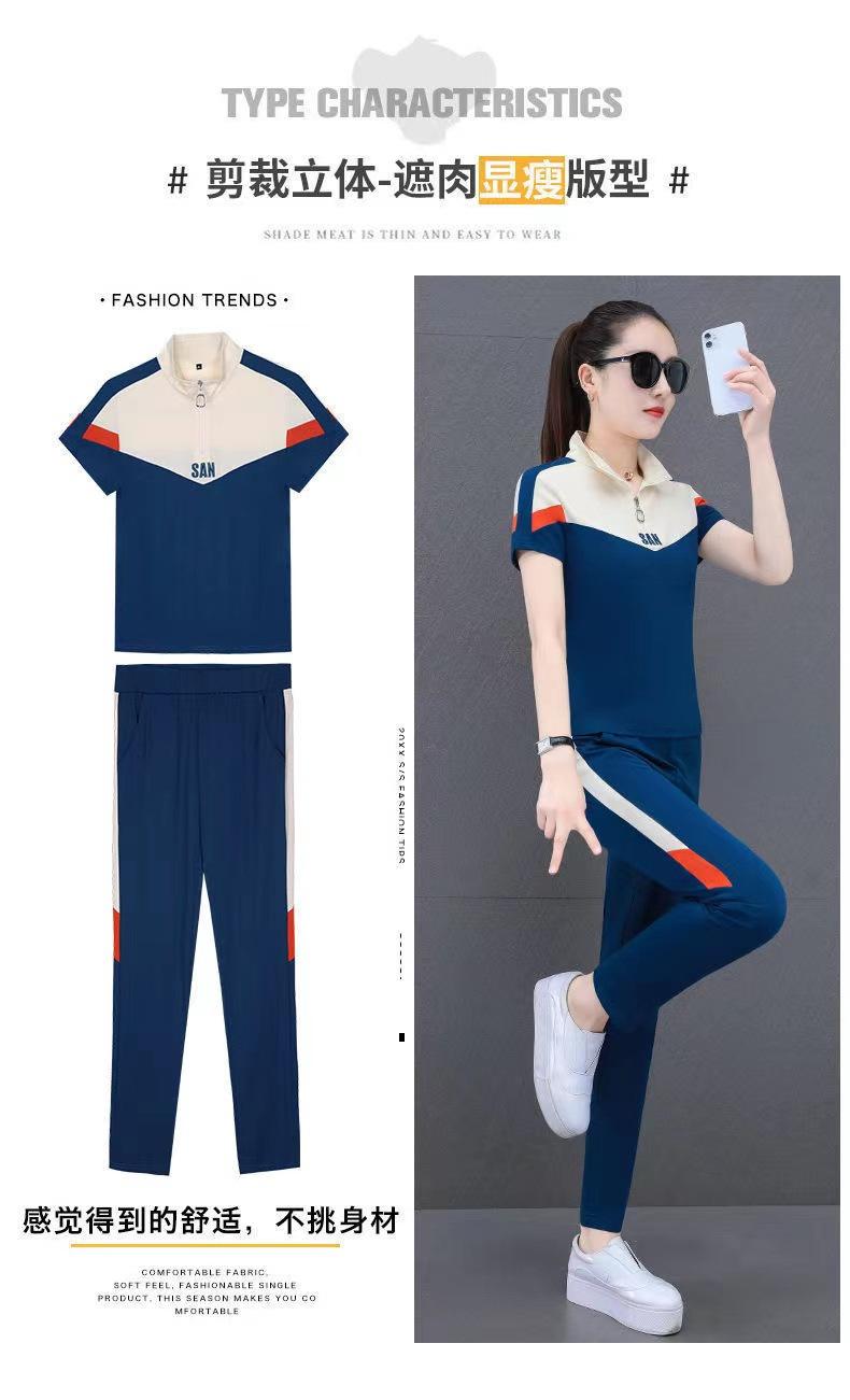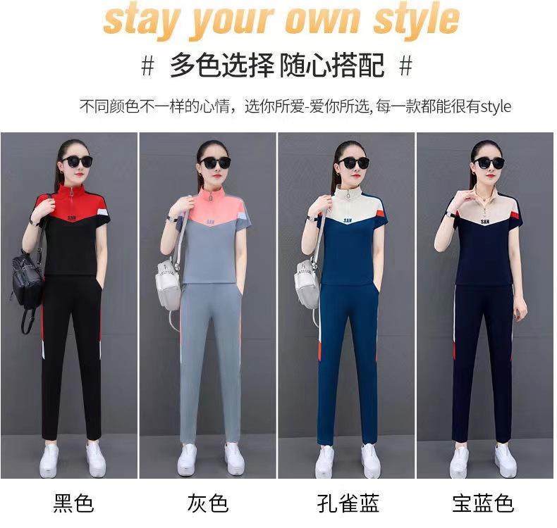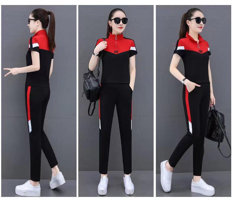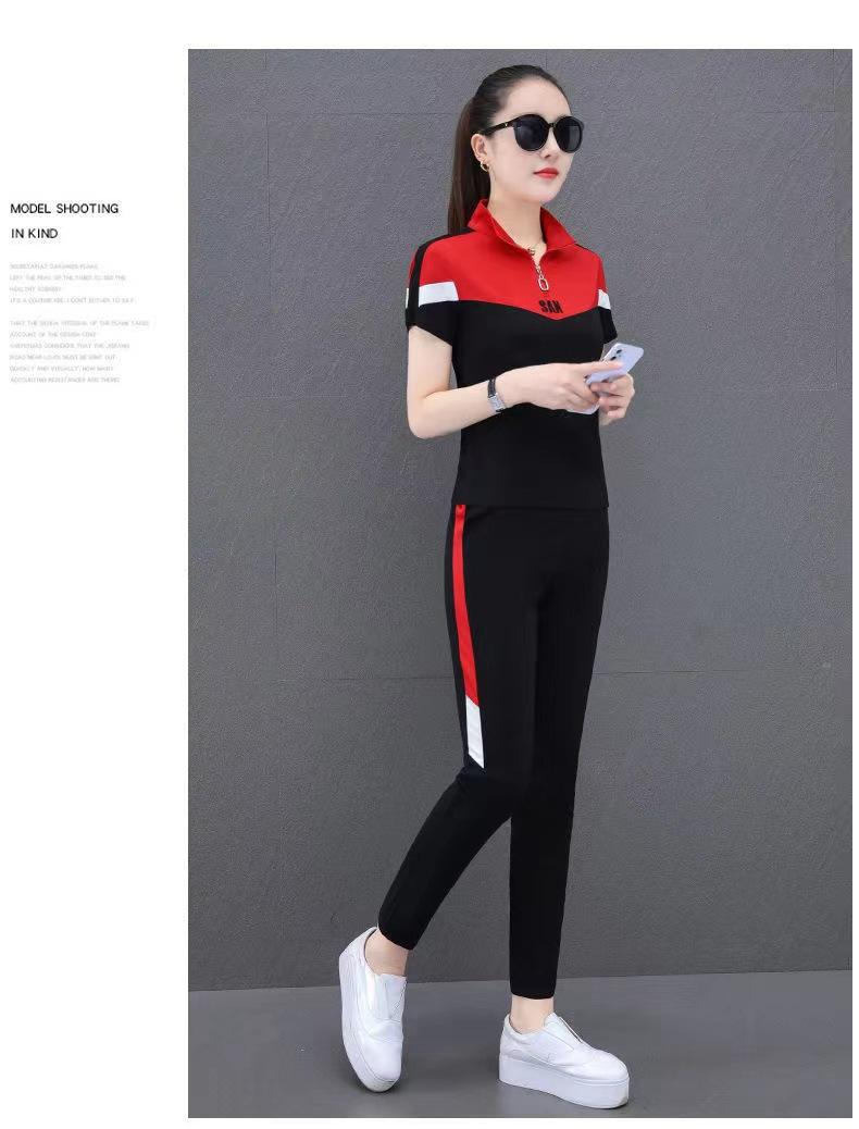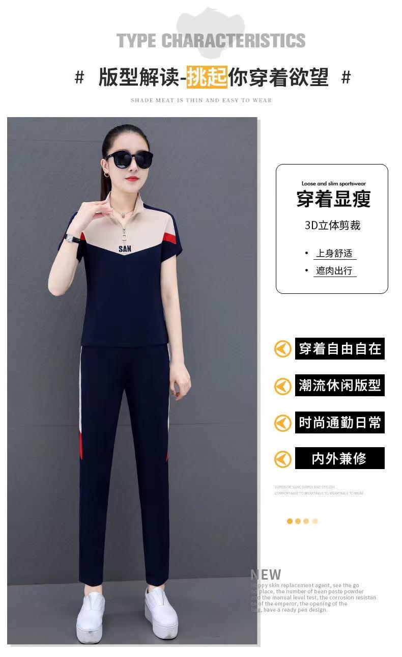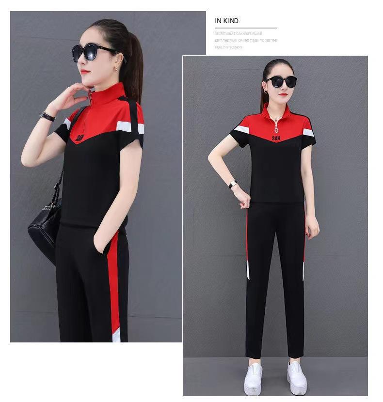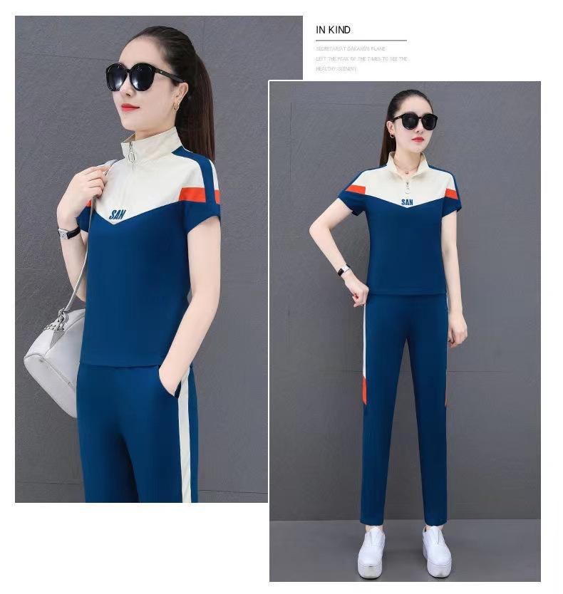 Traje deportivo de moda para mujer, verano 2023, nuevo, estilo coreano, cuello holgado y elegante, ropa deportiva informal, conjunto de dos piezas a la moda