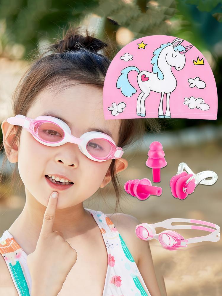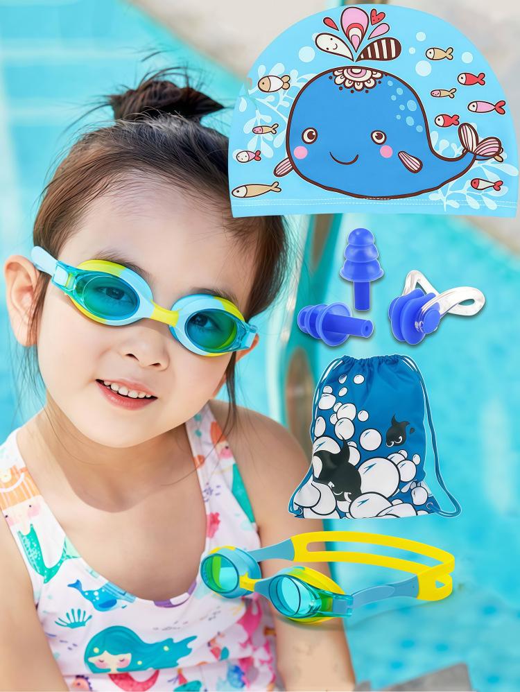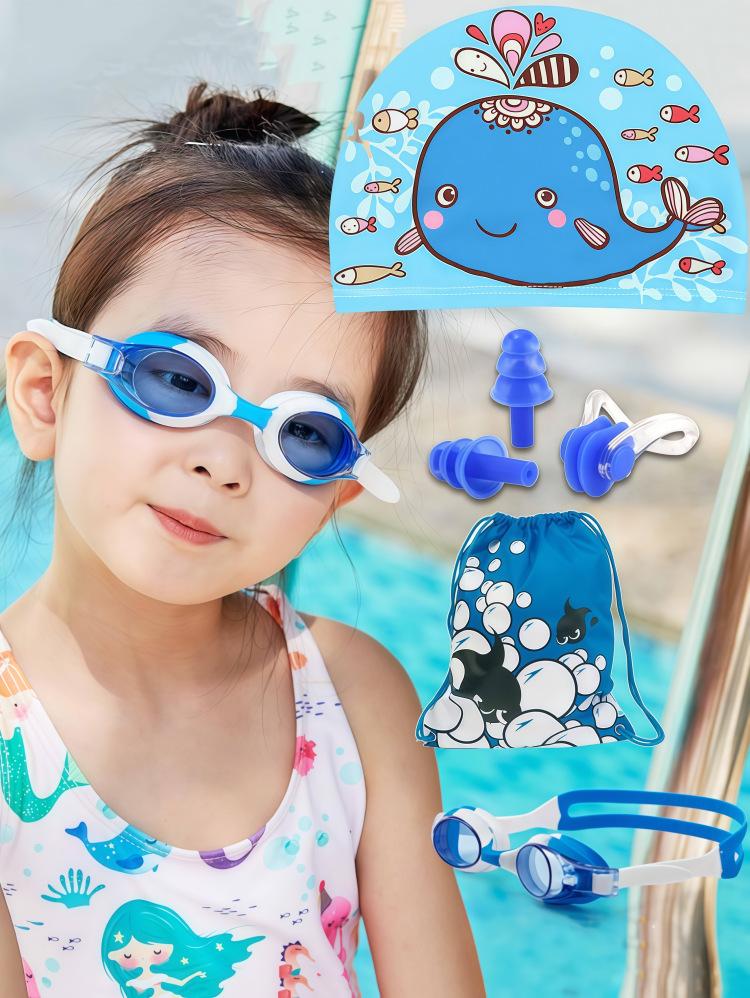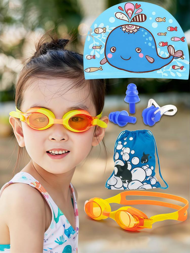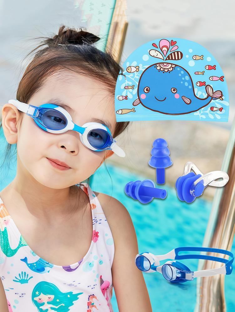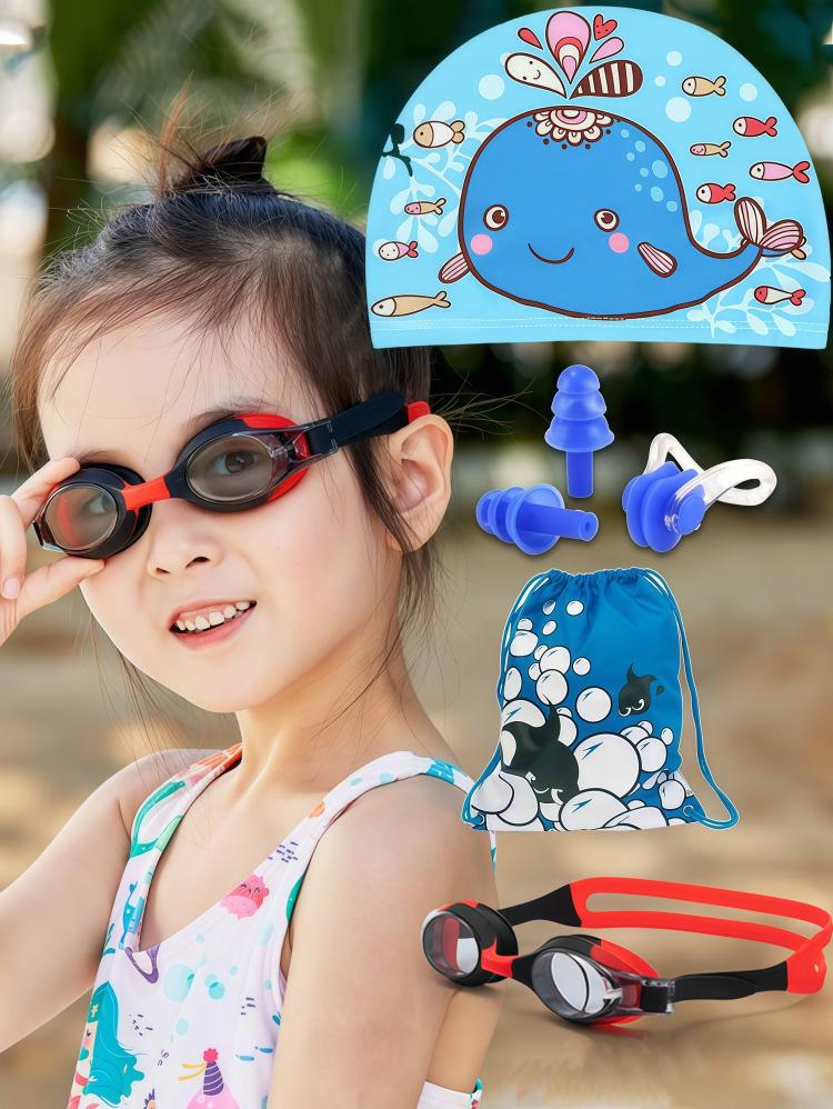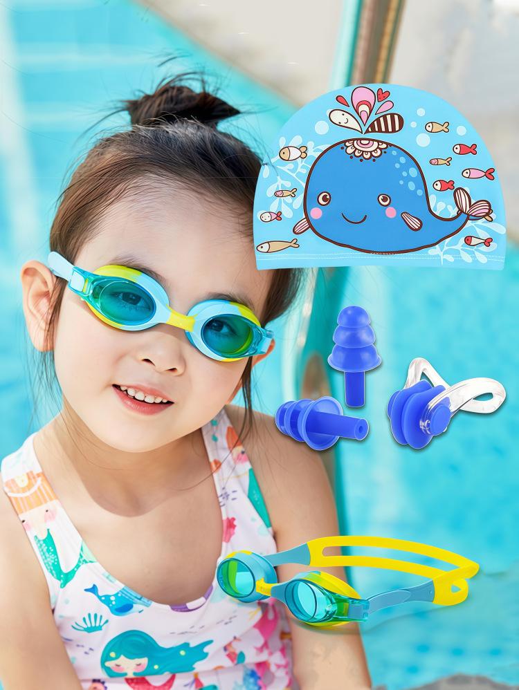 Suministro transfronterizo gafas de natación de silicona antivaho impermeables para niños, gorro de natación, pinza para nariz, juego de tapones para los oídos, generación de natación