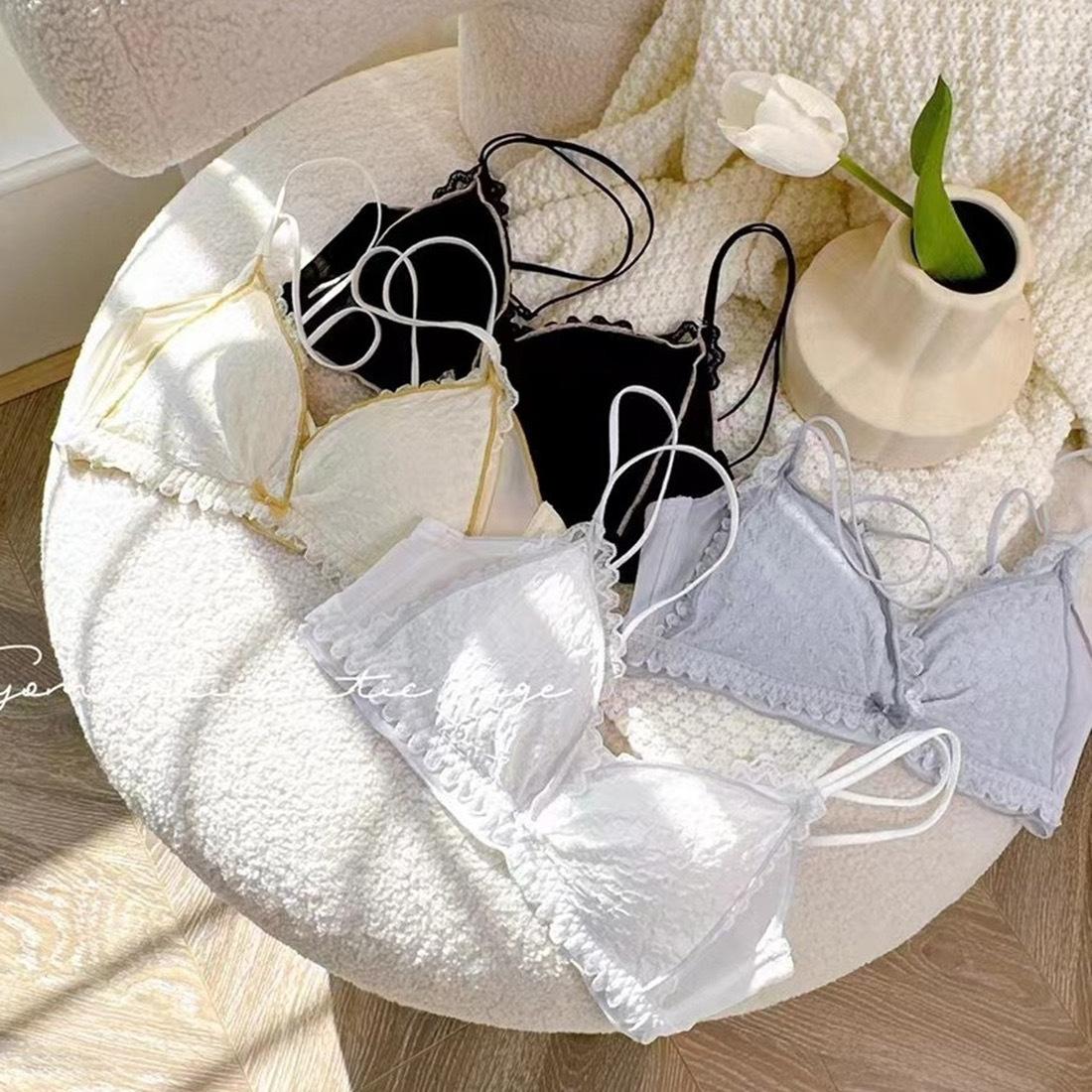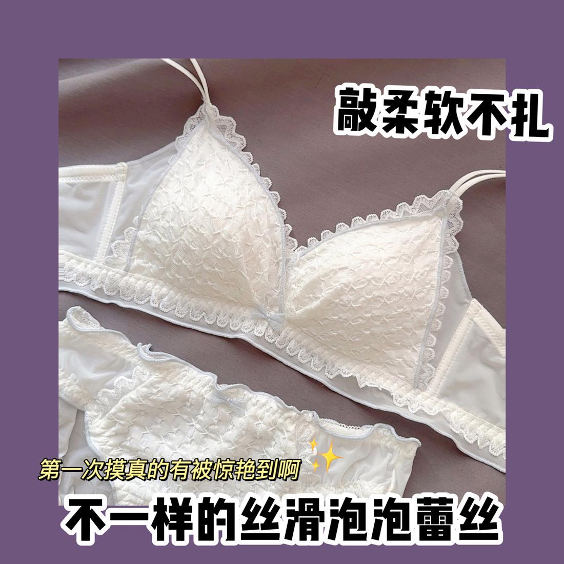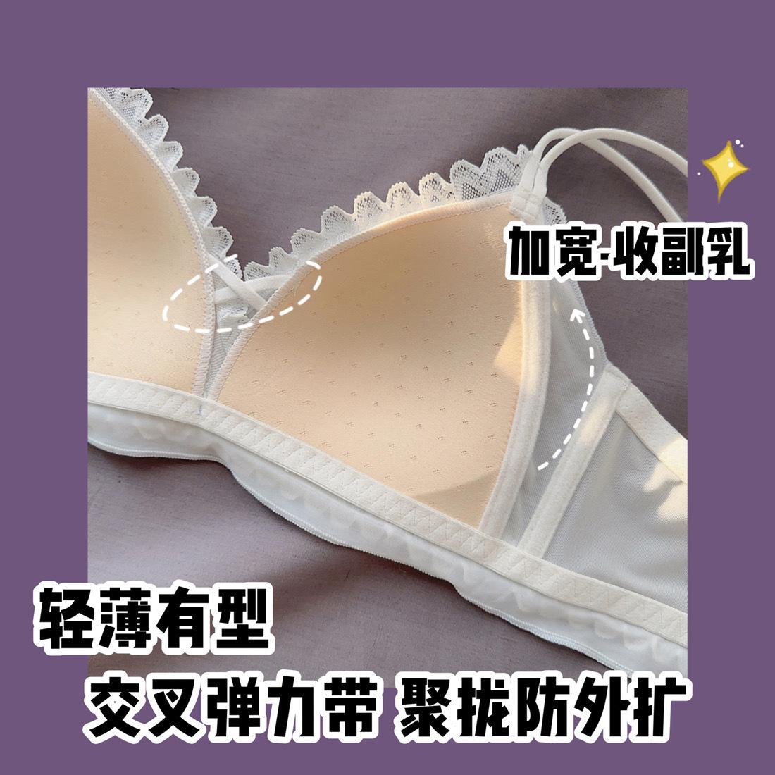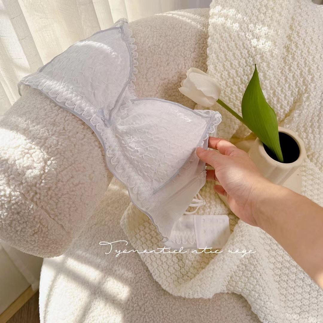 Hermosa Ropa Interior Trasera para Mujer Pecho Pequeño Push-up Sin Aro de Acero Ajustable Estilo Japonés Encaje Traje de Sujetador Blanco Delgado para Niña
