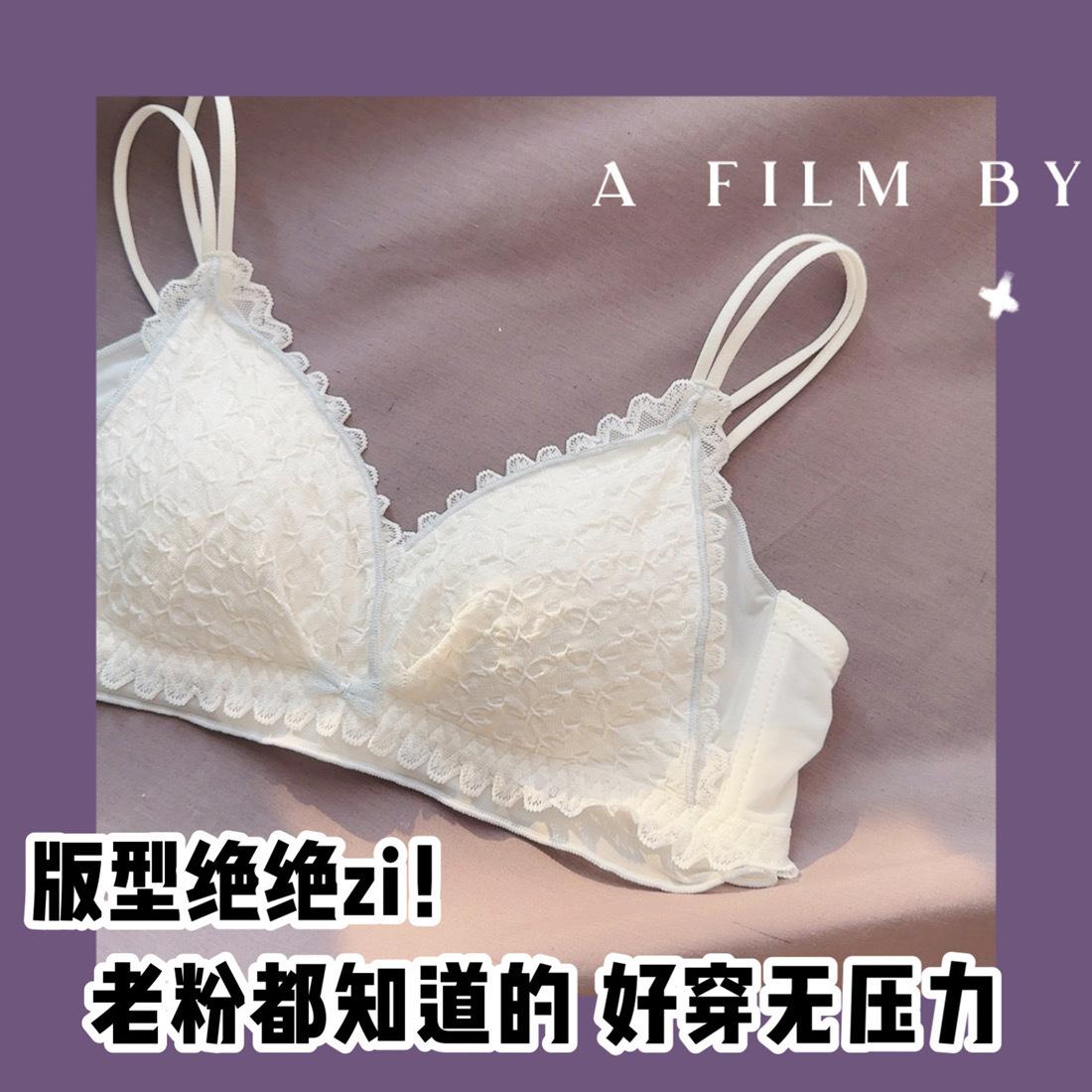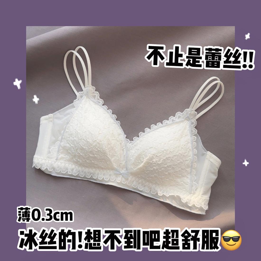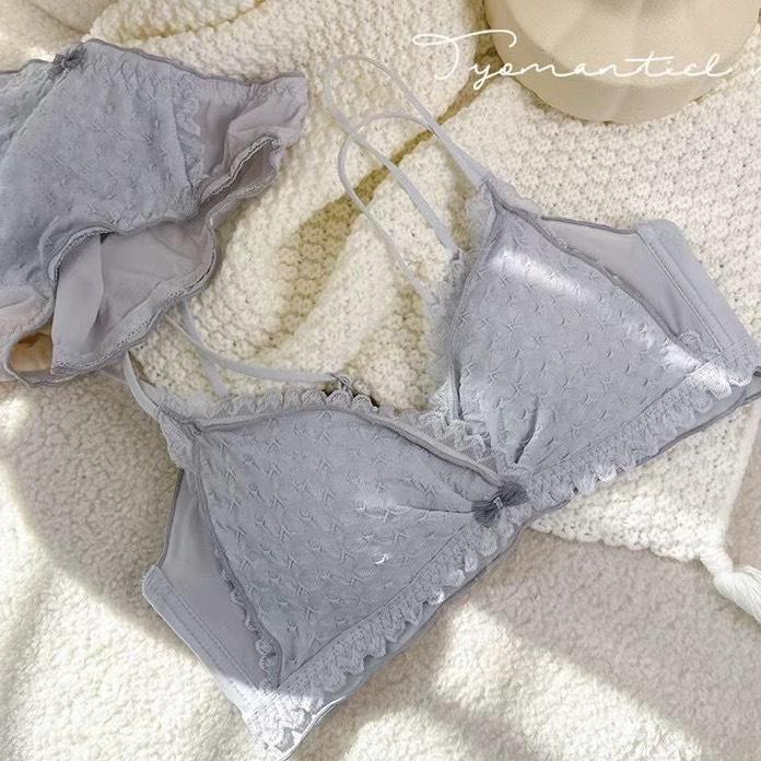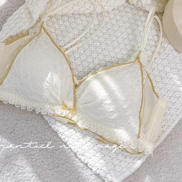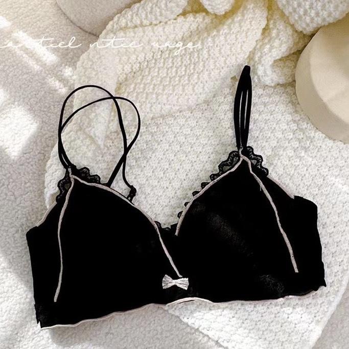 Hermosa Ropa Interior Trasera para Mujer Pecho Pequeño Push-up Sin Aro de Acero Ajustable Estilo Japonés Encaje Traje de Sujetador Blanco Delgado para Niña