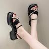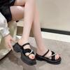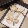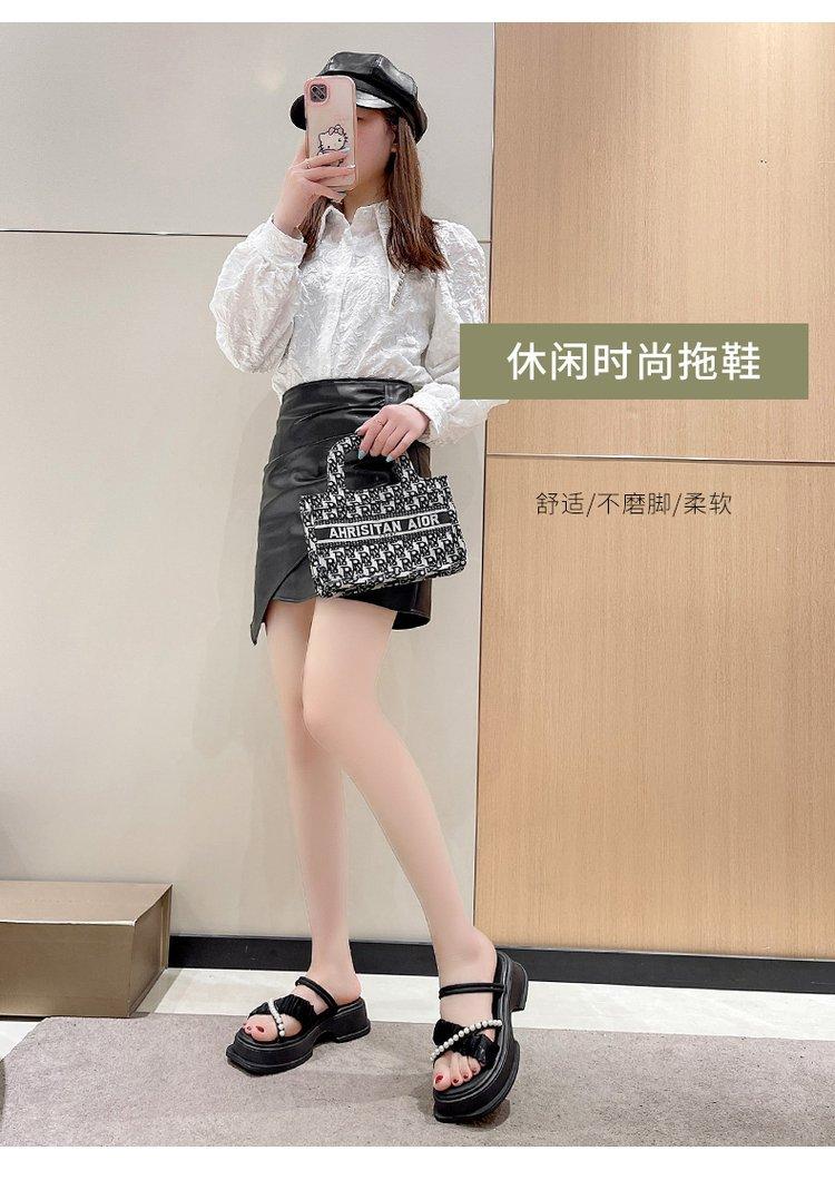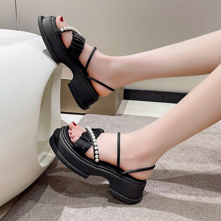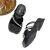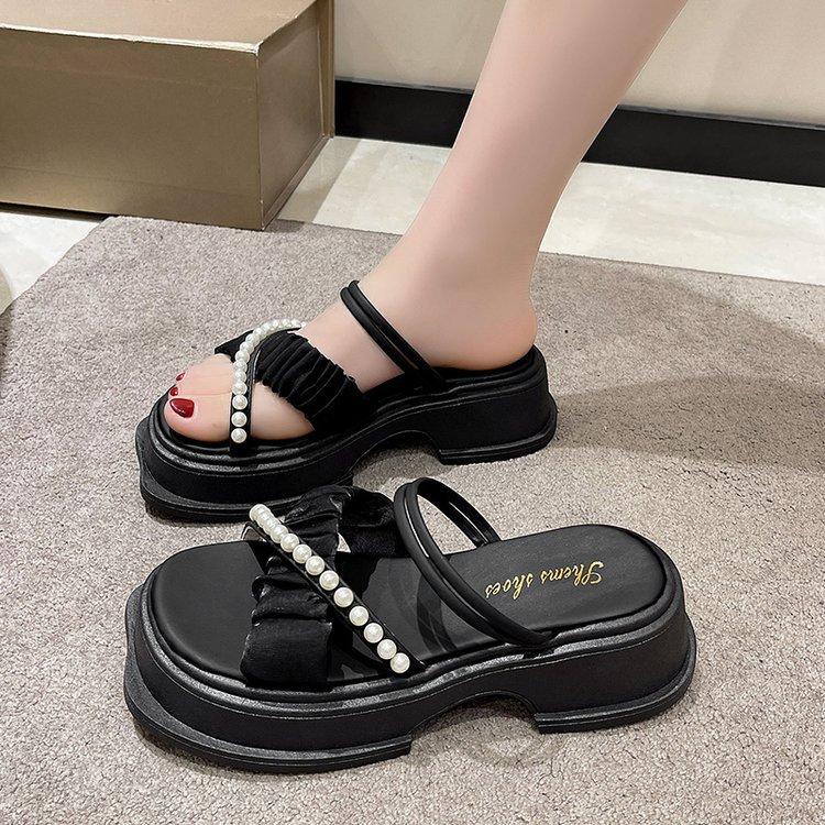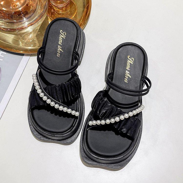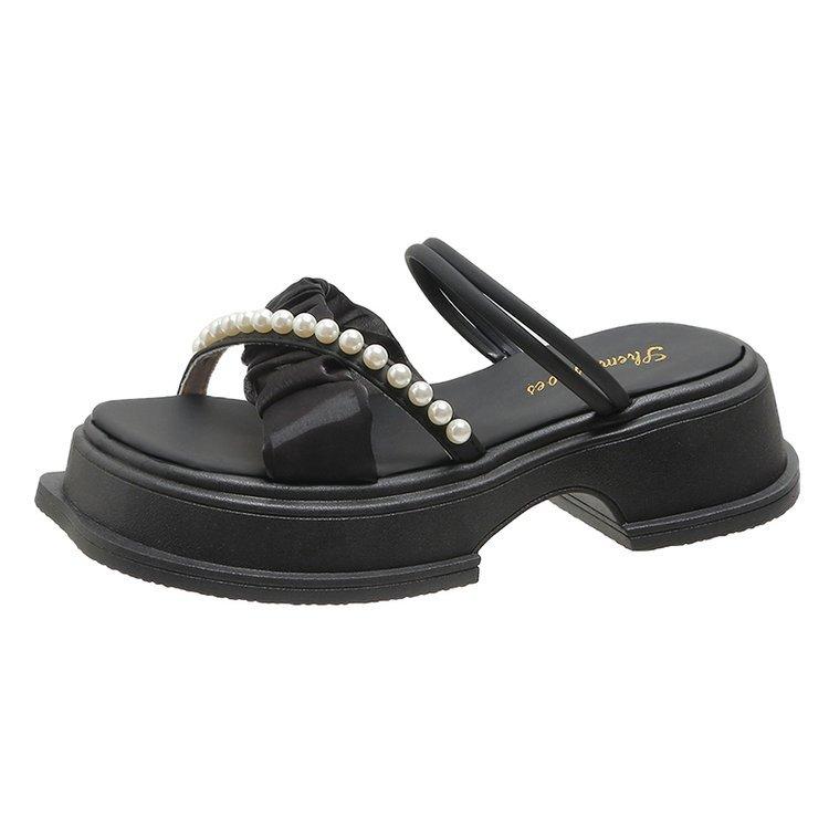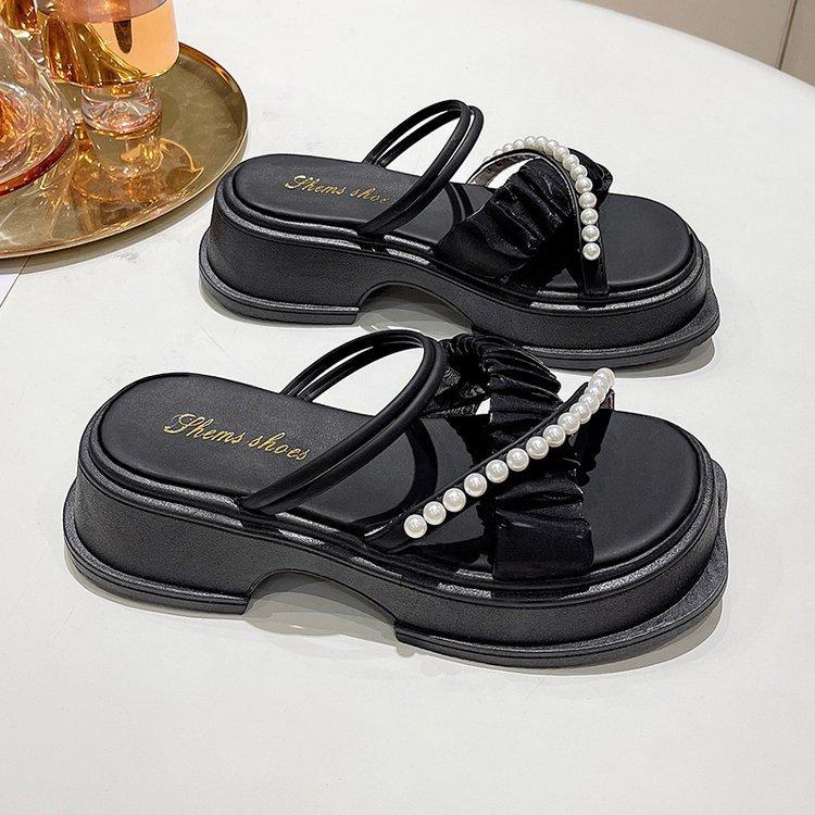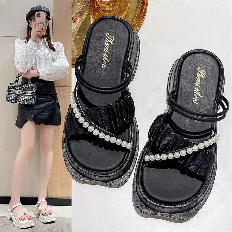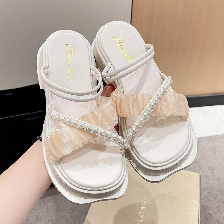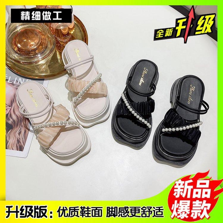 Sandalias y pantuflas de tacón grueso con diseño de hadas y perlas brillantes para mujer, zapatos informales para playa, novedad de verano de 2024.