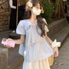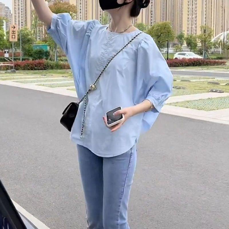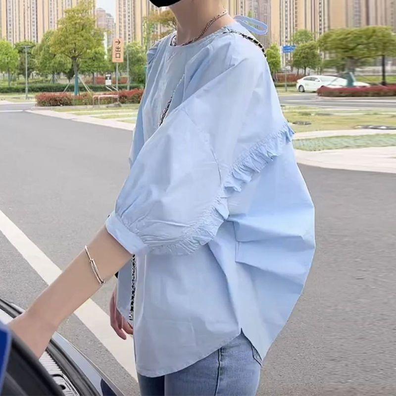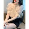 Camisa blanca de manga corta con mangas abullonadas para mujer, diseño holgado, estilo nicho, verano 2024, nueva camiseta floral de muñeca.