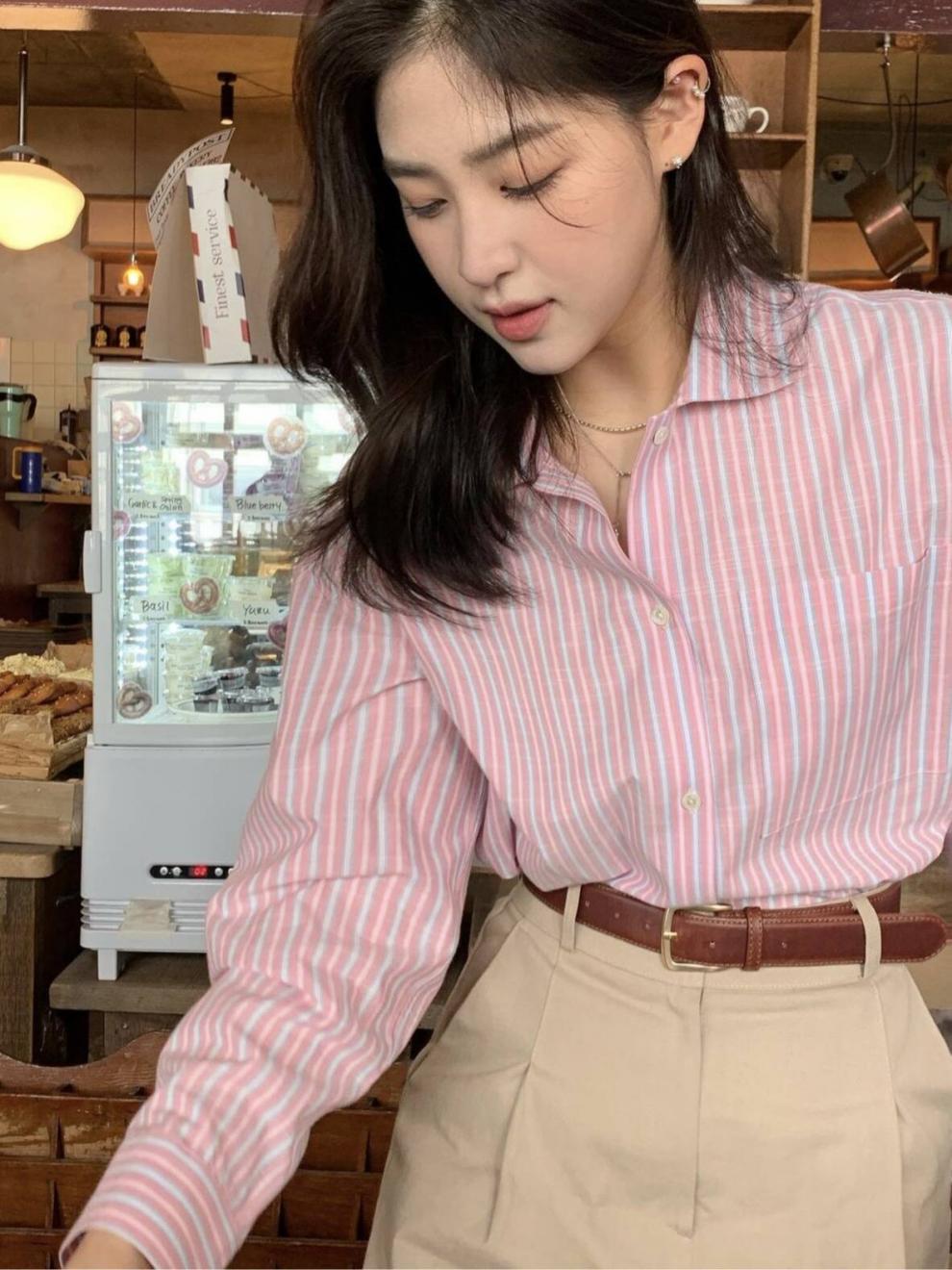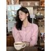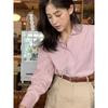 Camisa de rayas rosas con diseño de estilo coreano Sense Niche para mujer, primavera y otoño 2024, camisa francesa de manga larga, elegante y chic.