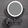 Espejo de maquillaje de baño con luz LED giratorio plegable para colgar en la pared del baño gris plomo telescópico redondo de doble cara espejo de belleza