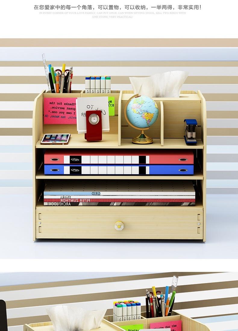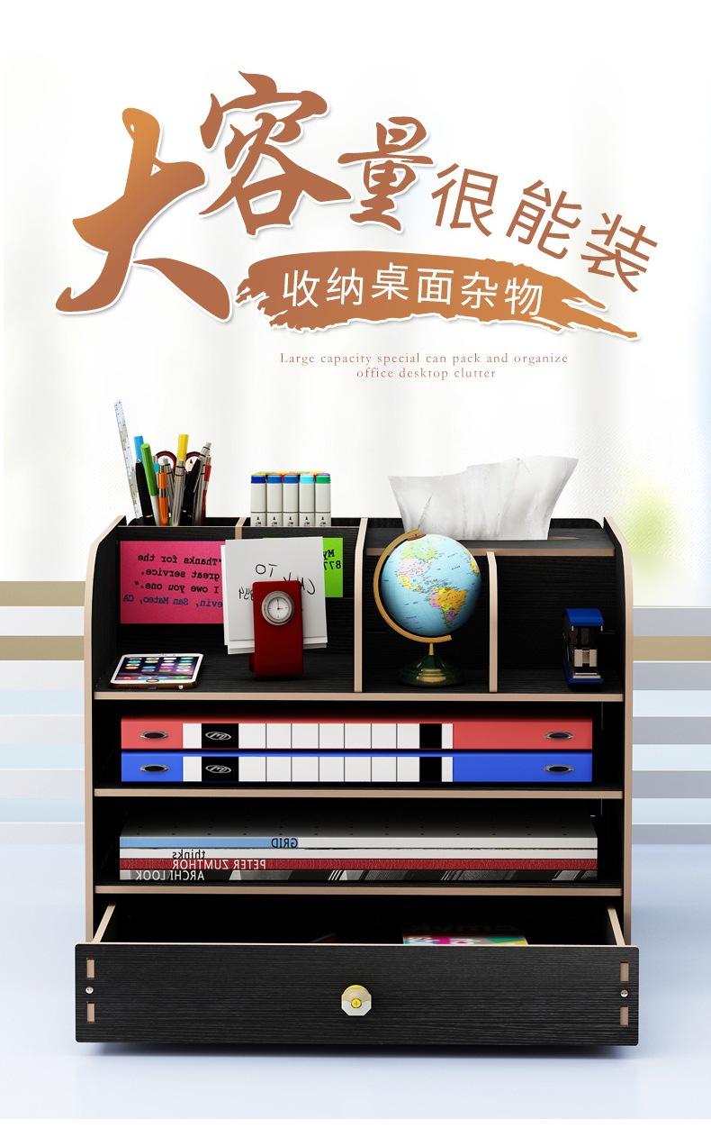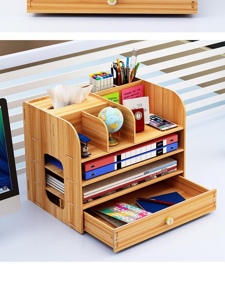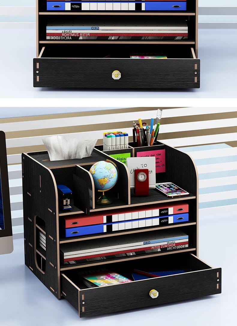 Caja de almacenamiento de archivos de escritorio para suministros de oficina, creativa caja de madera multicapa para libros, papelería, estante de almacenamiento para artículos diversos
