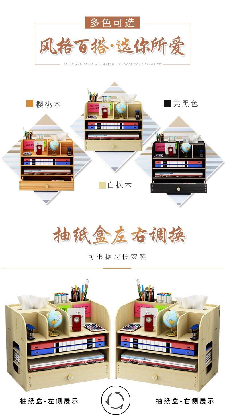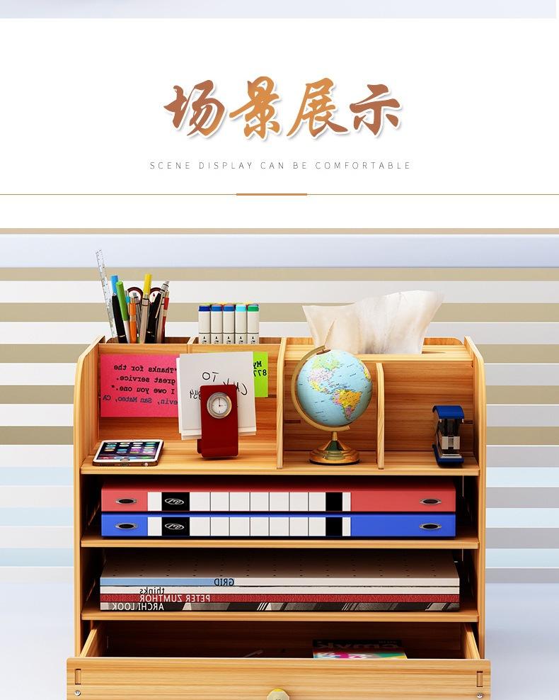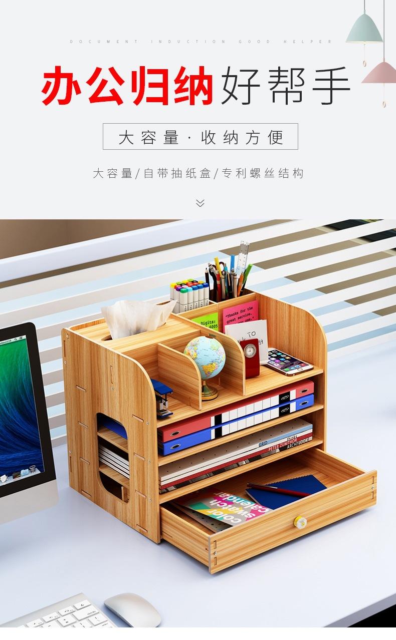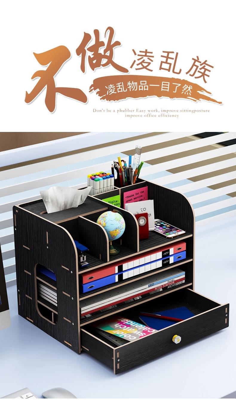 Caja de almacenamiento de archivos de escritorio para suministros de oficina, creativa caja de madera multicapa para libros, papelería, estante de almacenamiento para artículos diversos
