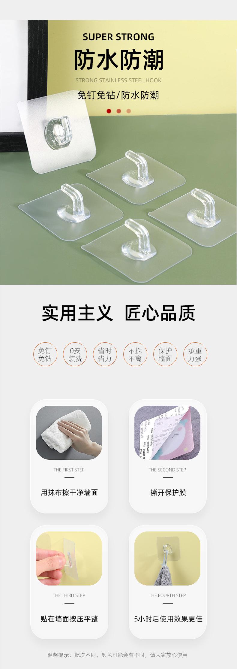 Gancho de cuerno transparente sin costuras, gancho de plástico fuerte que no se oxida, gancho adhesivo para colgar en la pared de la cocina o el dormitorio, gancho de plástico sin perforaciones