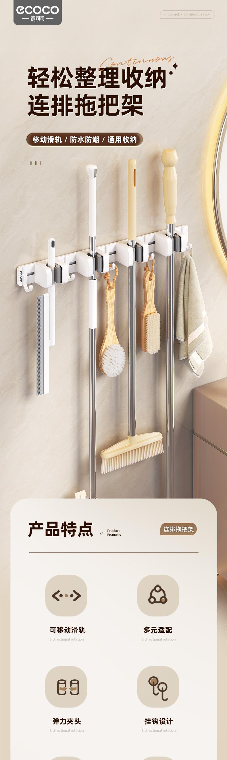 Ganchos Adhesivos de Pared para Soportes de Fregona, Ganchos de Almacenamiento sin Perforación, Ganchos Domésticos sin Rastro para Montaje en Pared de Baño