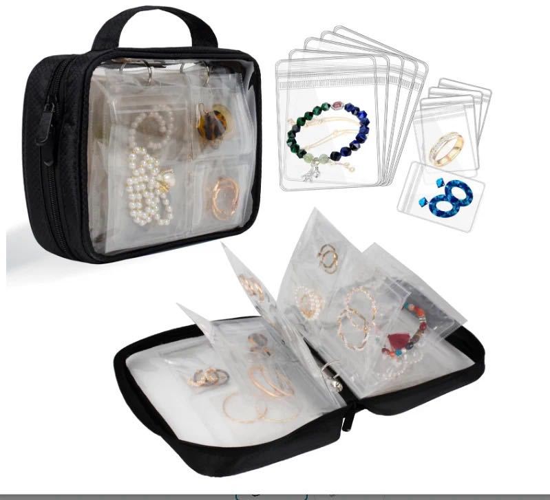Libro de Almacenamiento de Joyería Transparente Engrosado con Cremallera Aretes Aretes Collar Gran Capacidad Caja de Almacenamiento de Joyería Portátil Bolsa Sellada