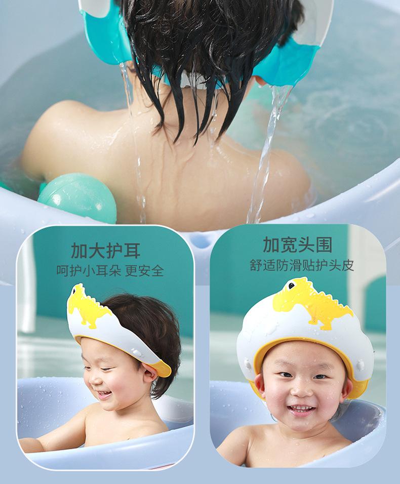 Artefacto Champú para Bebé Gorro de Champú para Bebé Impermeable Protección Ocular Protección para los Oídos Silicona Dinosaurio Gorro de Champú para Bebé Gorro de Ducha para Niños