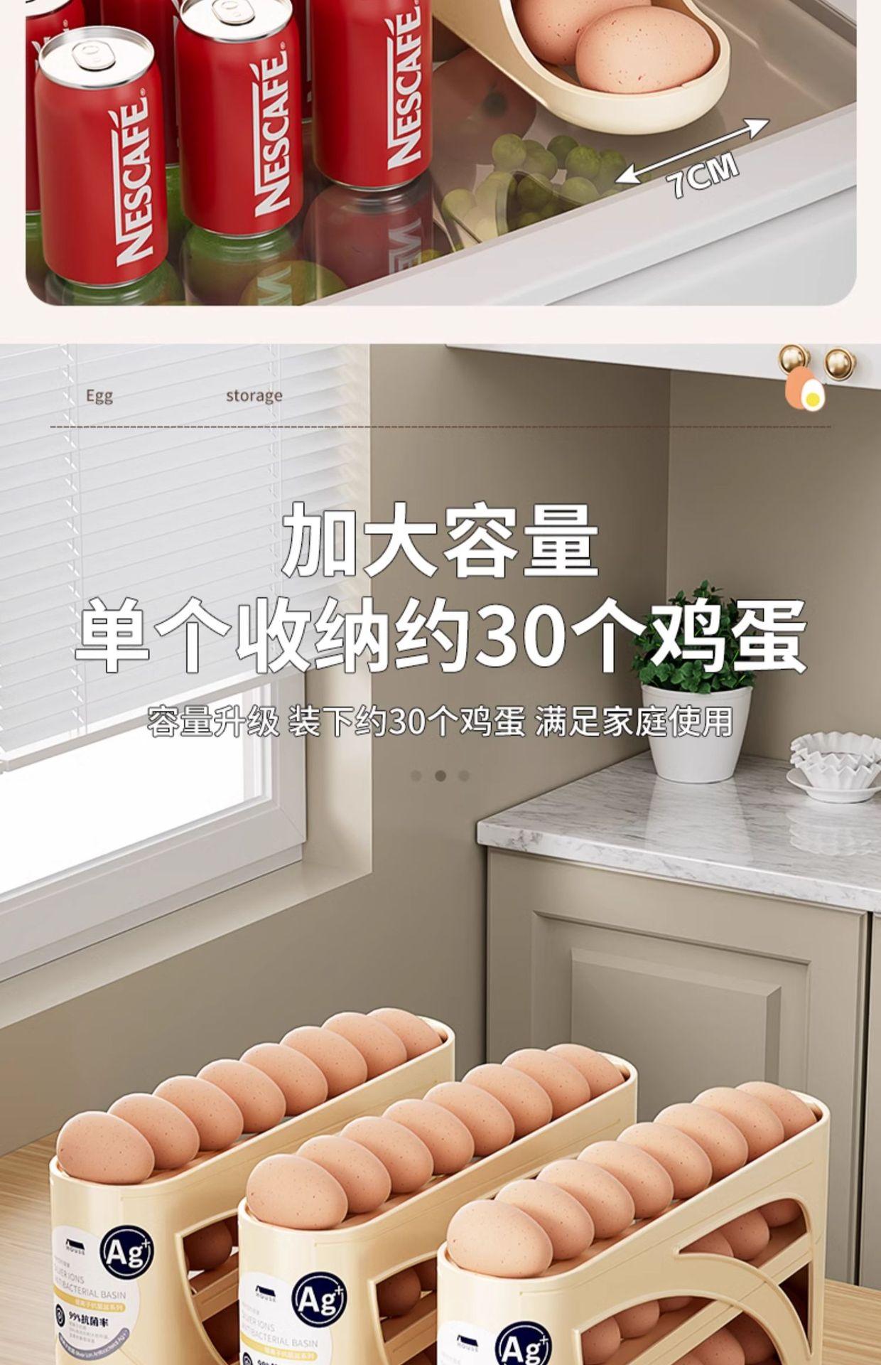 Deslizador de puerta lateral multicapa para refrigerador, caja de almacenamiento de huevos rodante automática, huevera