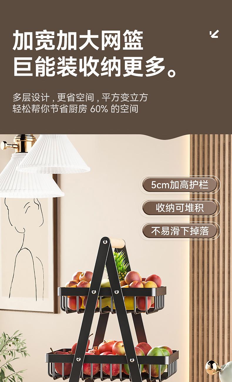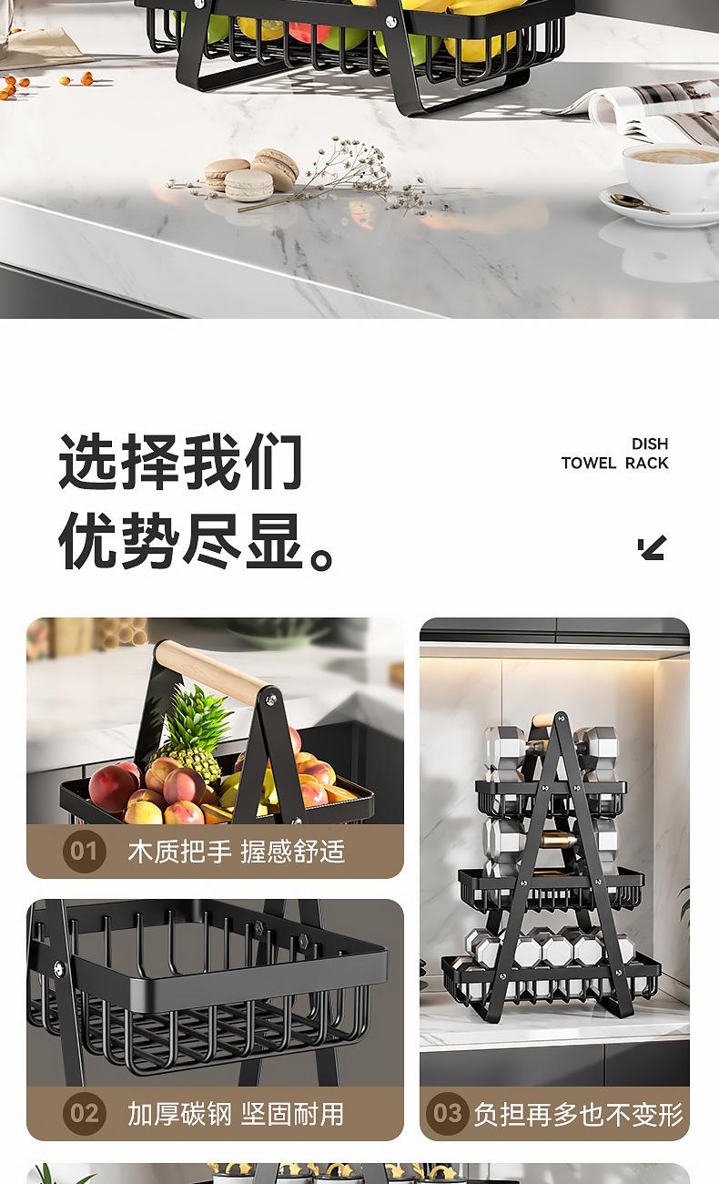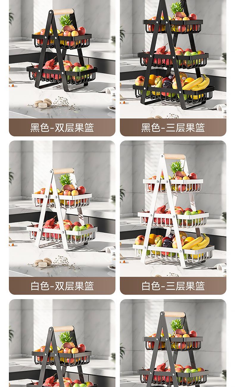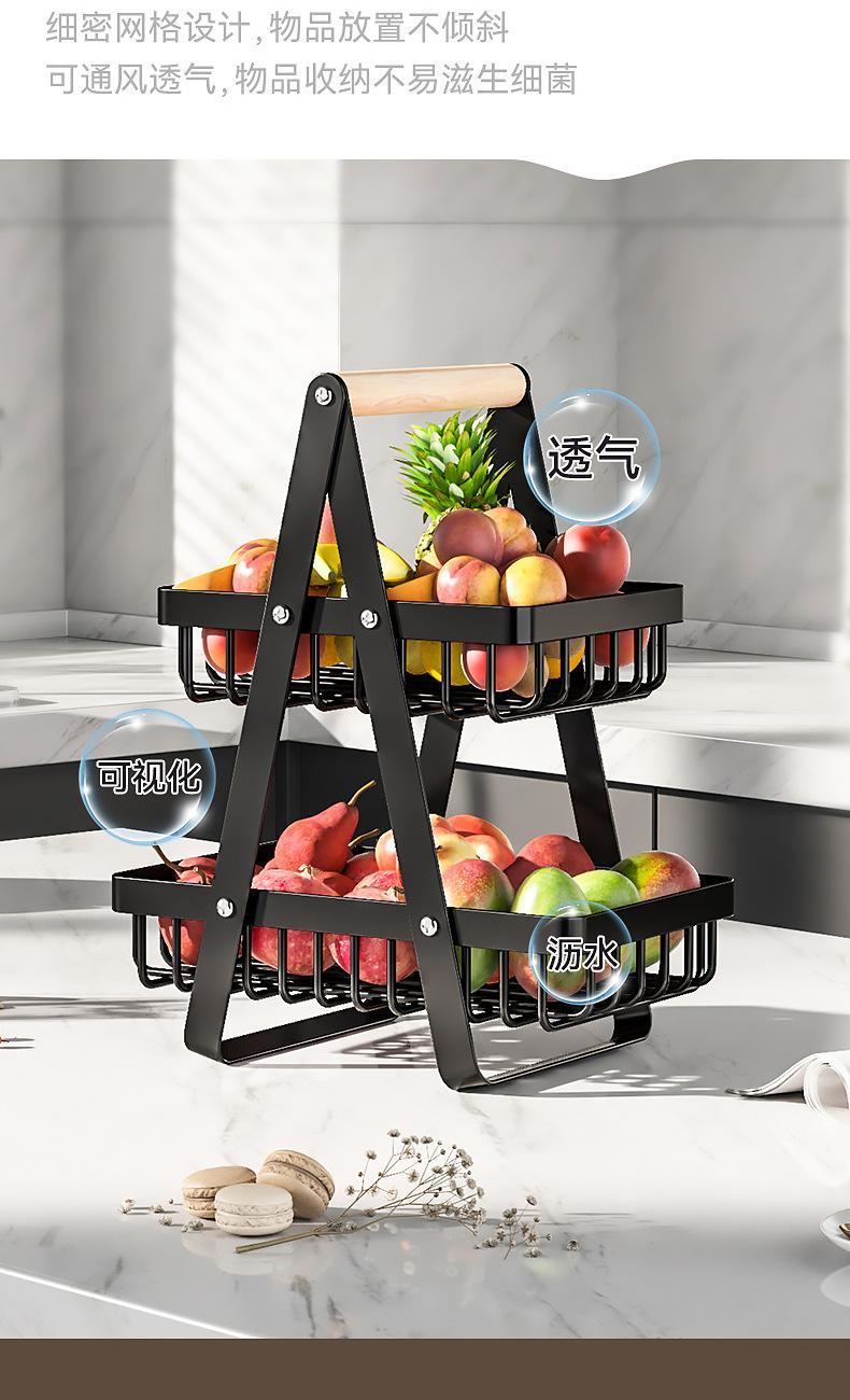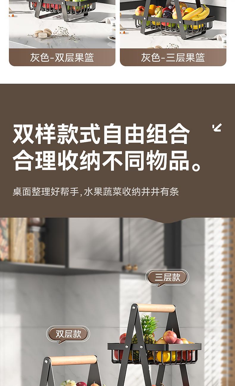 Cesta de frutas desmontable y ensamblable, cesta de almacenamiento de doble capa, cesta portátil de madera, estante de almacenamiento de hierro, cesta de almacenamiento para cocina y sala de estar.