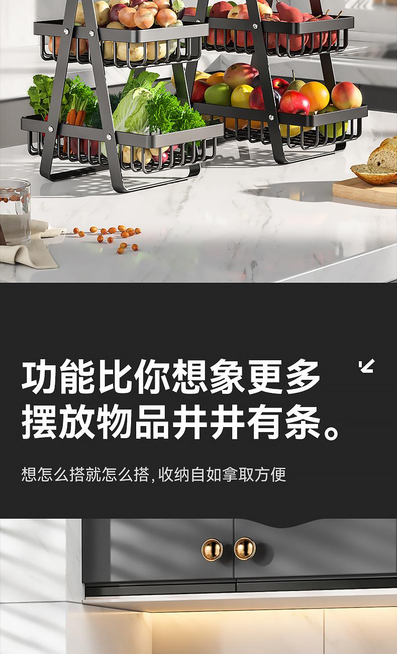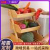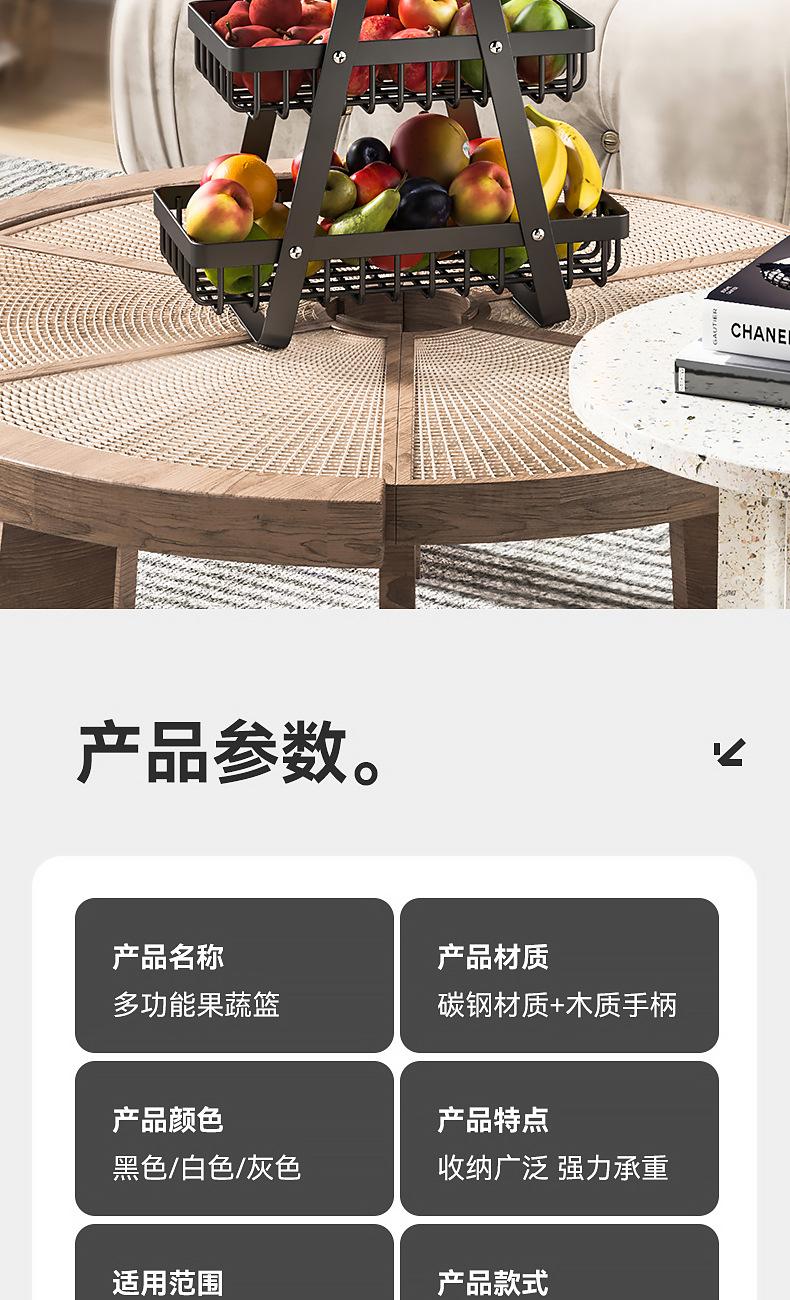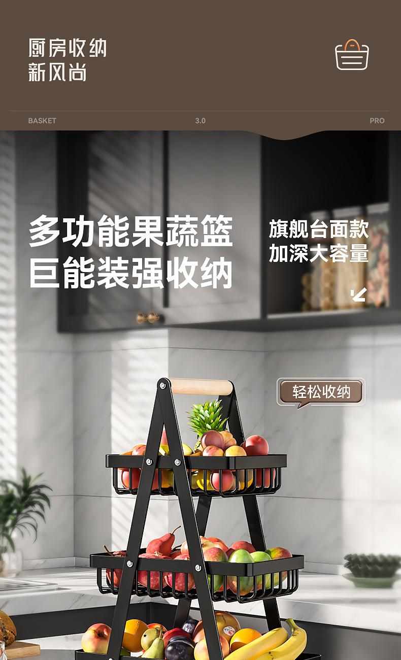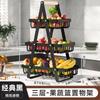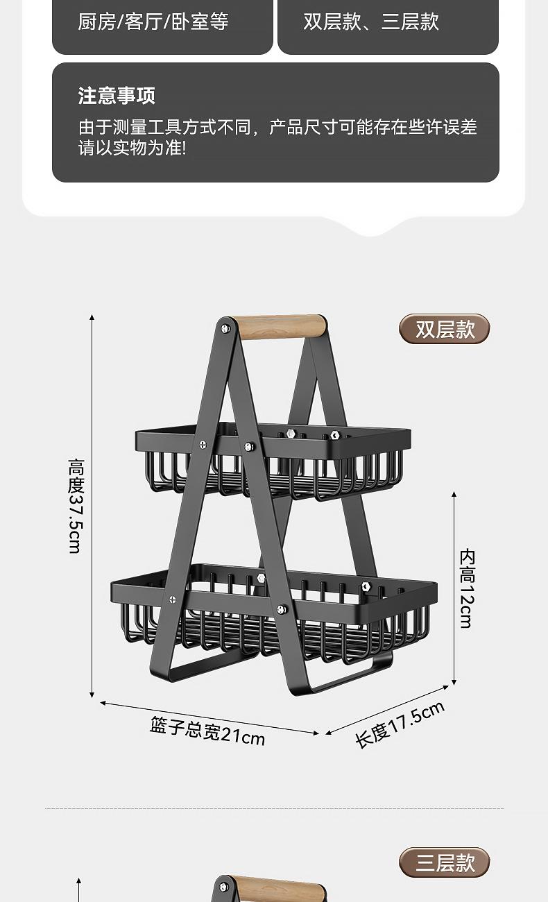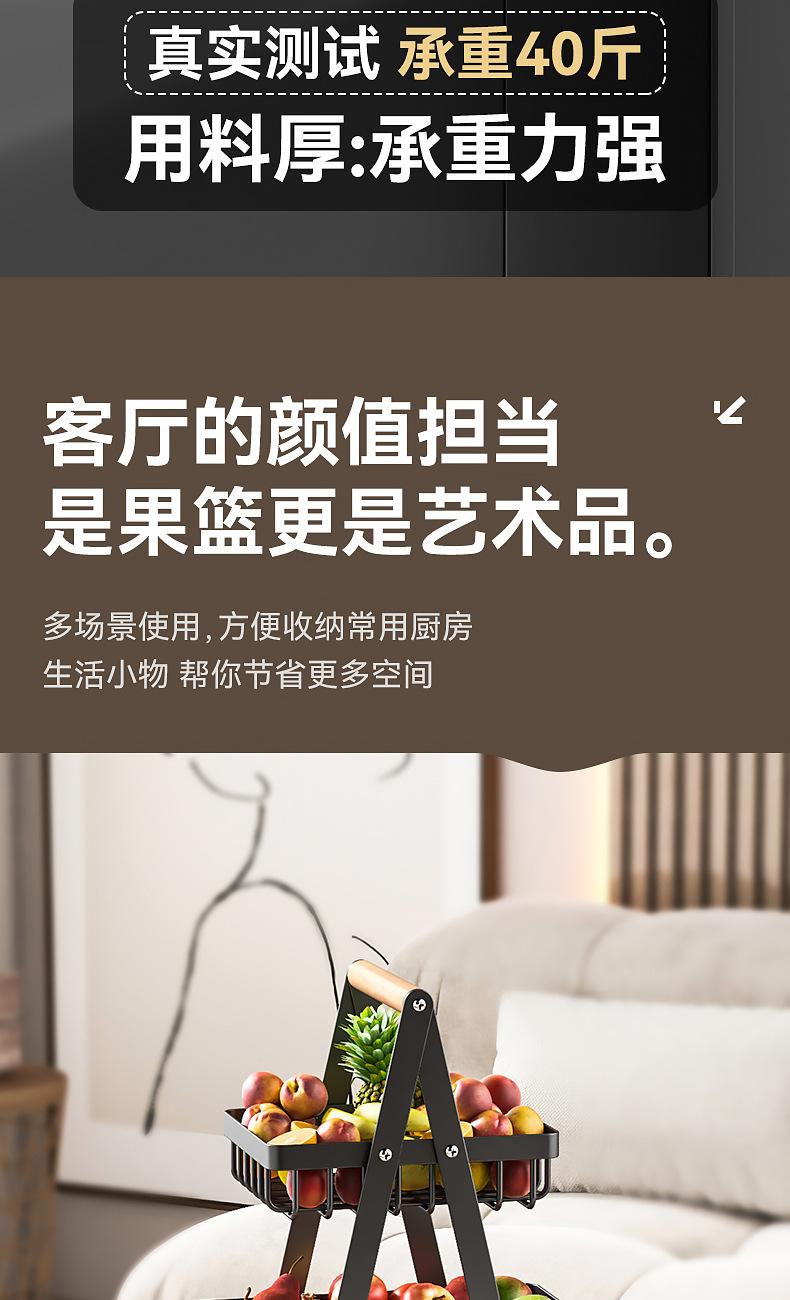 Cesta de frutas desmontable y ensamblable, cesta de almacenamiento de doble capa, cesta portátil de madera, estante de almacenamiento de hierro, cesta de almacenamiento para cocina y sala de estar.
