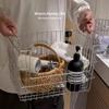 Cesta de almacenamiento de cocina personalizada, cesta de frutas, cesta de almacenamiento manual de hierro, cesta de verduras con asa de madera, cesta de almacenamiento para baño