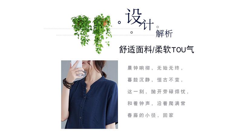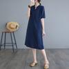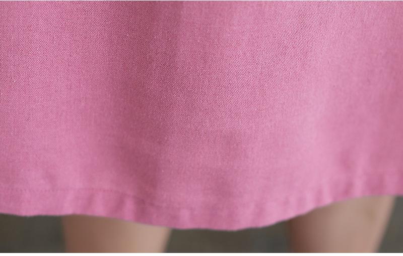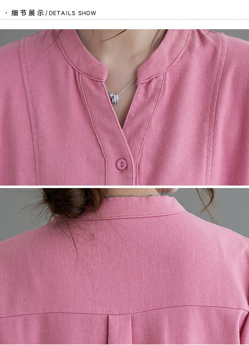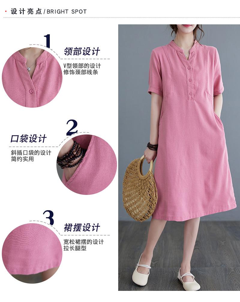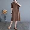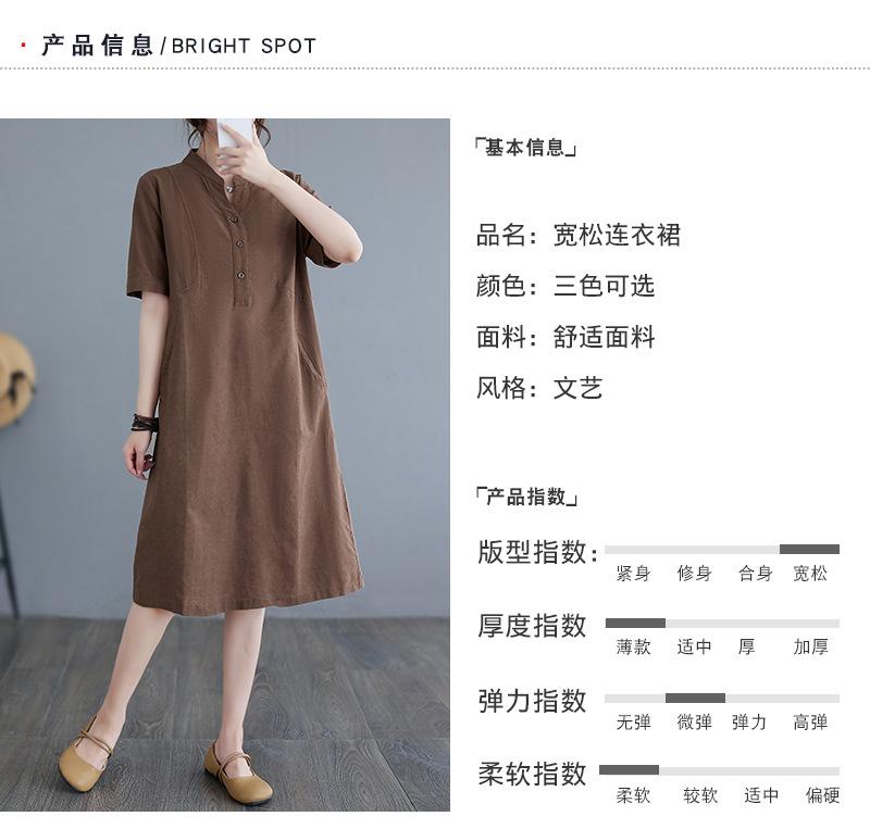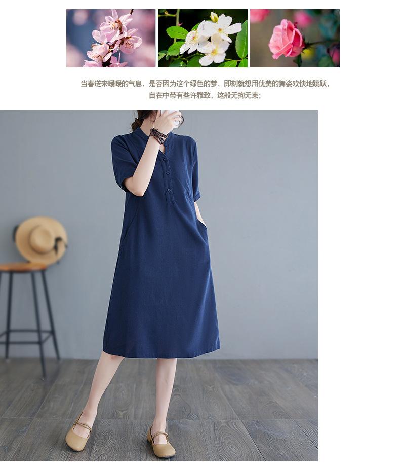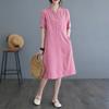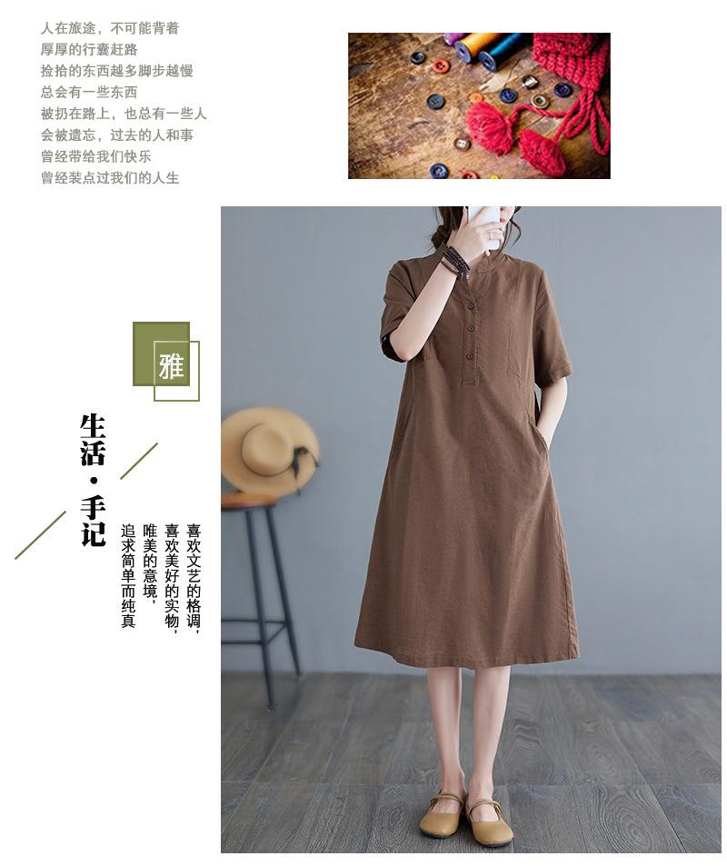 Foto real 2024 verano nuevo arte holgado color sólido algodón cuello V manga corta vestido de mujer largo 1685#