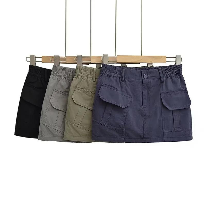 Falda estilo bolsa de papel para mujer, estilo herramientas, estilo sexy, cintura alta, adelgazante, larga, estilo informal, de corte A, 2024
