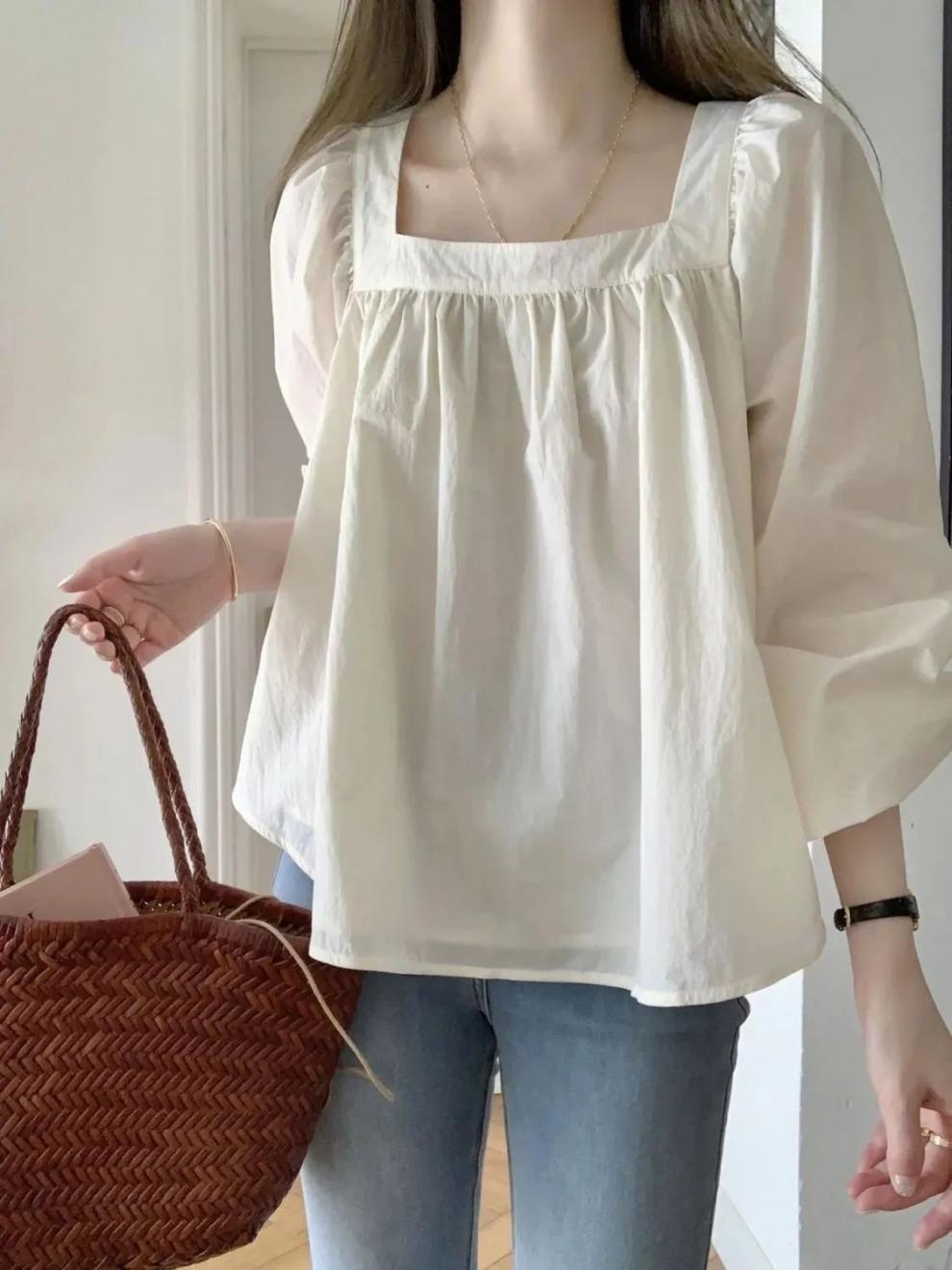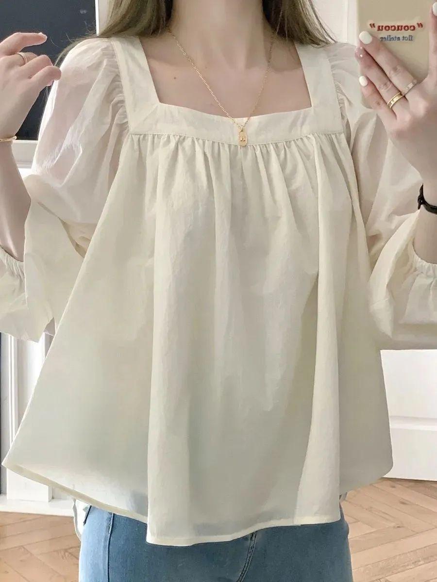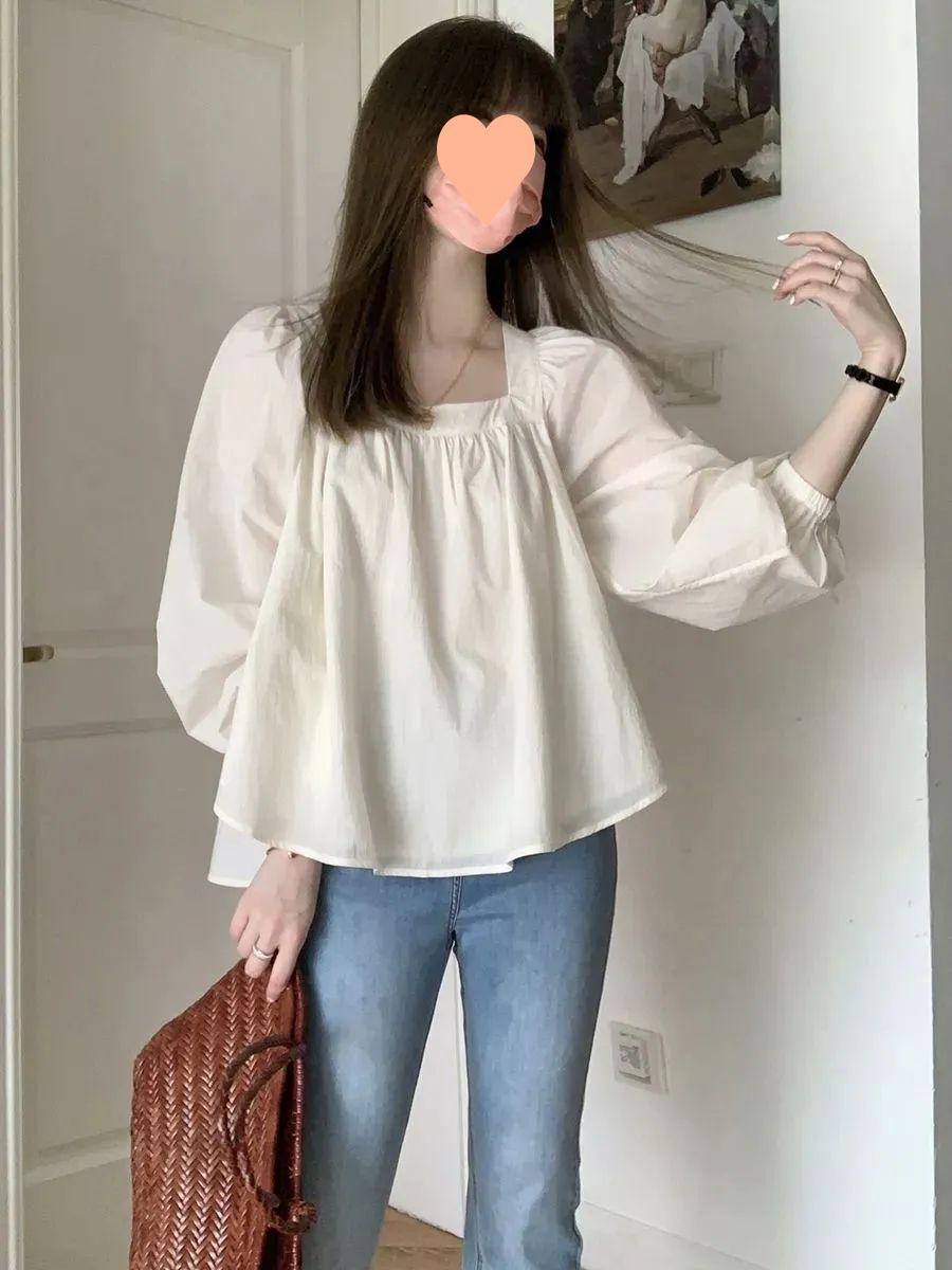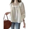Camisa francesa de cuello cuadrado frío y pequeño para mujer, elegante y hermosa, con diseño de nicho, para primavera y otoño.