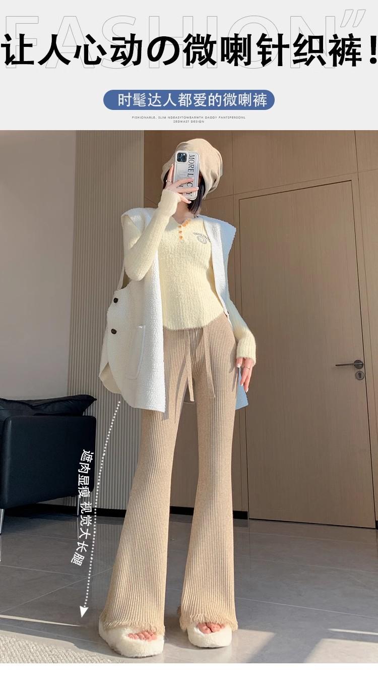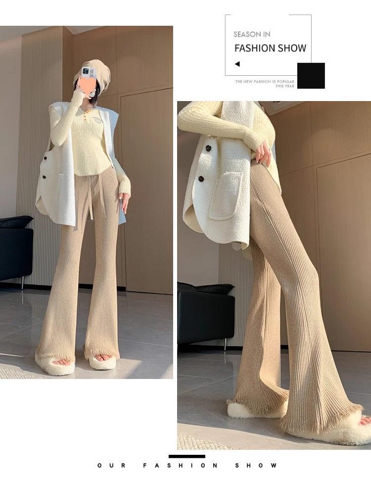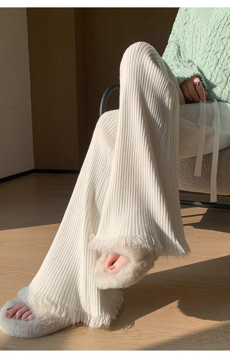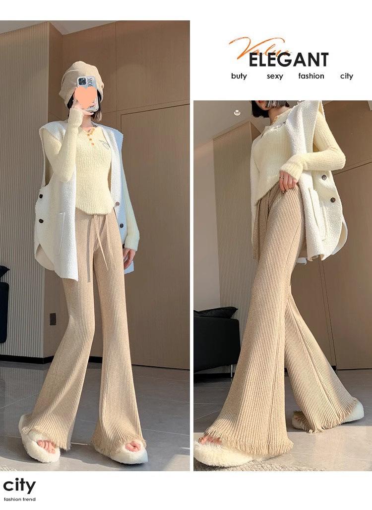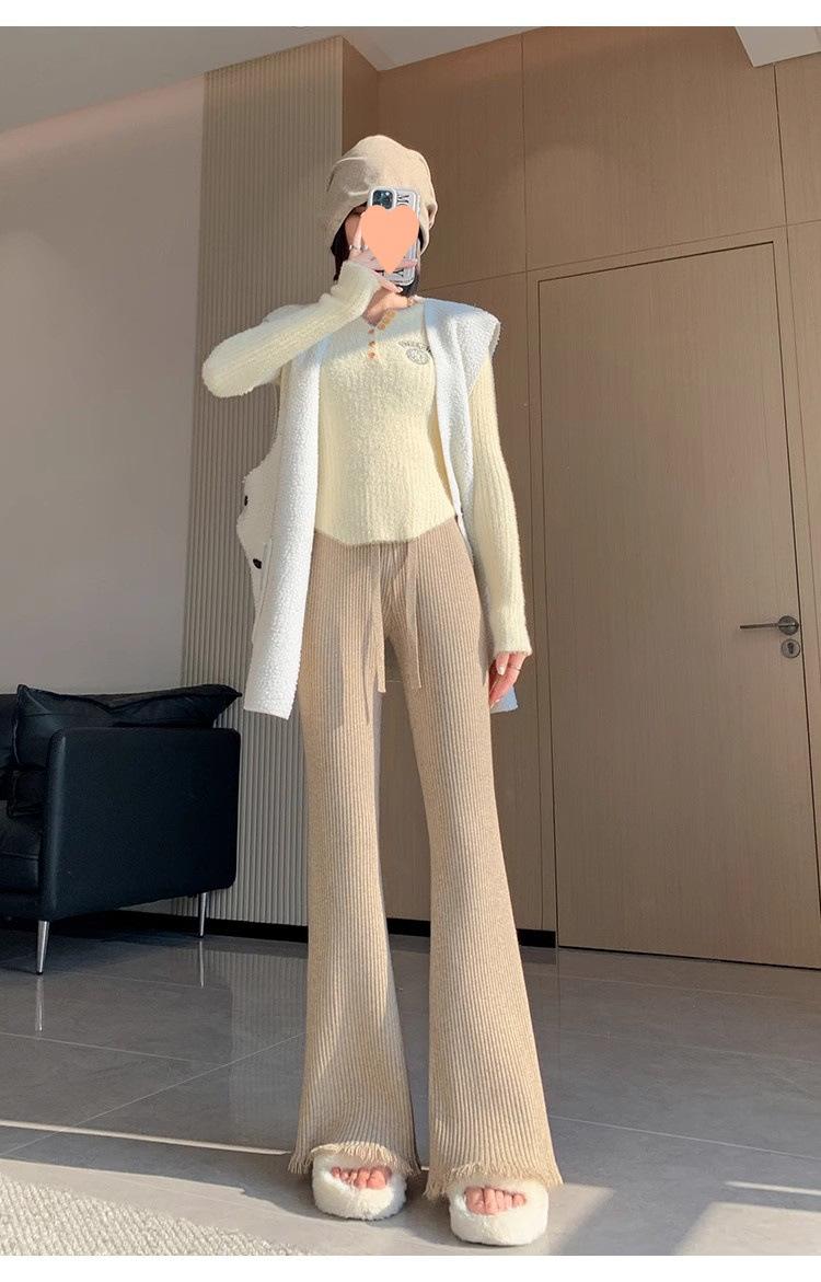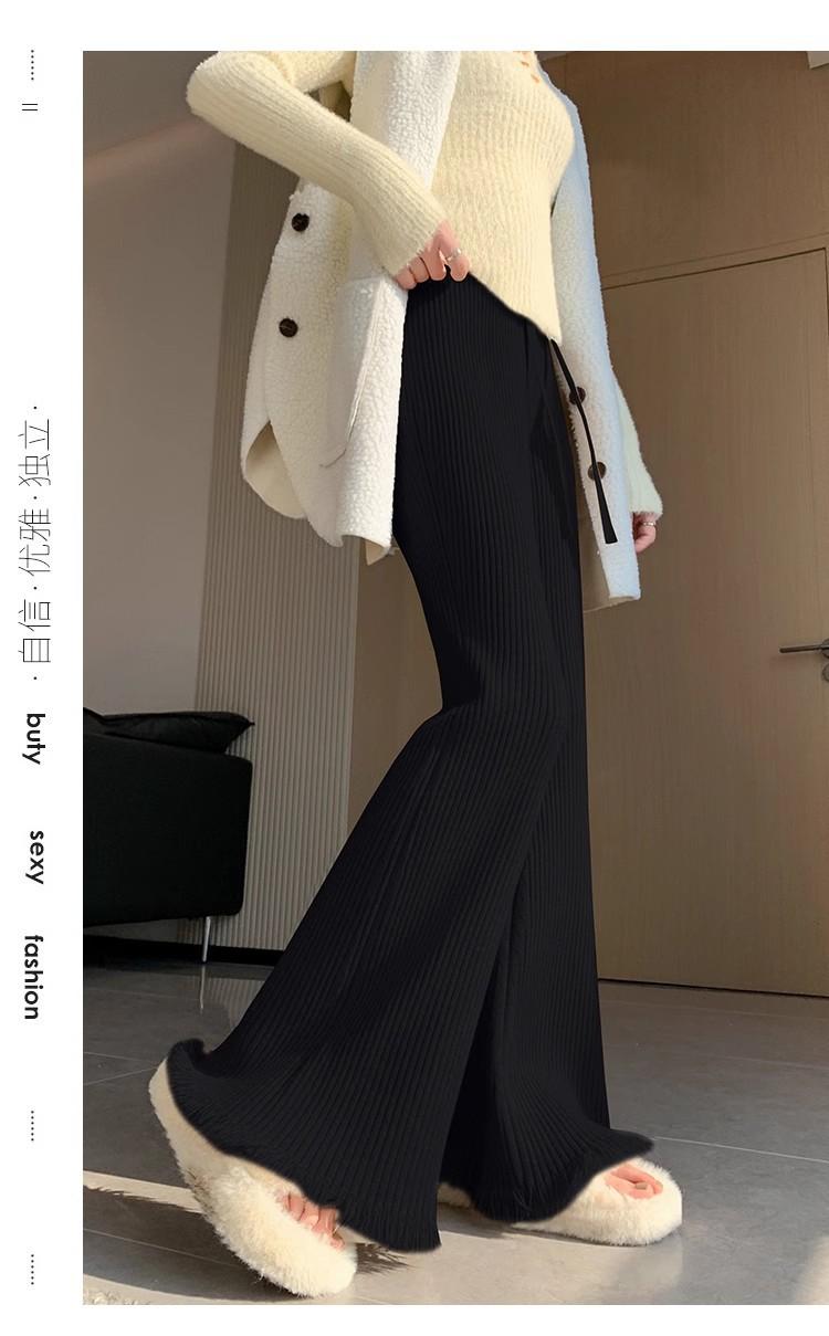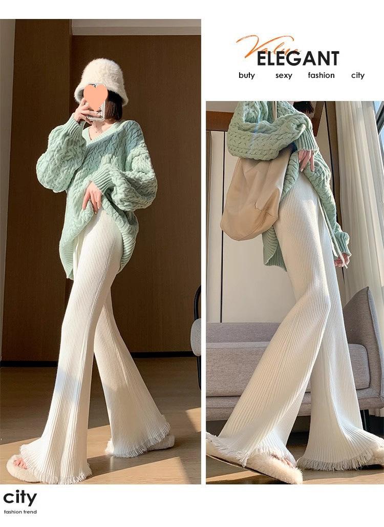 Pantalones de punto acampanados suaves y cerosos blancos para mujer, Primavera y Otoño 2025, Cintura alta, Adelgazantes, Pierna ancha colgante