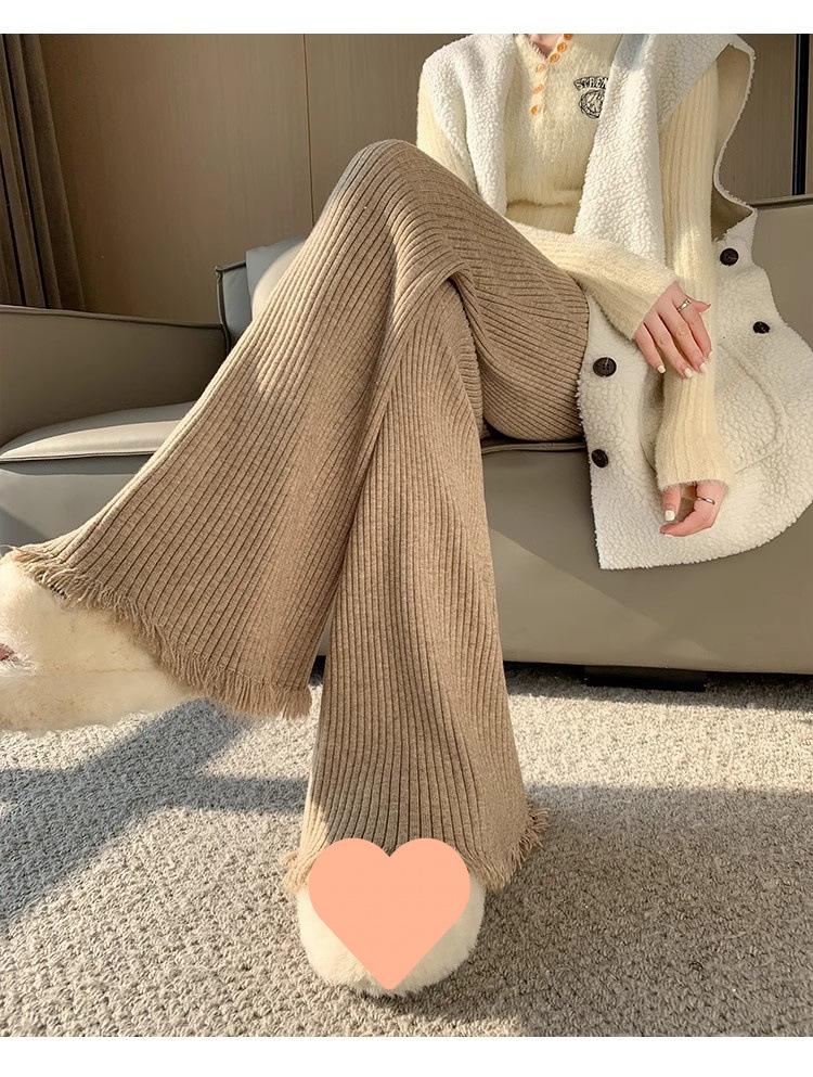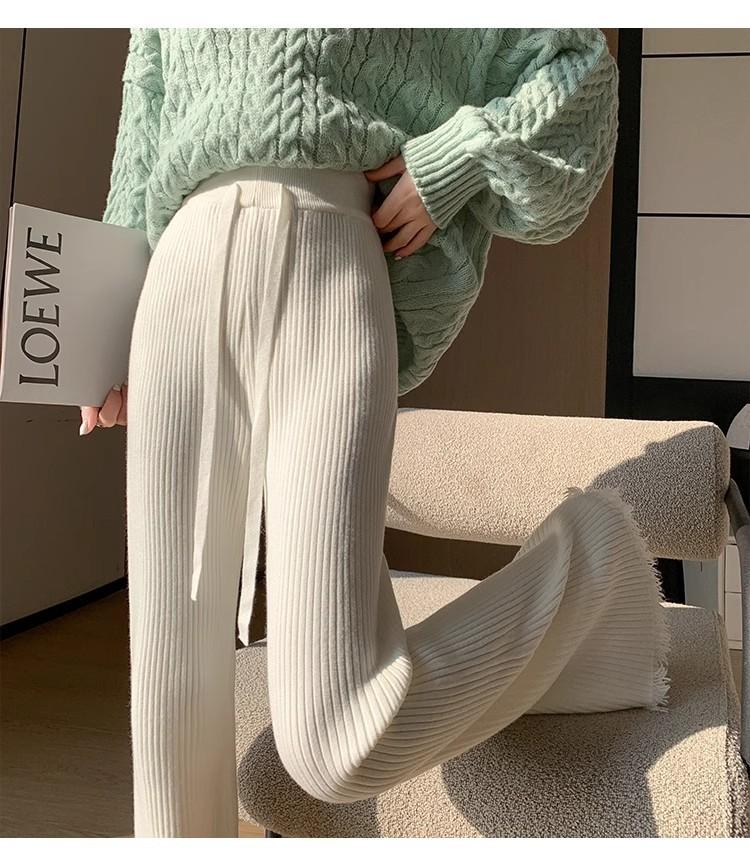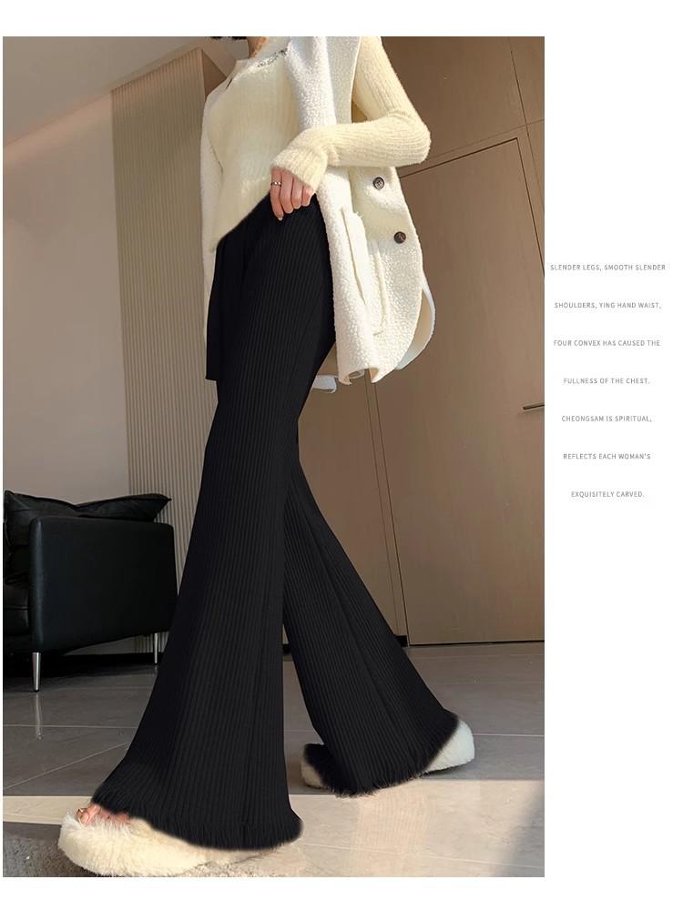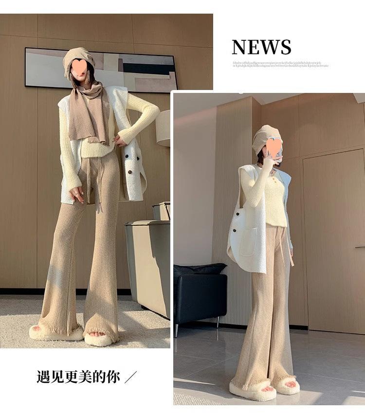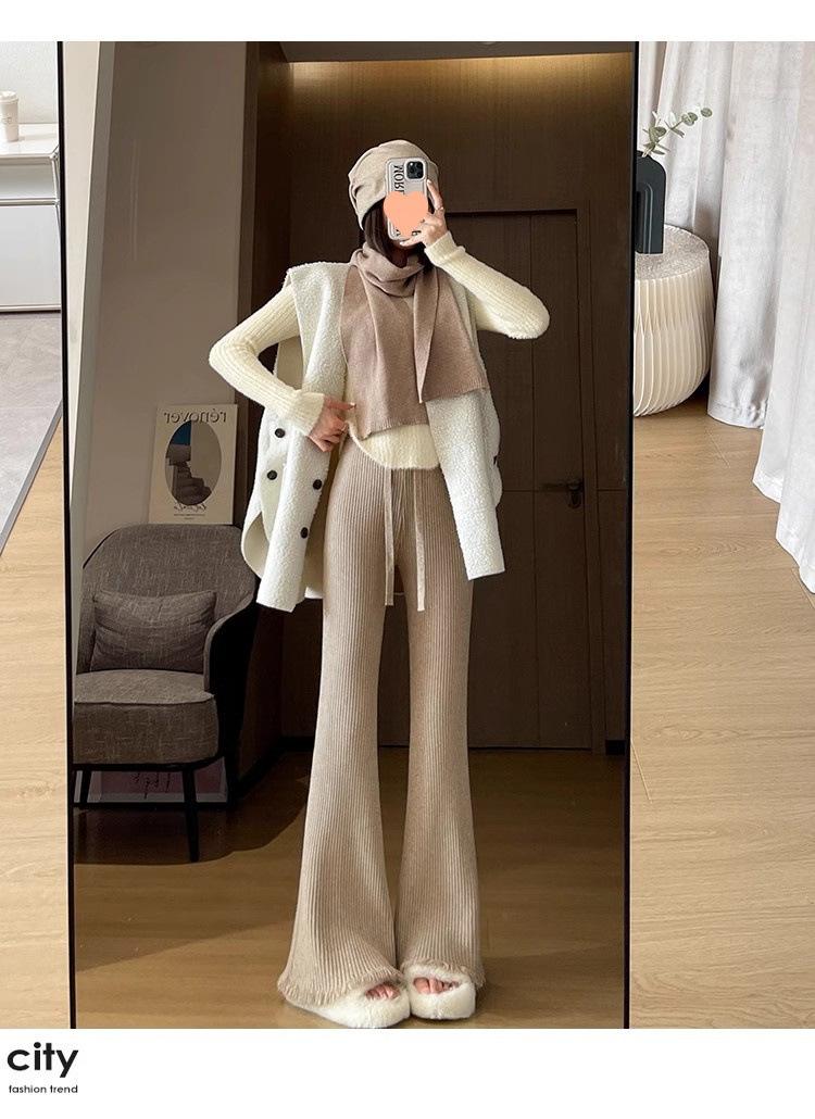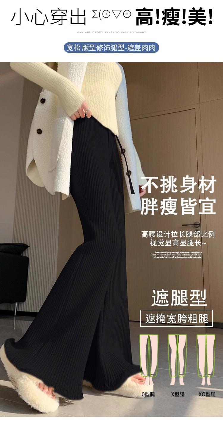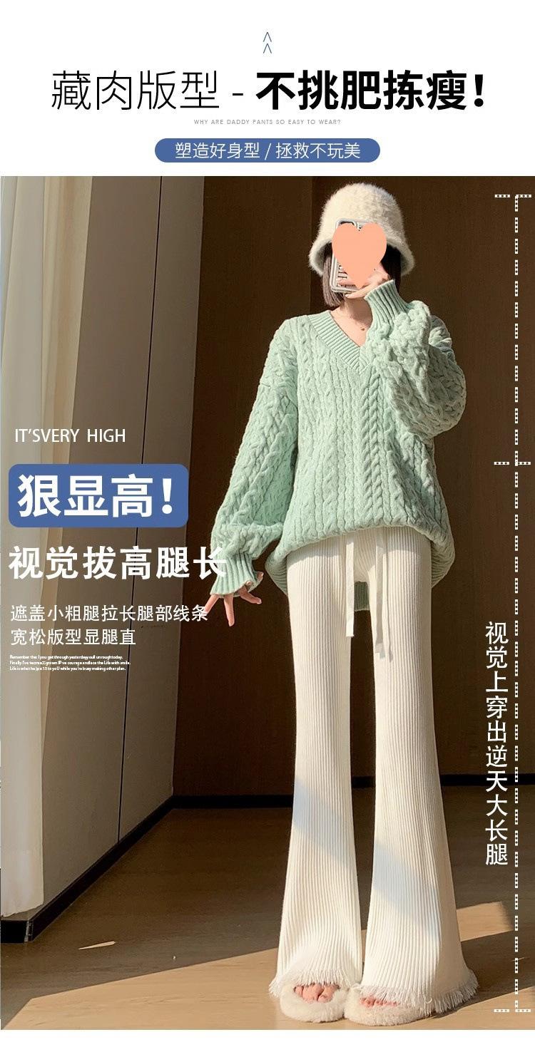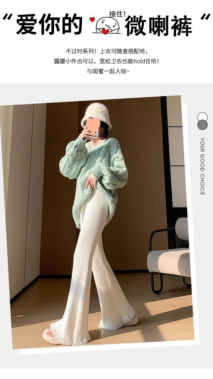 Pantalones de punto acampanados suaves y cerosos blancos para mujer, Primavera y Otoño 2025, Cintura alta, Adelgazantes, Pierna ancha colgante