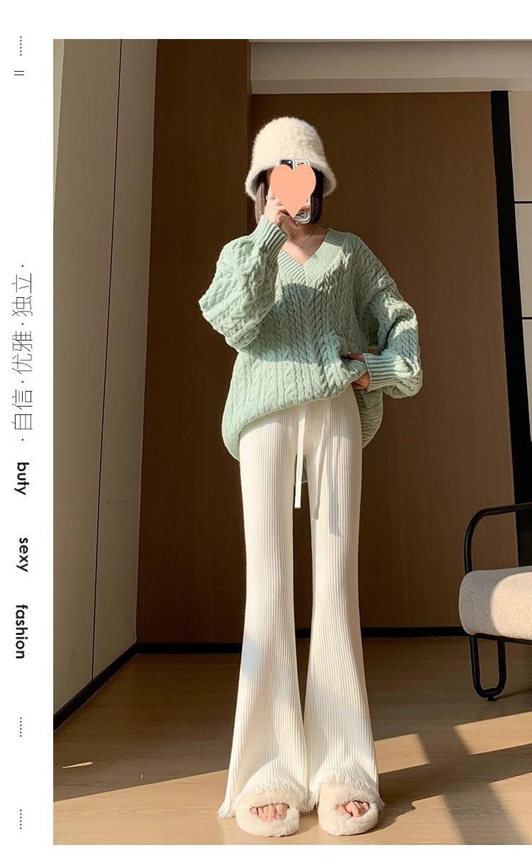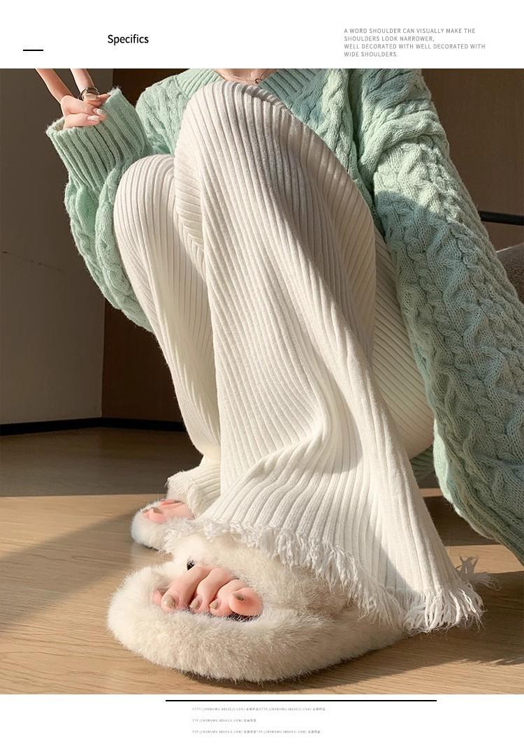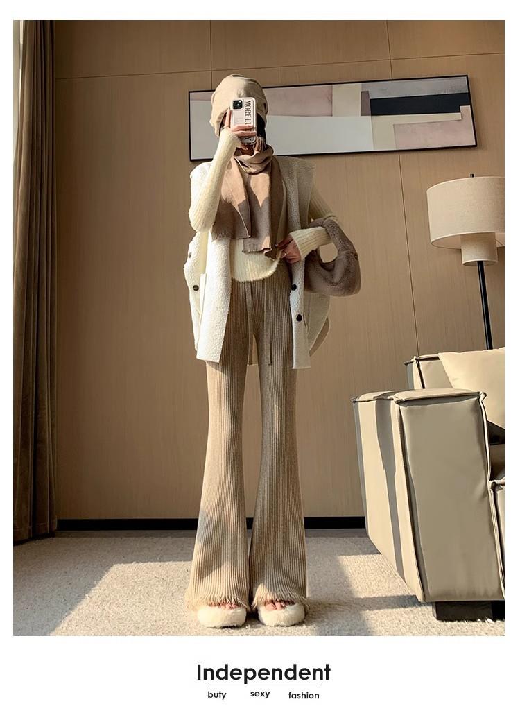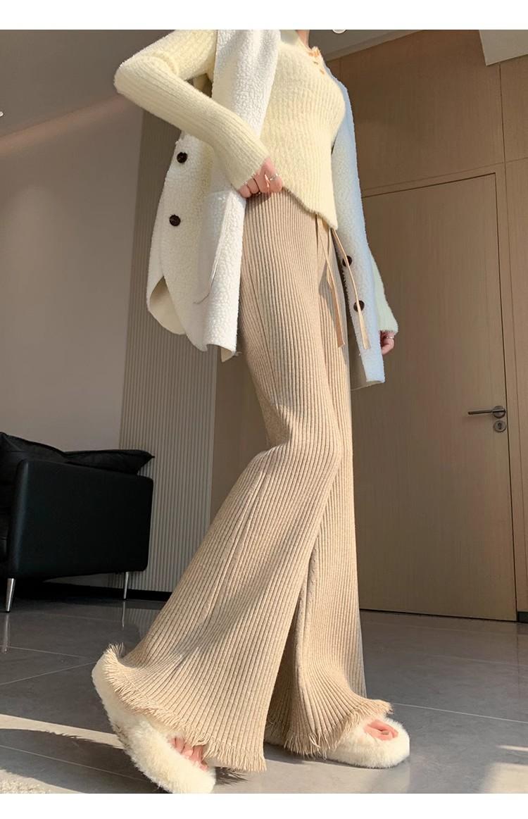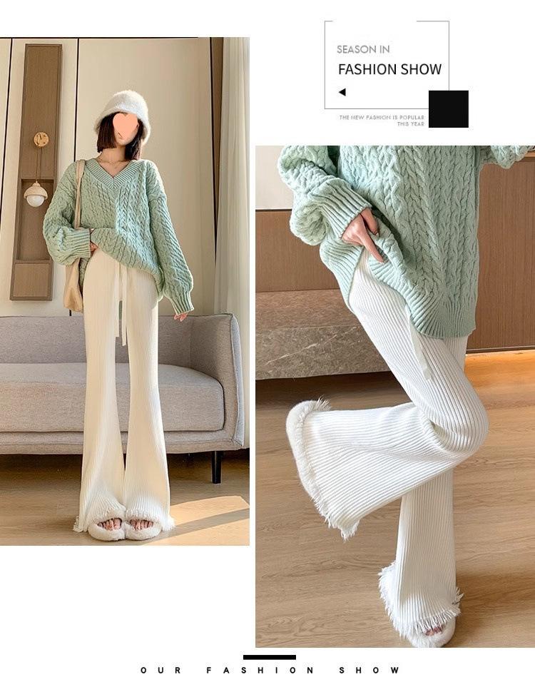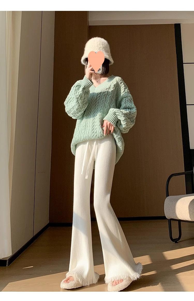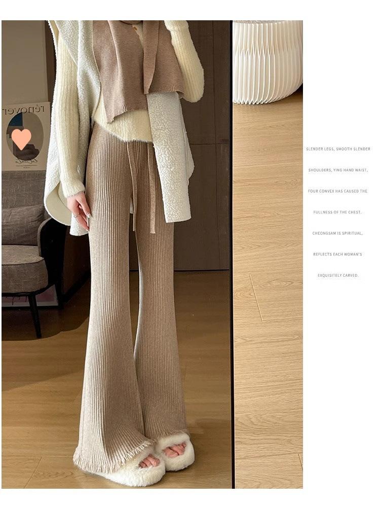 Pantalones de punto acampanados suaves y cerosos blancos para mujer, Primavera y Otoño 2025, Cintura alta, Adelgazantes, Pierna ancha colgante