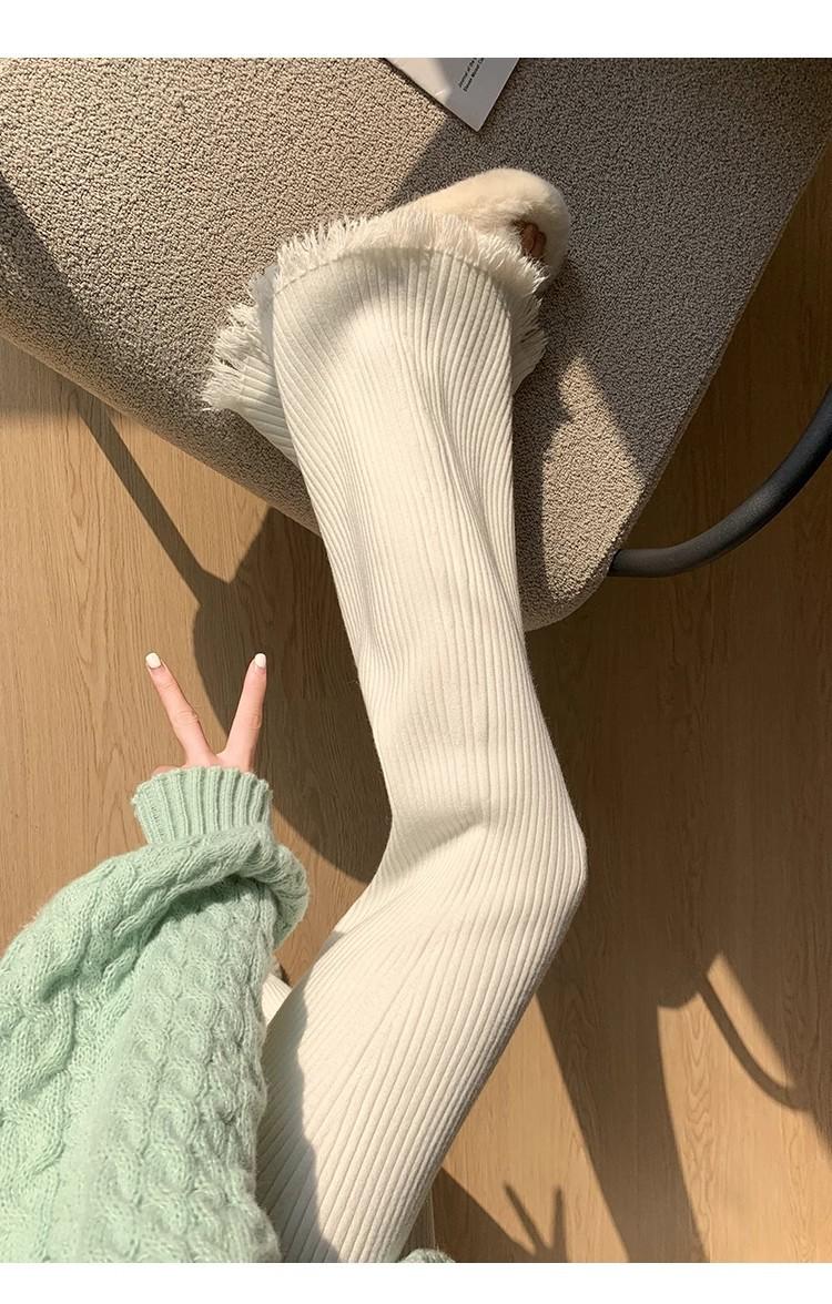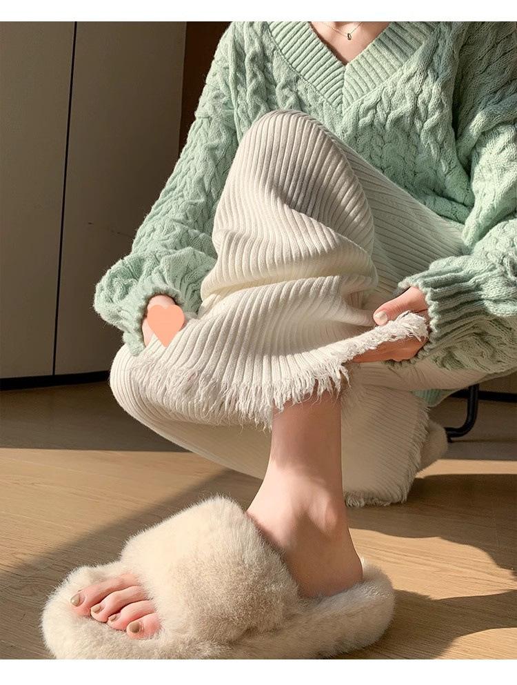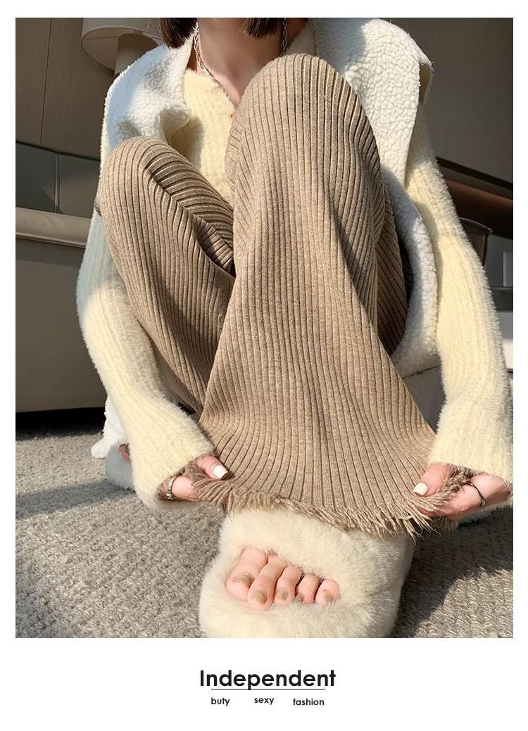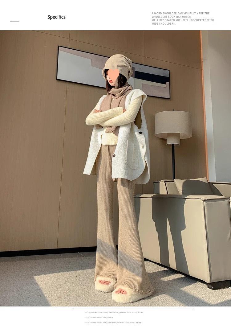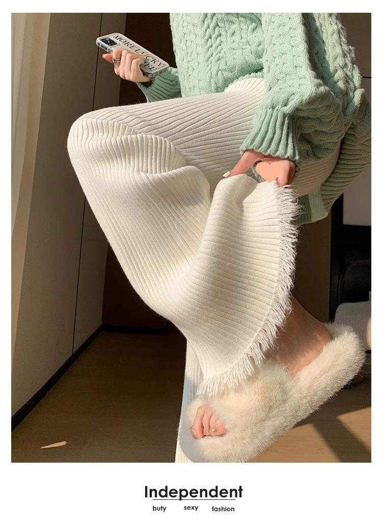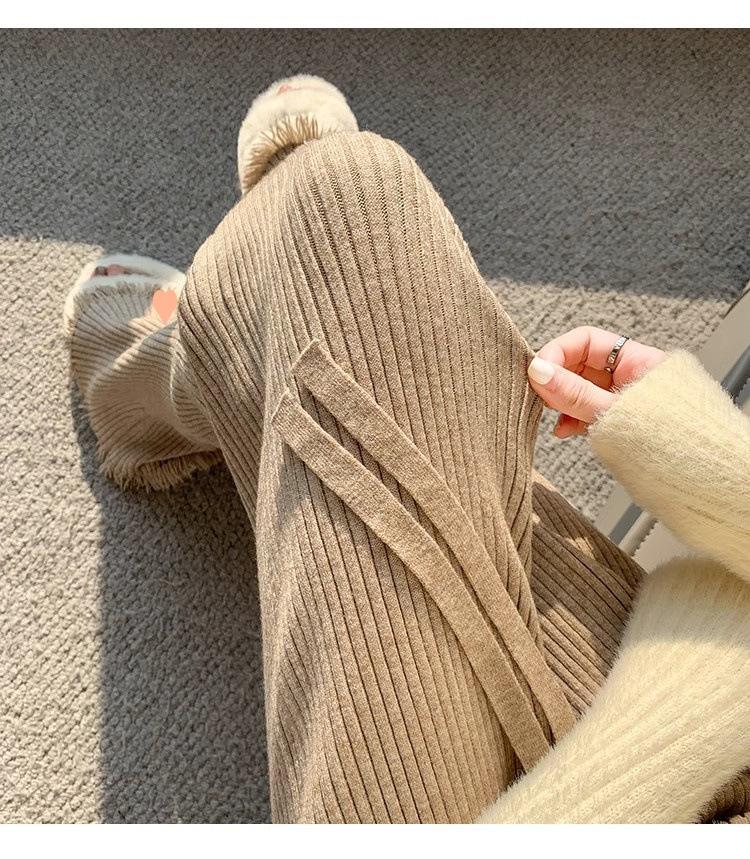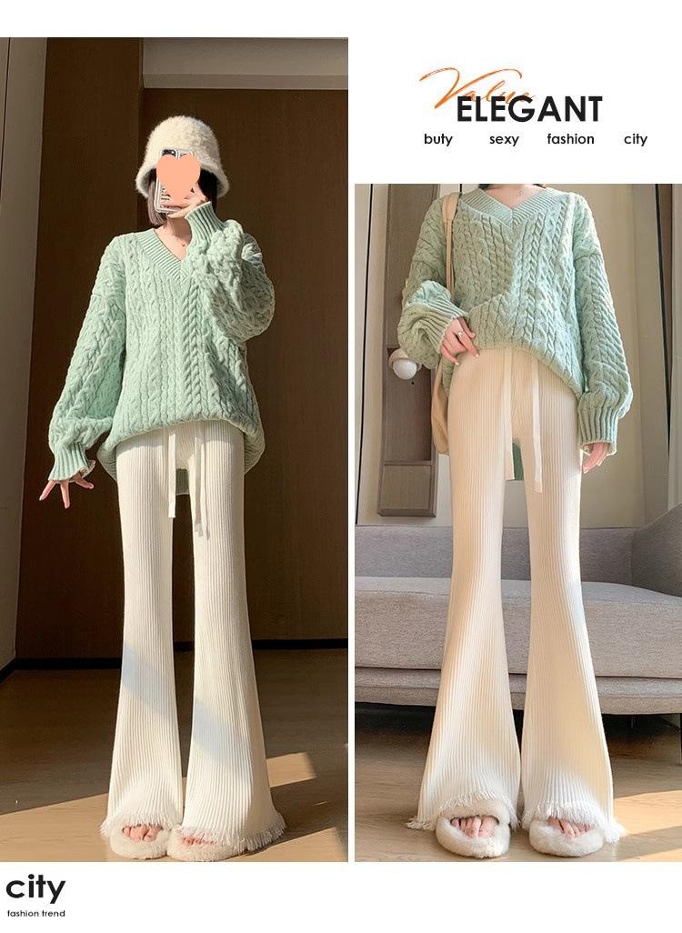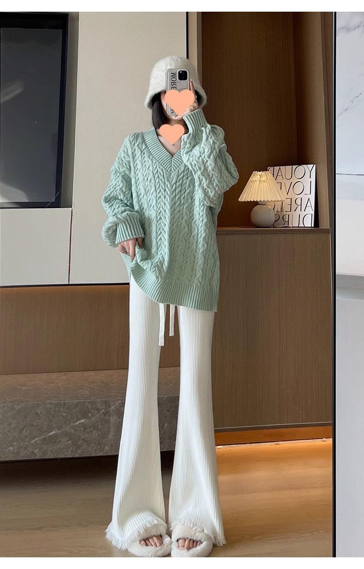 Pantalones de punto acampanados suaves y cerosos blancos para mujer, Primavera y Otoño 2025, Cintura alta, Adelgazantes, Pierna ancha colgante