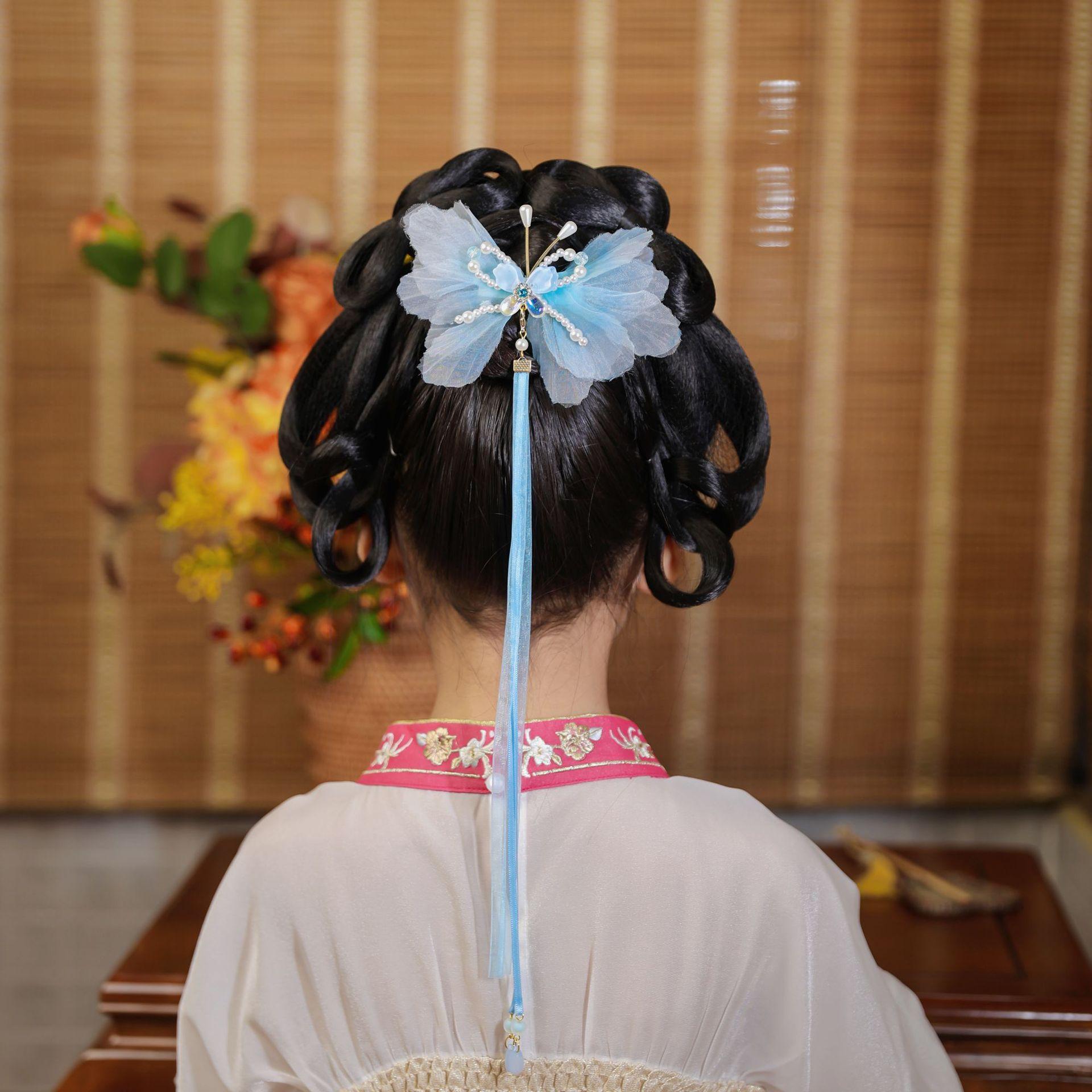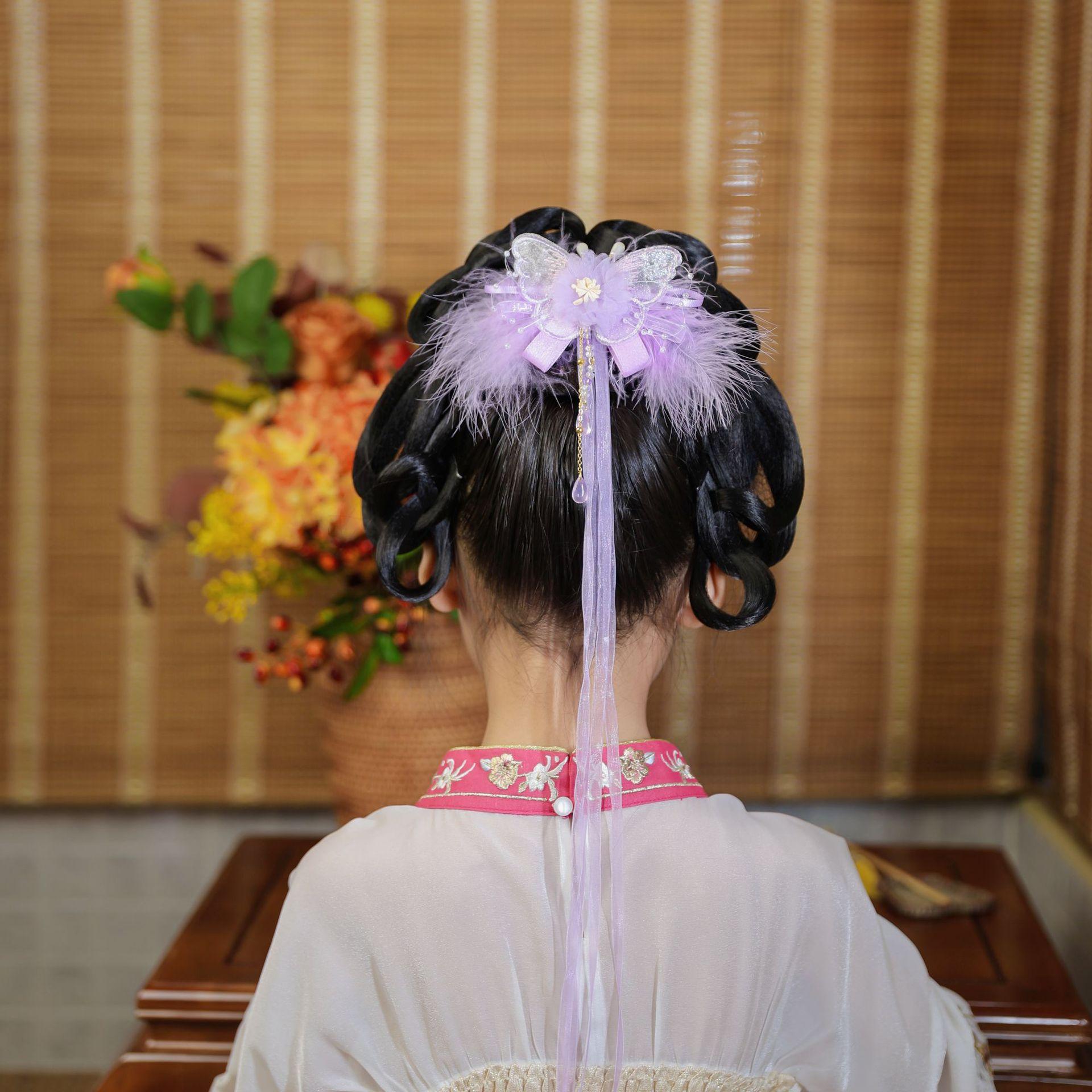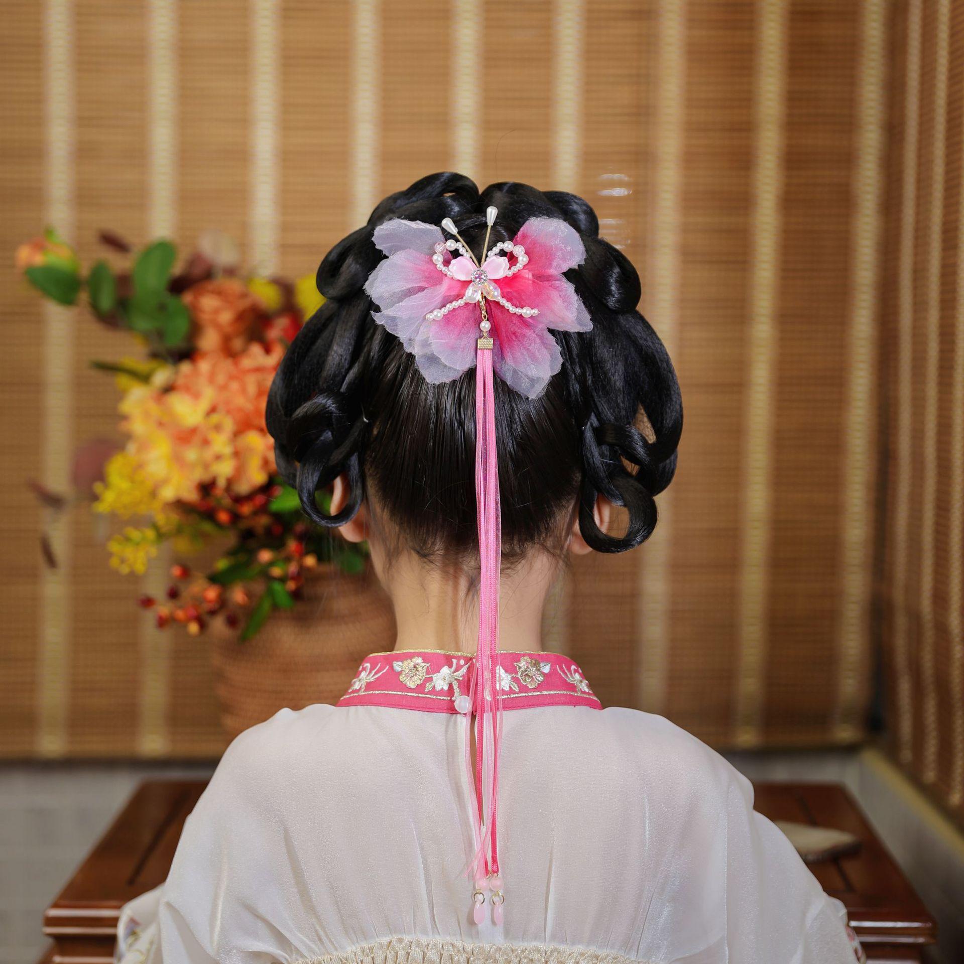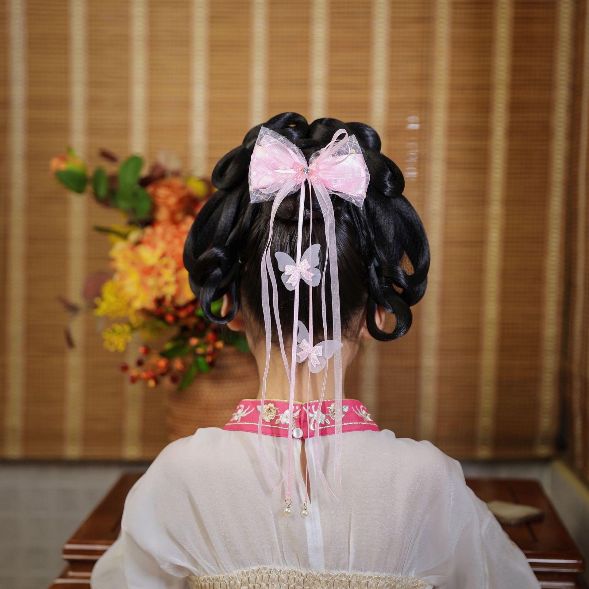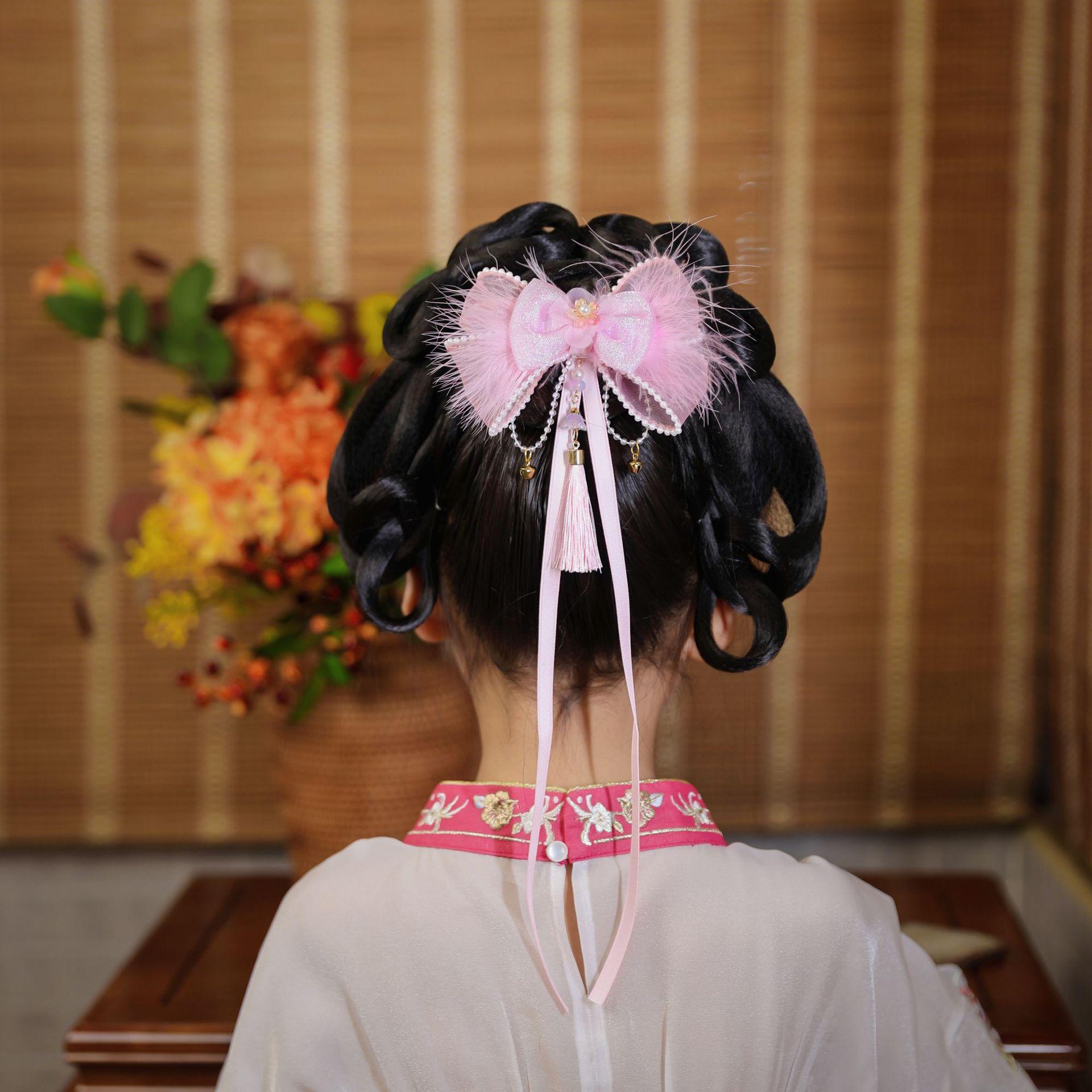Accesorios para el cabello de estilo antiguo para niñas, Horquillas de lazo con borlas, Pinzas para el cabello con serpentinas largas, Estilo de princesa dulce
