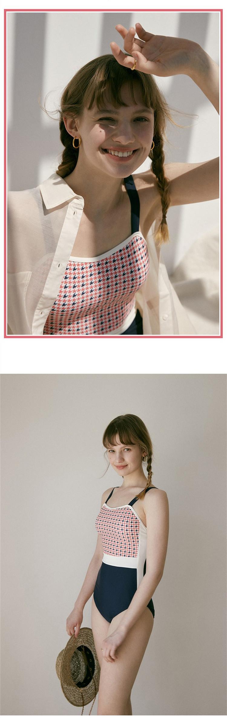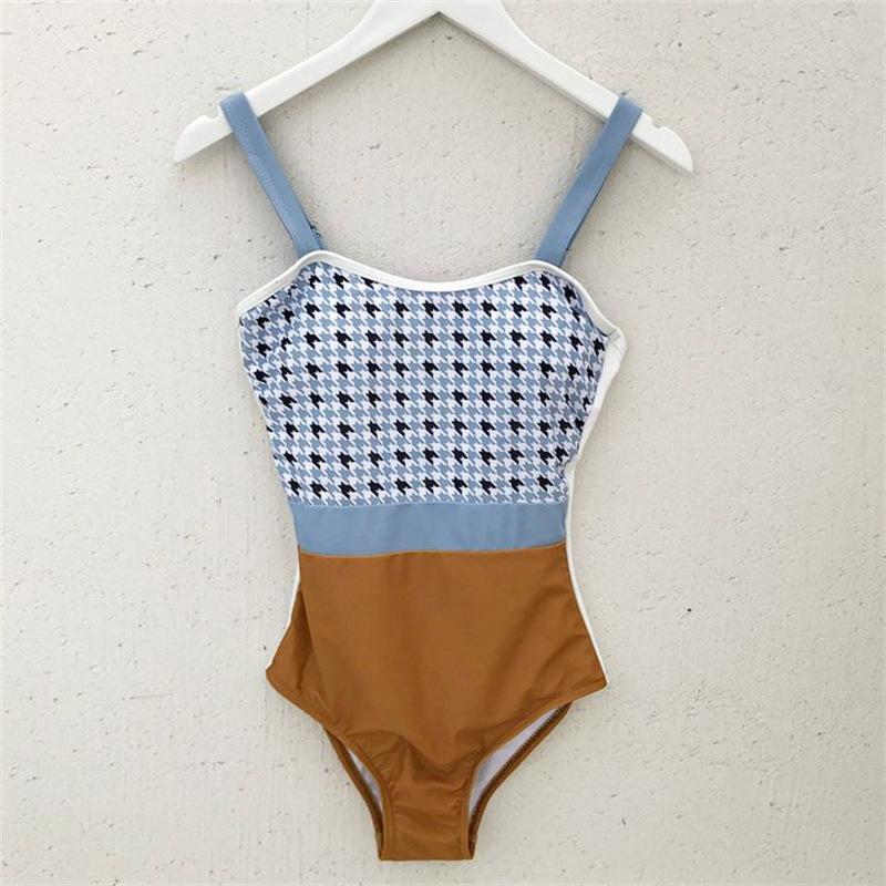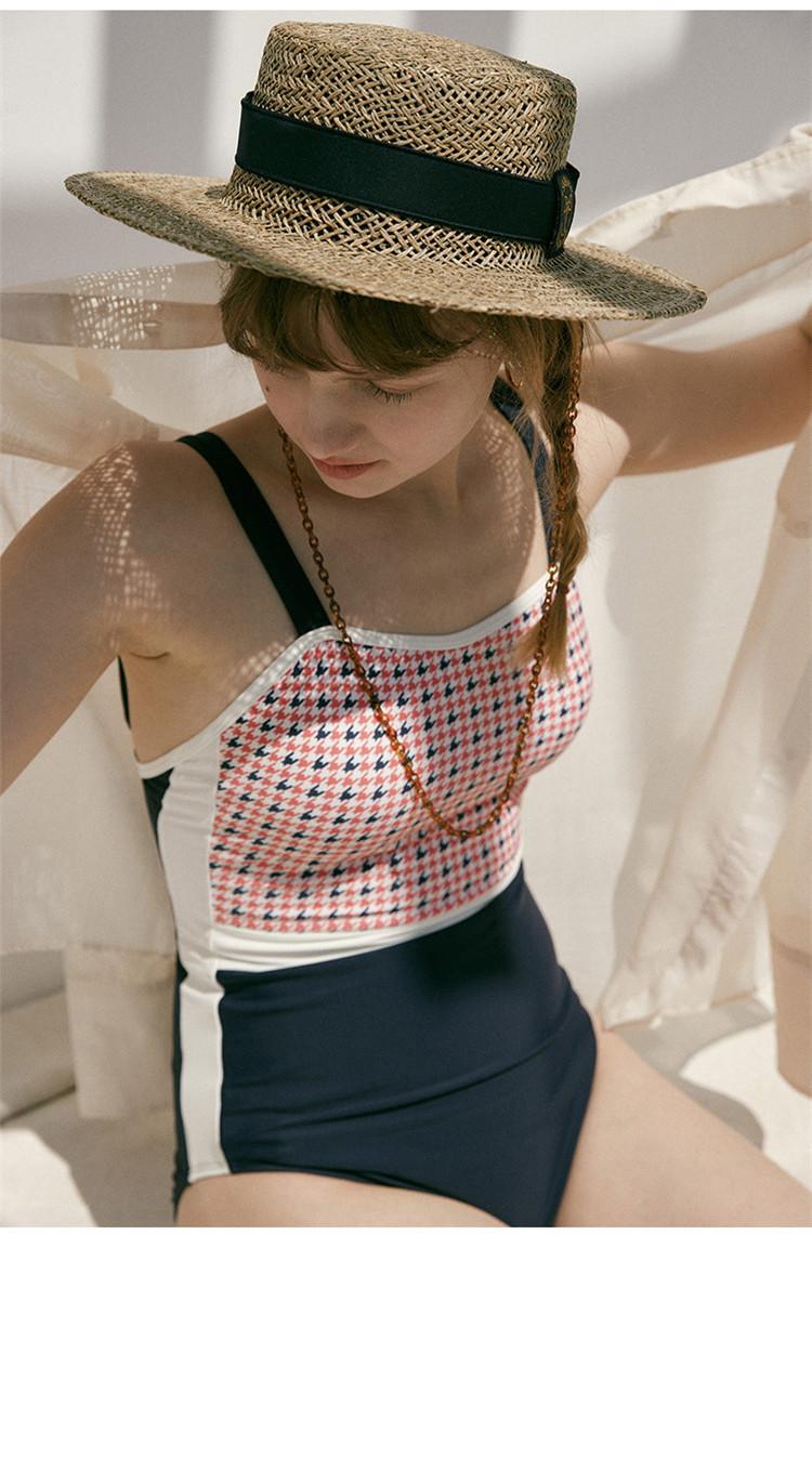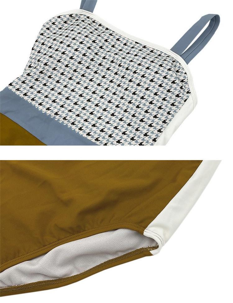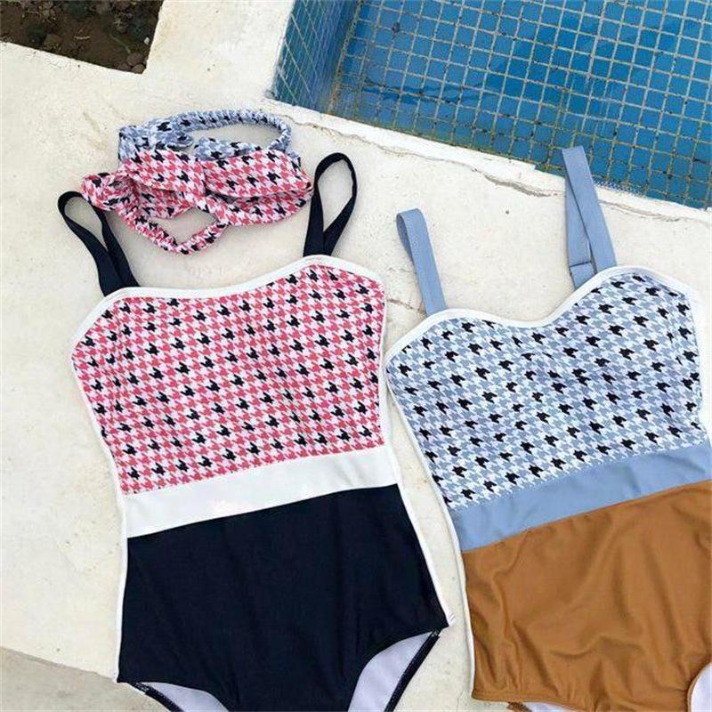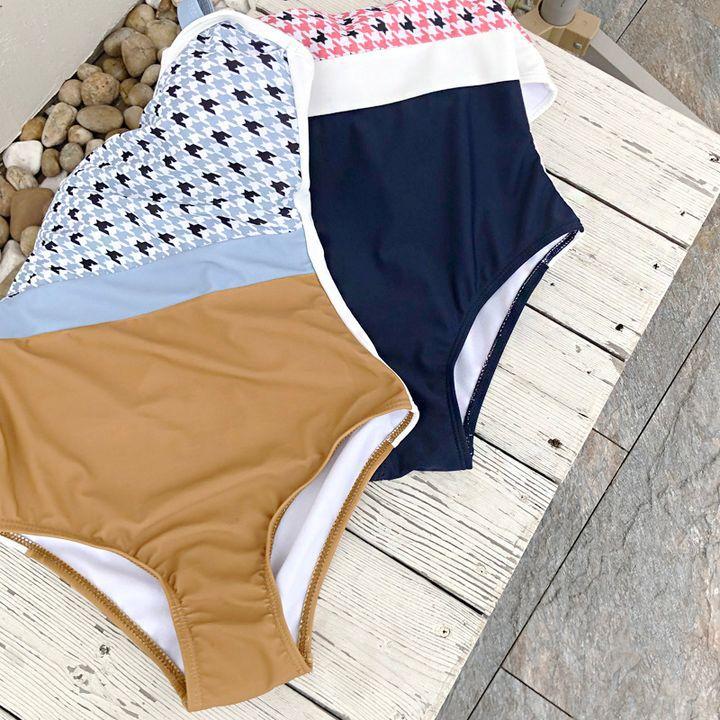 Maiô Transfronteiriço 2023 Verão Maiô Conservador Amazon Estampa Pied-de-poule Biquíni Feminino Maiô de uma peça