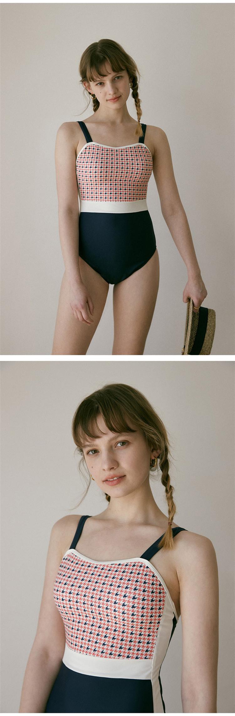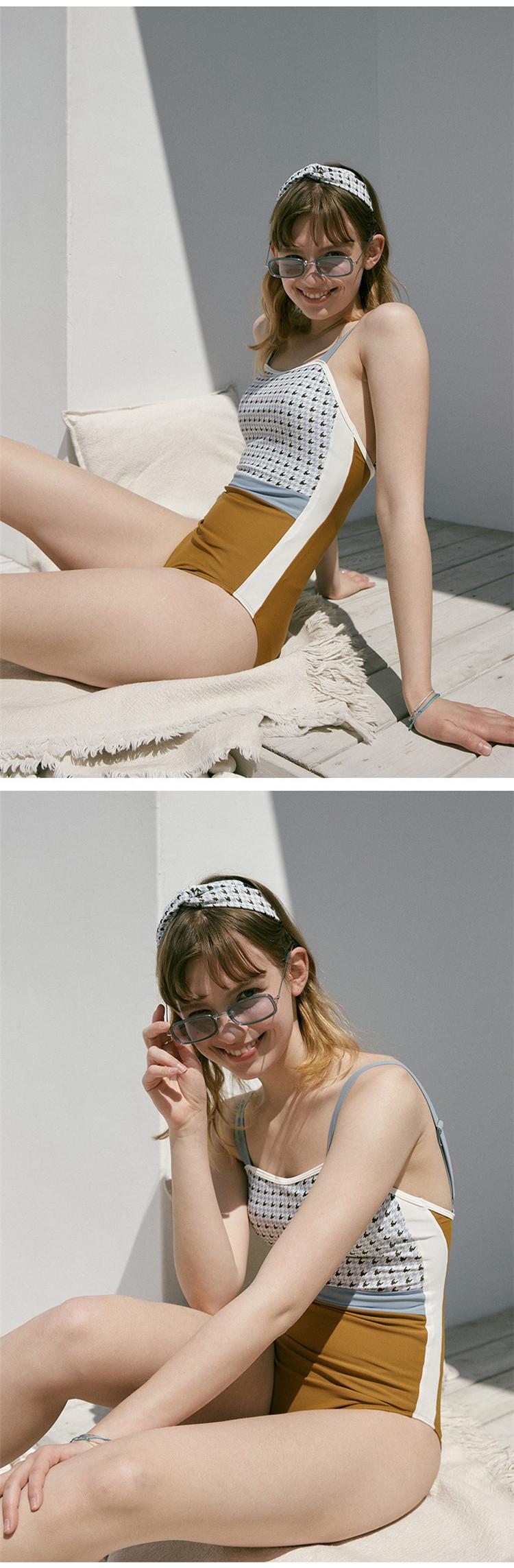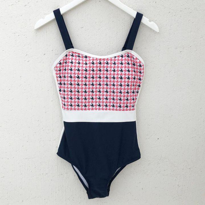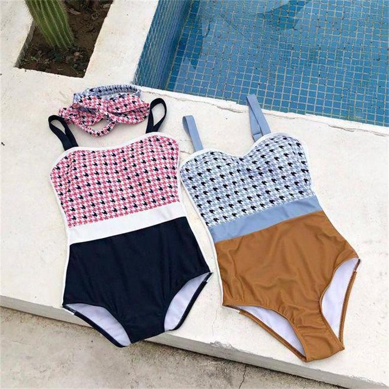 Maiô Transfronteiriço 2023 Verão Maiô Conservador Amazon Estampa Pied-de-poule Biquíni Feminino Maiô de uma peça