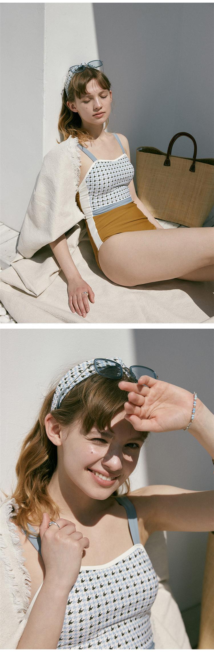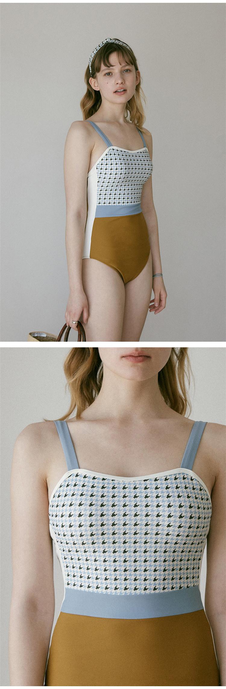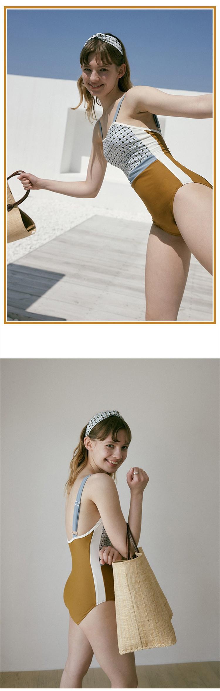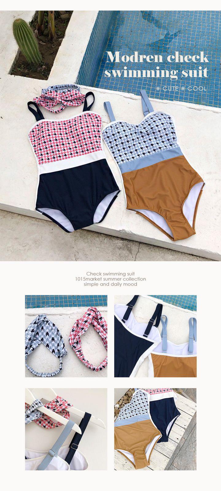 Maiô Transfronteiriço 2023 Verão Maiô Conservador Amazon Estampa Pied-de-poule Biquíni Feminino Maiô de uma peça